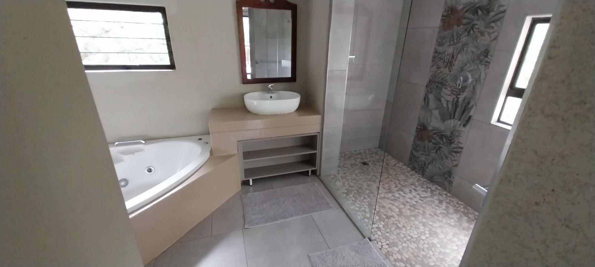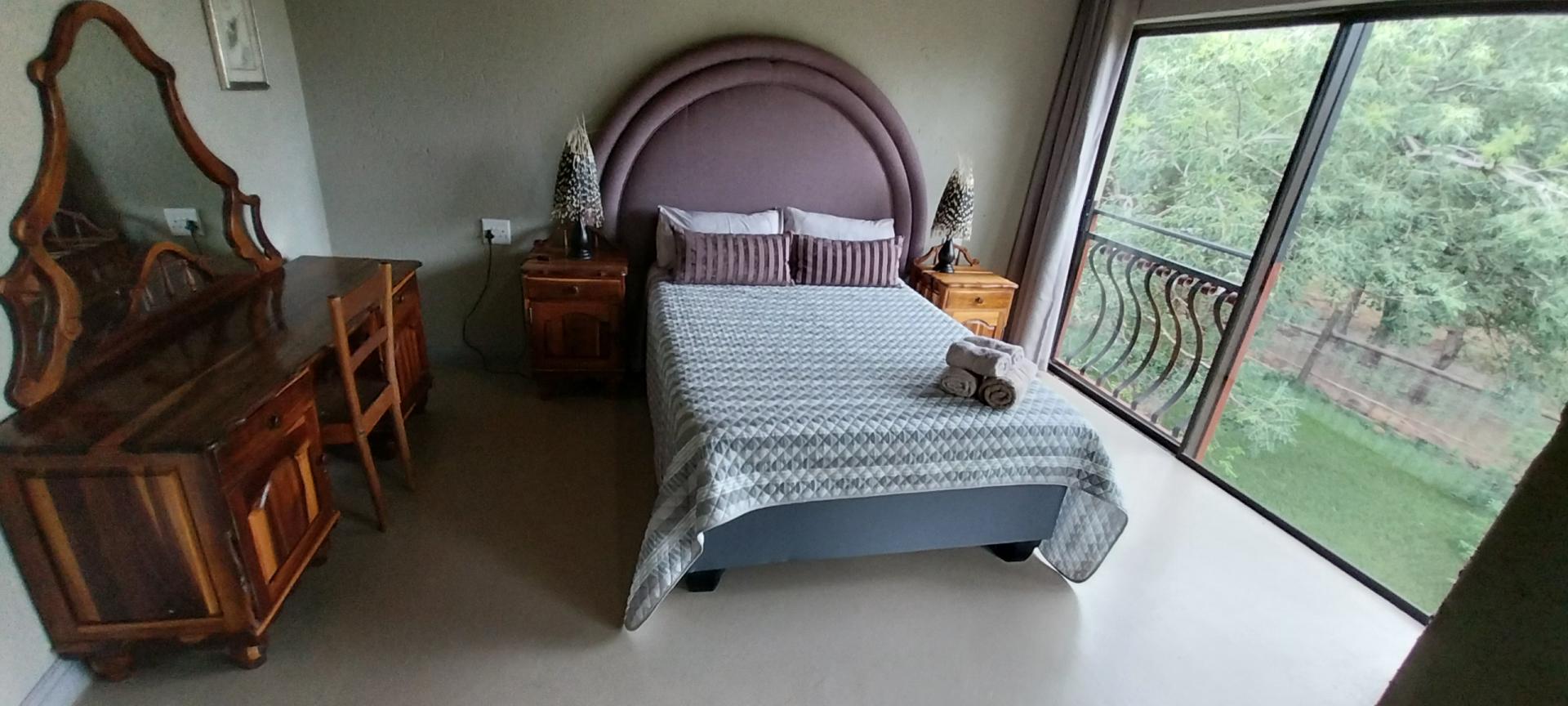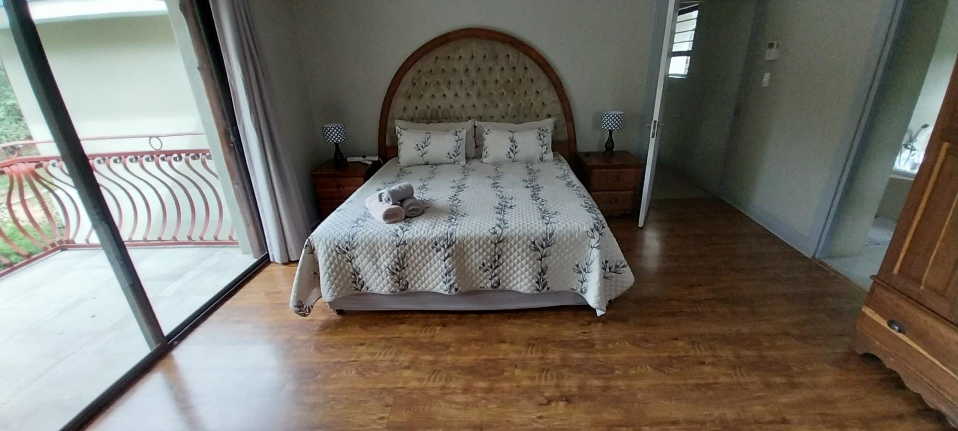 Ascend the top floor, where a spacious open area awaits. Whether you need a study, office or another sitting area or bedroom as it is now. this versatile space offers endless possibilities. The main En-suite is a true sanctuary, with a spa-like bathroom that is nothing short of exquisite. You'll also find a third En-suite bedroom here. All with built-in cupboards , air conditioning and balconies overlooking the bush, for your comfort.