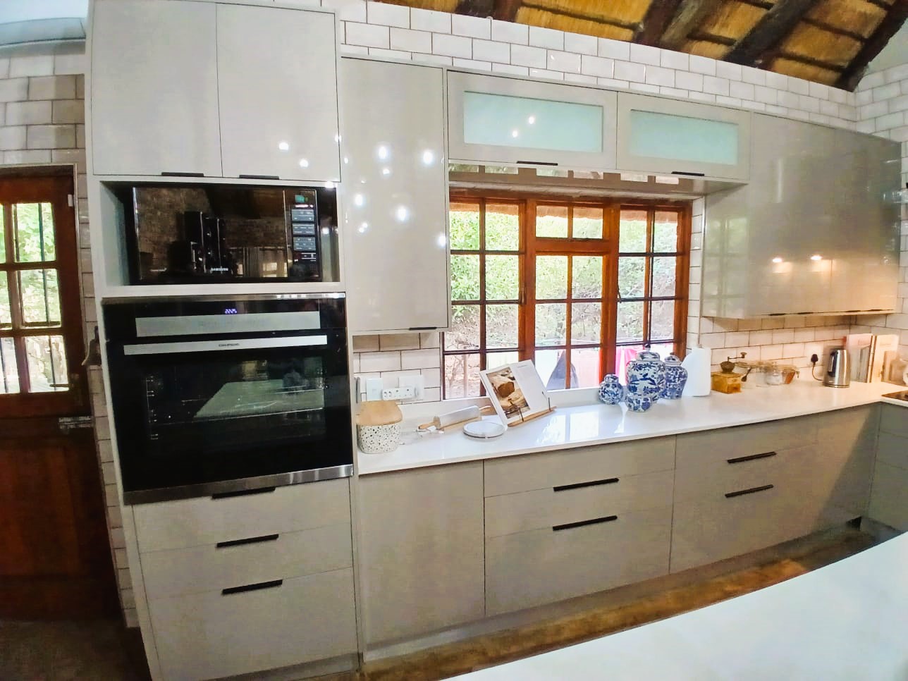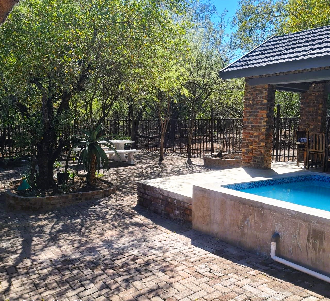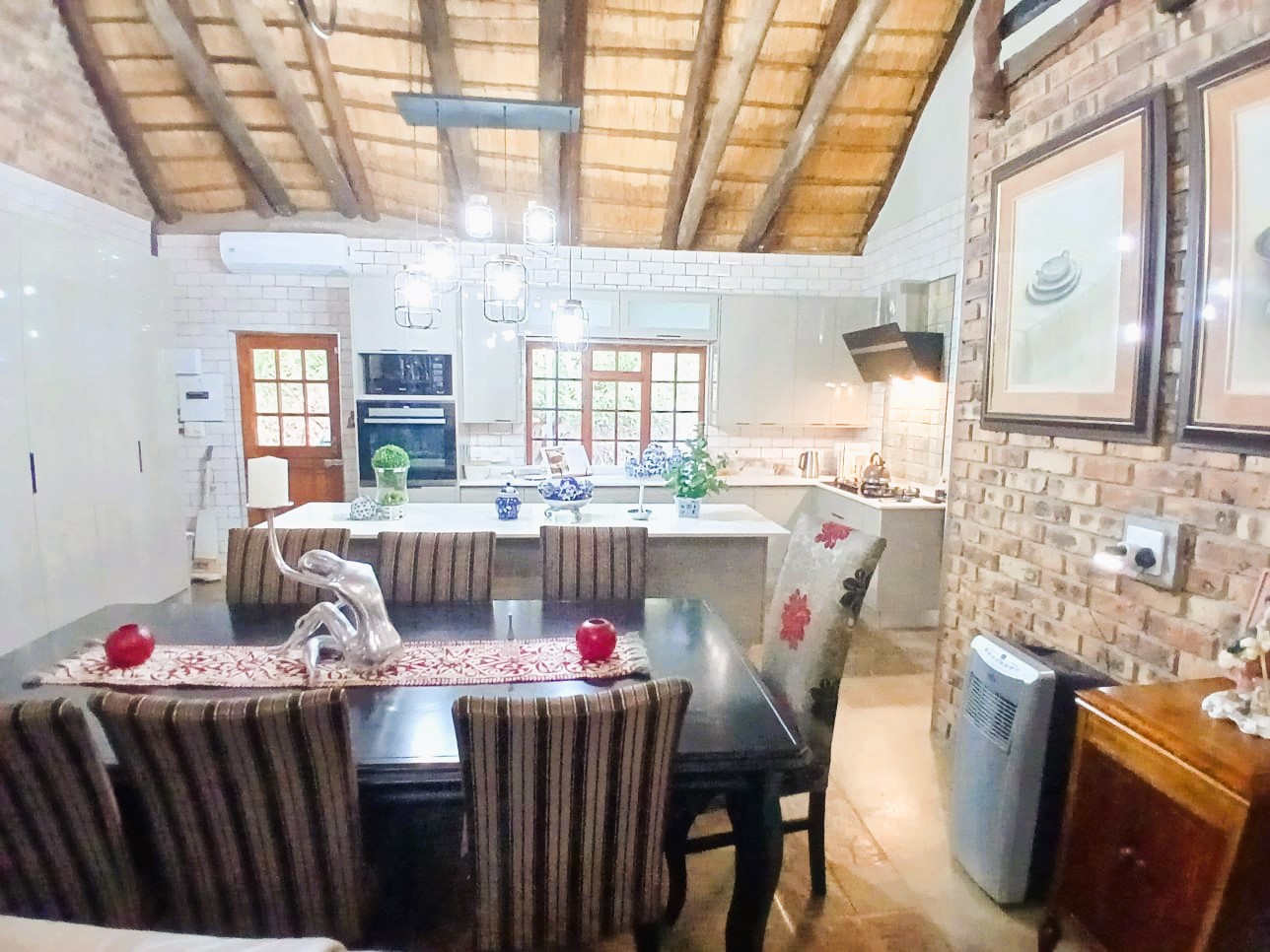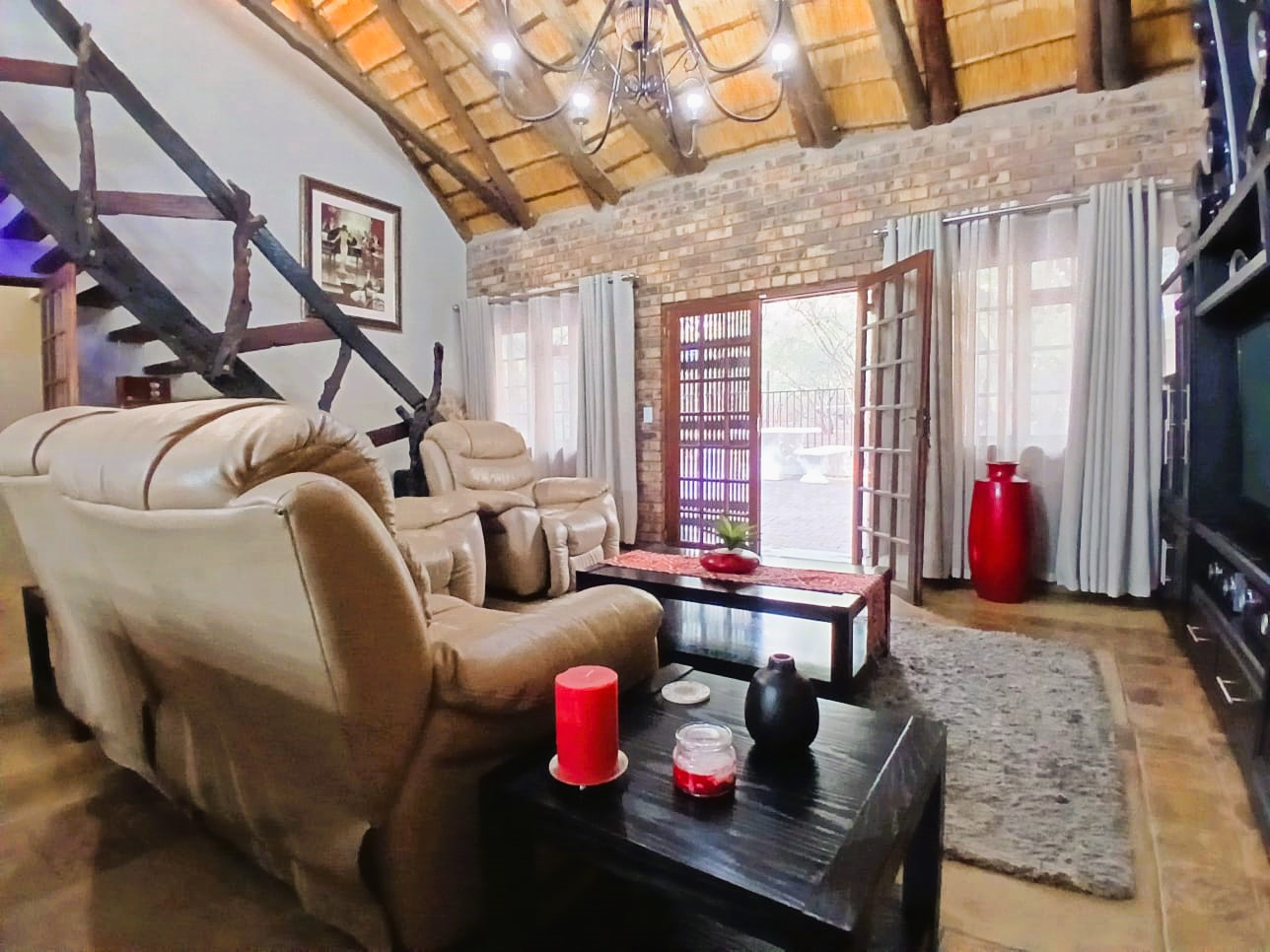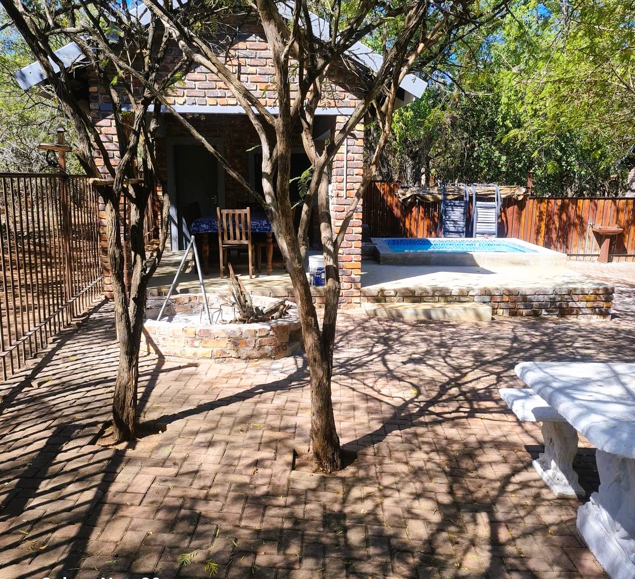 In this thatch-roof house you will discover the perfect blend of elegance and comfort, nestled under indigenous trees in the heart of Marloth Park. Perfectly situated for easy in and out for trips to the renowned Kruger National Park or visits to the shops and restaurants, ensuring both seclusion and convenience. Set on a generous 2025 sqm stand next to a green belt area that ensures privacy and frequent visits by the animals roaming freely between the houses. This residence offers a unique opportunity to experience luxury bush living at its finest.