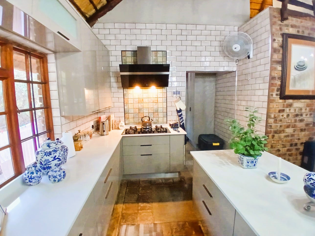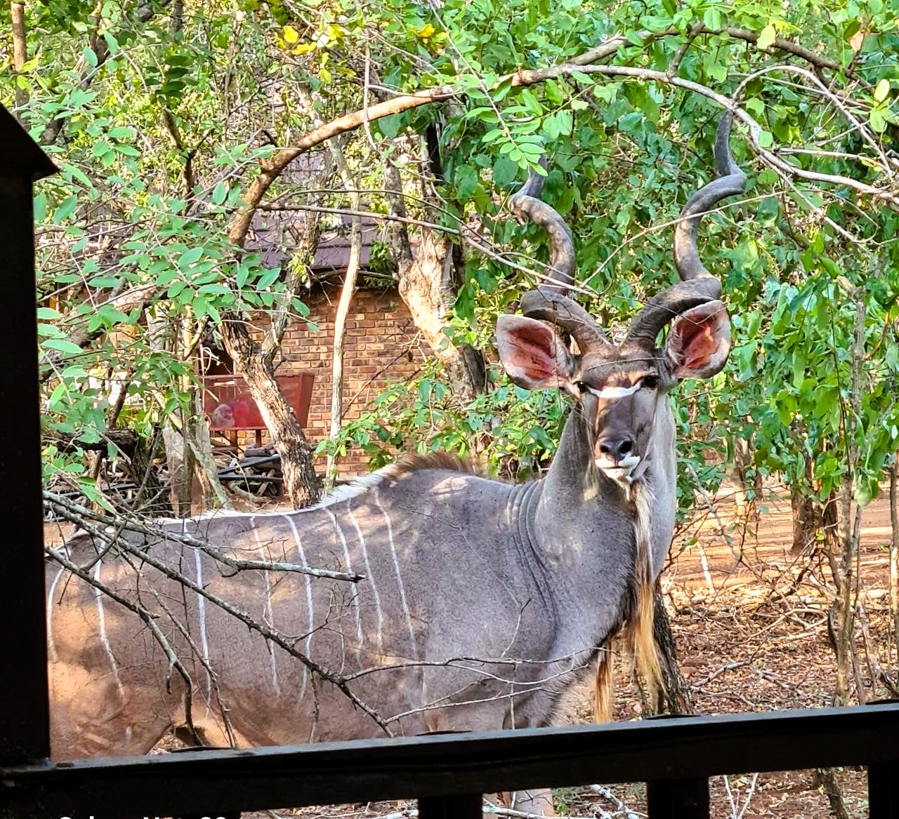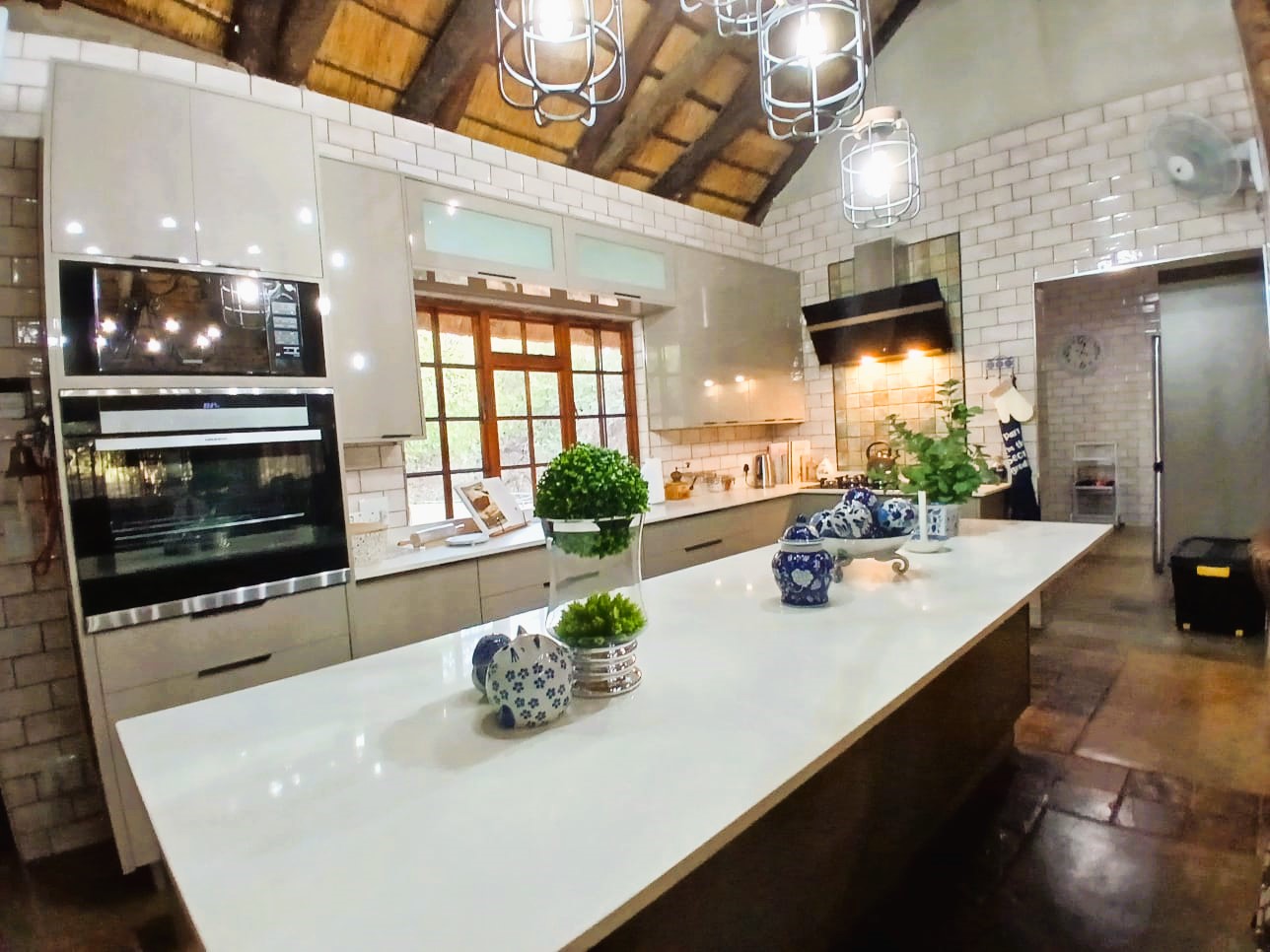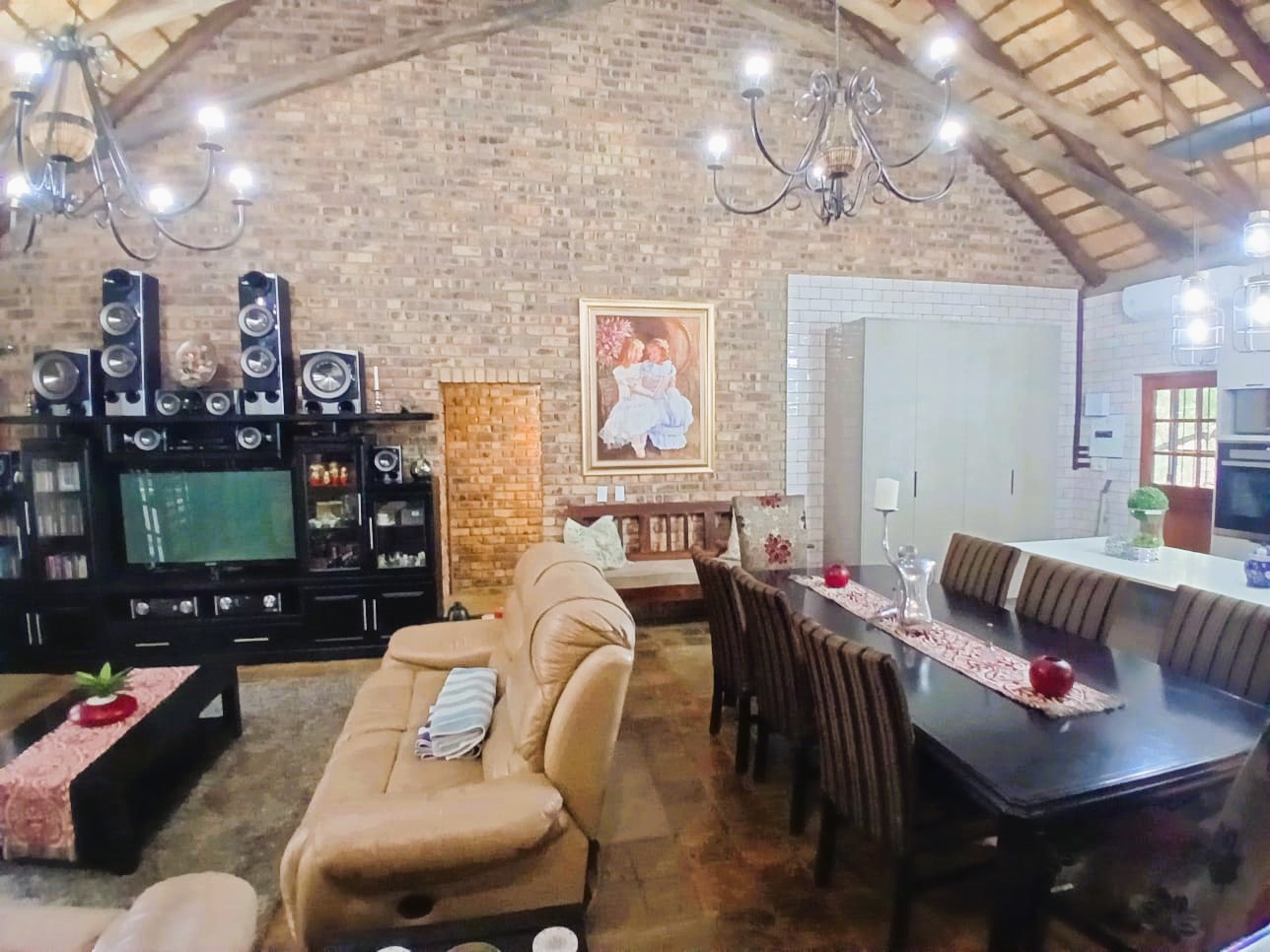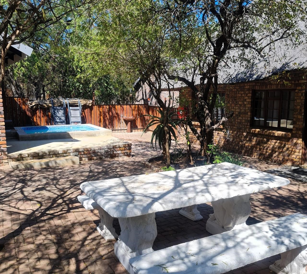 In this thatch-roof house you will discover the perfect blend of elegance and comfort, nestled under indigenous trees in the heart of Marloth Park. Perfectly situated for easy in and out for trips to the renowned Kruger National Park or visits to the shops and restaurants, ensuring both seclusion and convenience. Set on a generous 2025 sqm stand next to a green belt area that ensures privacy and frequent visits by the animals roaming freely between the houses. This residence offers a unique opportunity to experience luxury bush living at its finest.