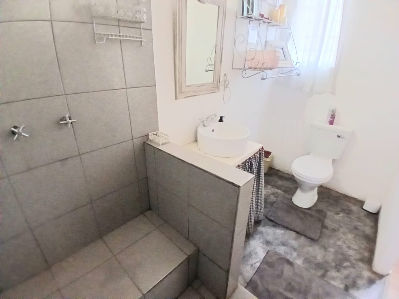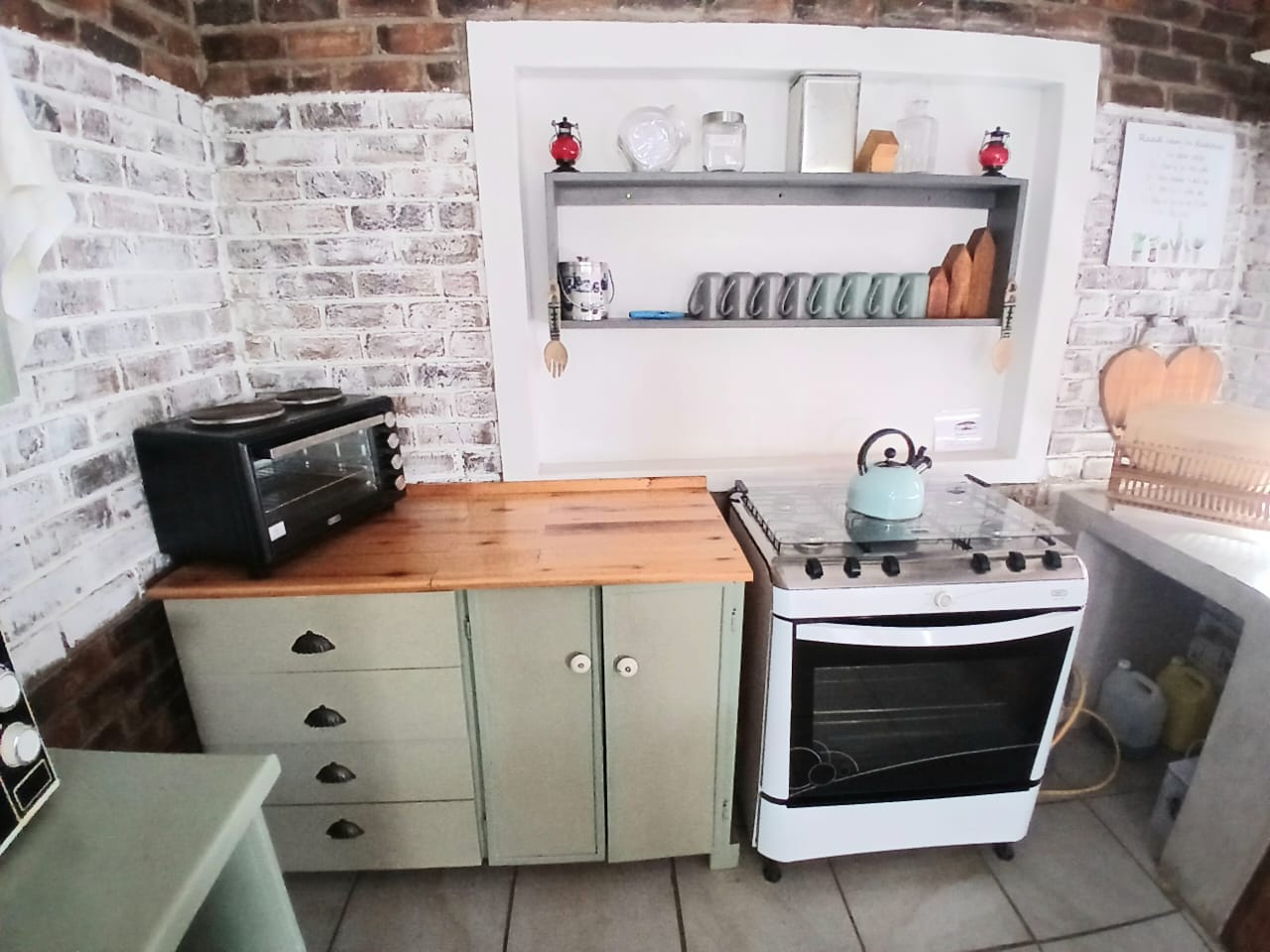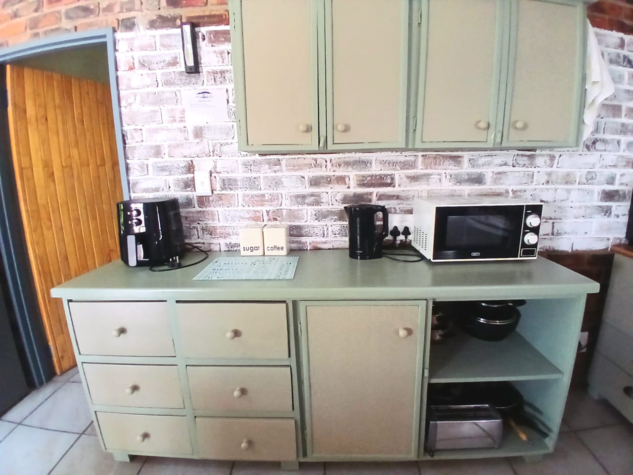 The home features an open-plan kitchen with ample storage, flowing into a welcoming lounge area. 2 separate glass doors lead to the entertainment area on the outside, allowing natural light and the birdsong from the gigantic trees to pour in.