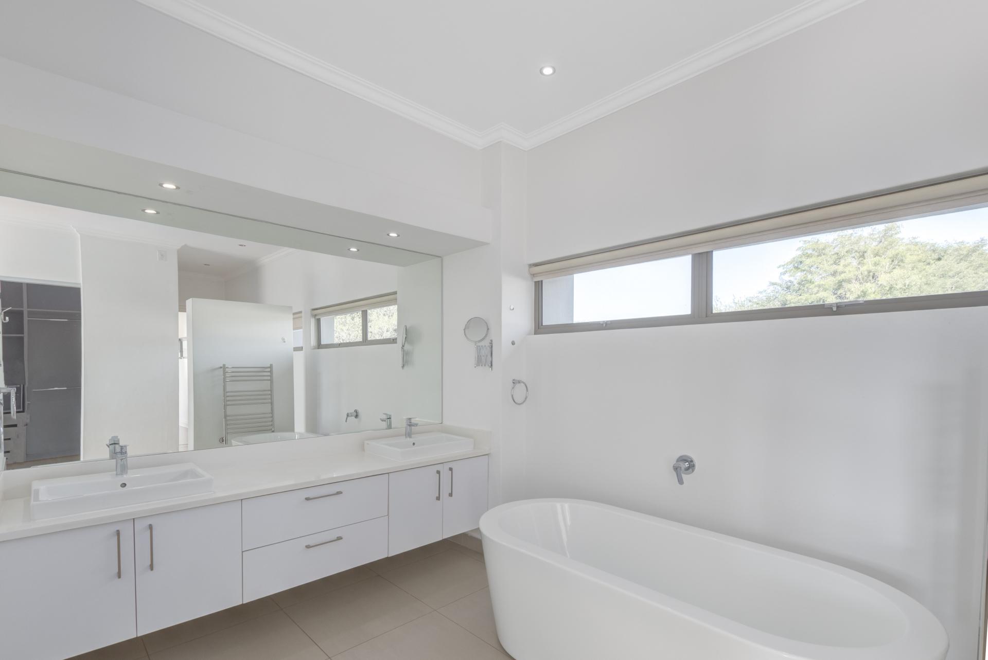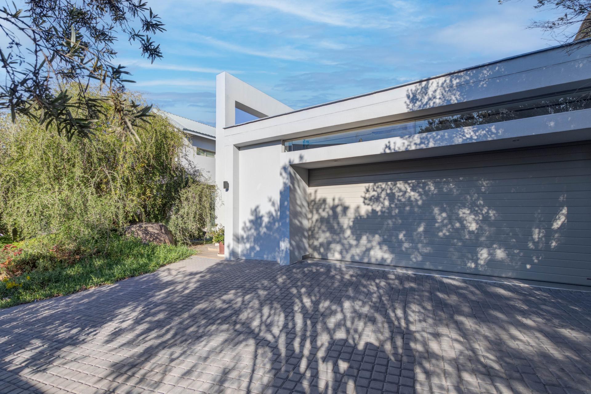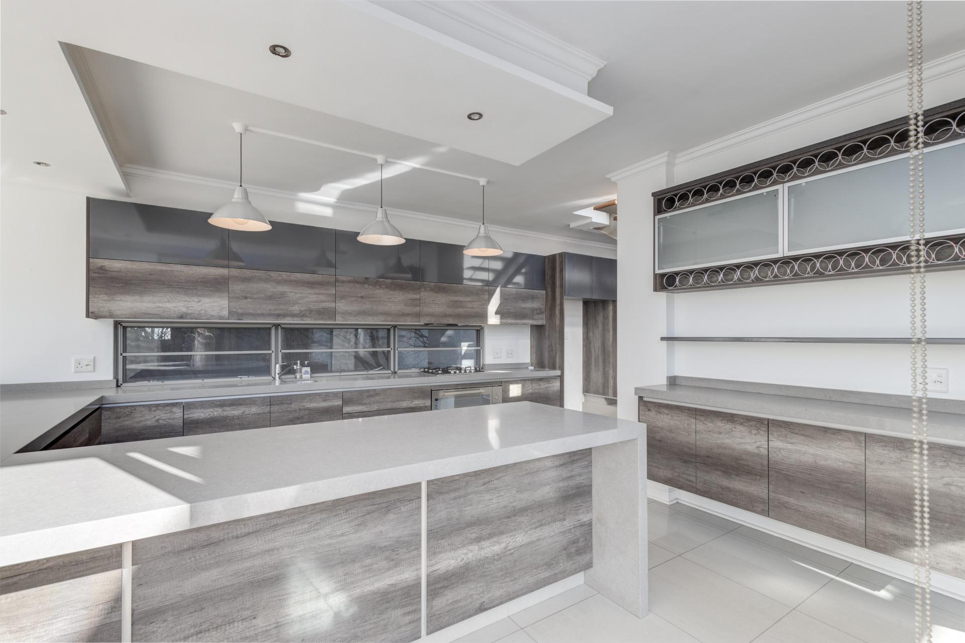 The gourmet kitchen is a chef's dream, equipped with integrated appliances and complemented by a separate scullery and laundry room for added convenience. With eco-friendly features such as a 5 KVA inverter, lithium-ion batteries, solar panels, and backup water tanks, this home offers both sustainability and luxury living.