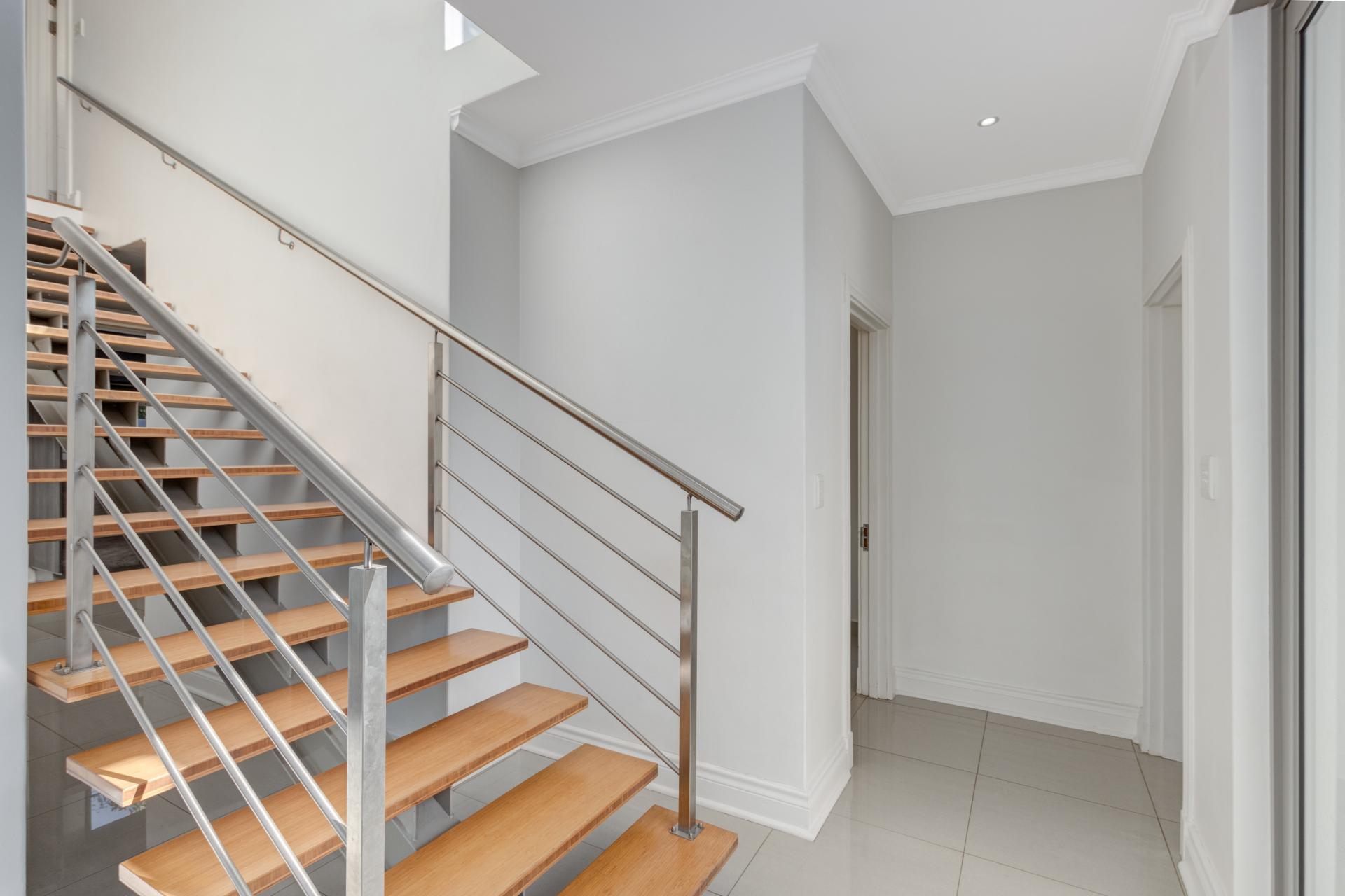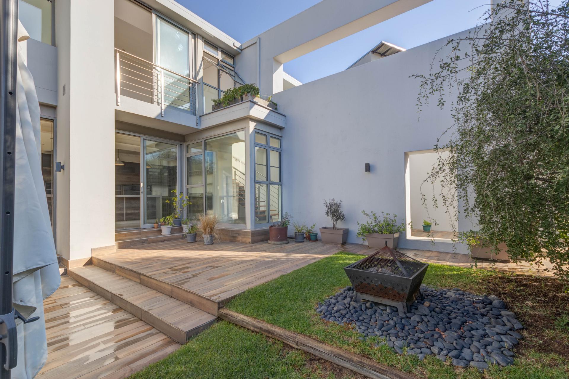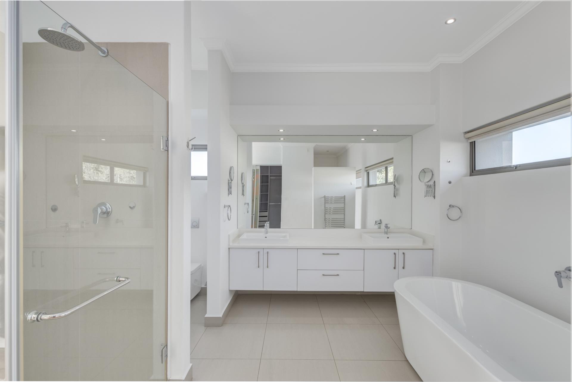The gourmet kitchen is a chef's dream, equipped with integrated appliances and complemented by a separate scullery and laundry room for added convenience. With eco-friendly features such as a 5 KVA inverter, lithium-ion batteries, solar panels, and backup water tanks, this home offers both sustainability and luxury living.