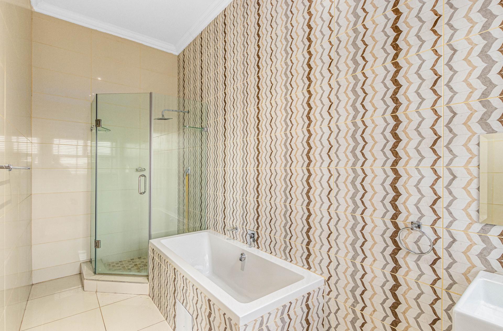The home features expansive windows that create a bright and inviting atmosphere, spacious living areas with flexible open-plan living, and a dedicated study. Perfect for entertainment and leisure, the balcony offers breathtaking 360-degree views, ideal for hosting gatherings. Secure parking for four cars and ample visitors' parking add to the convenience. Each luxurious bedroom is a haven of comfort with its own bathroom, while the master suite includes a lavish en-suite bathroom and generous cupboards. Additional features include staff accommodation, a borehole water tank with filtration (2,220 liters), and a 5kW inverter.