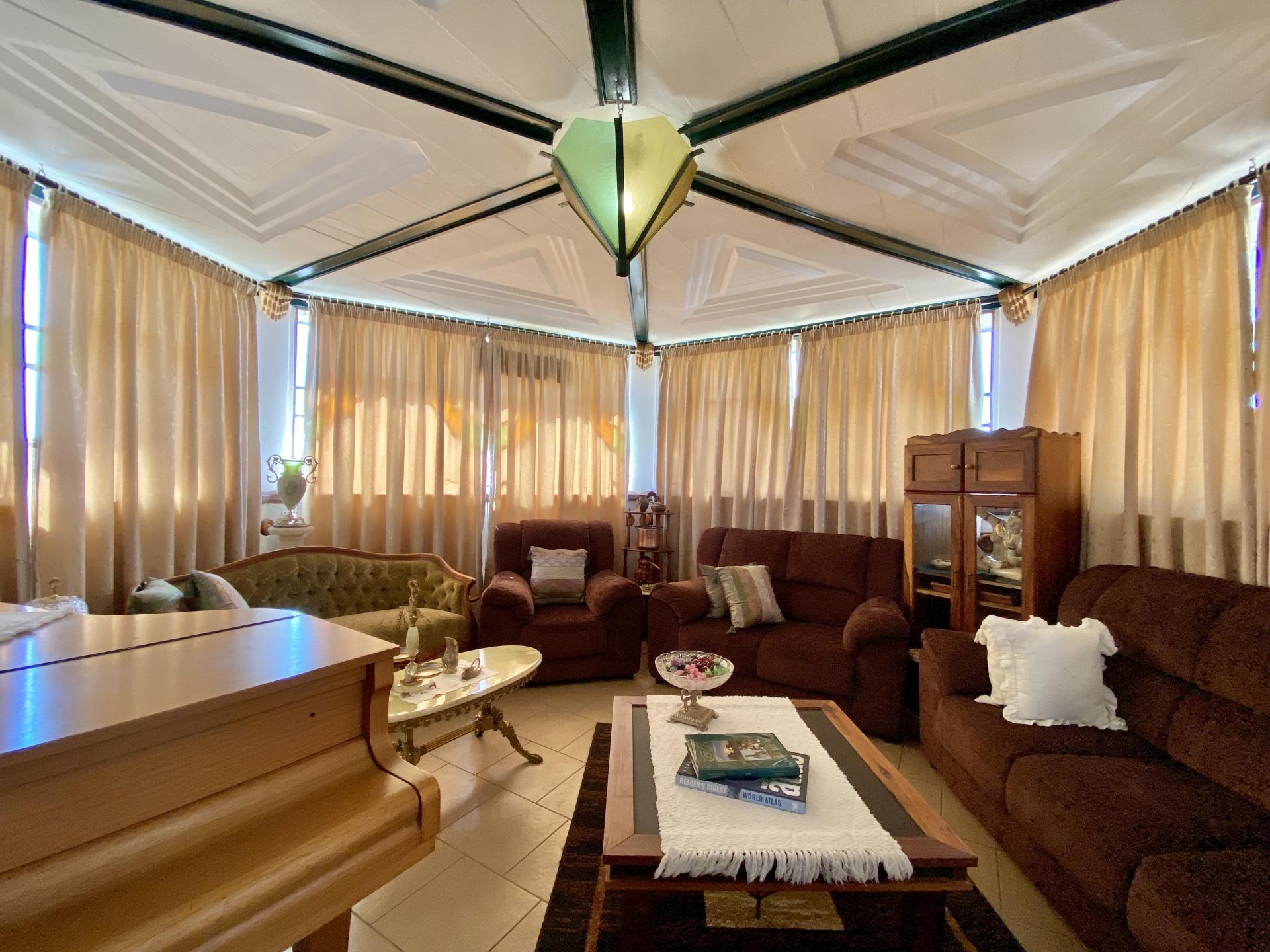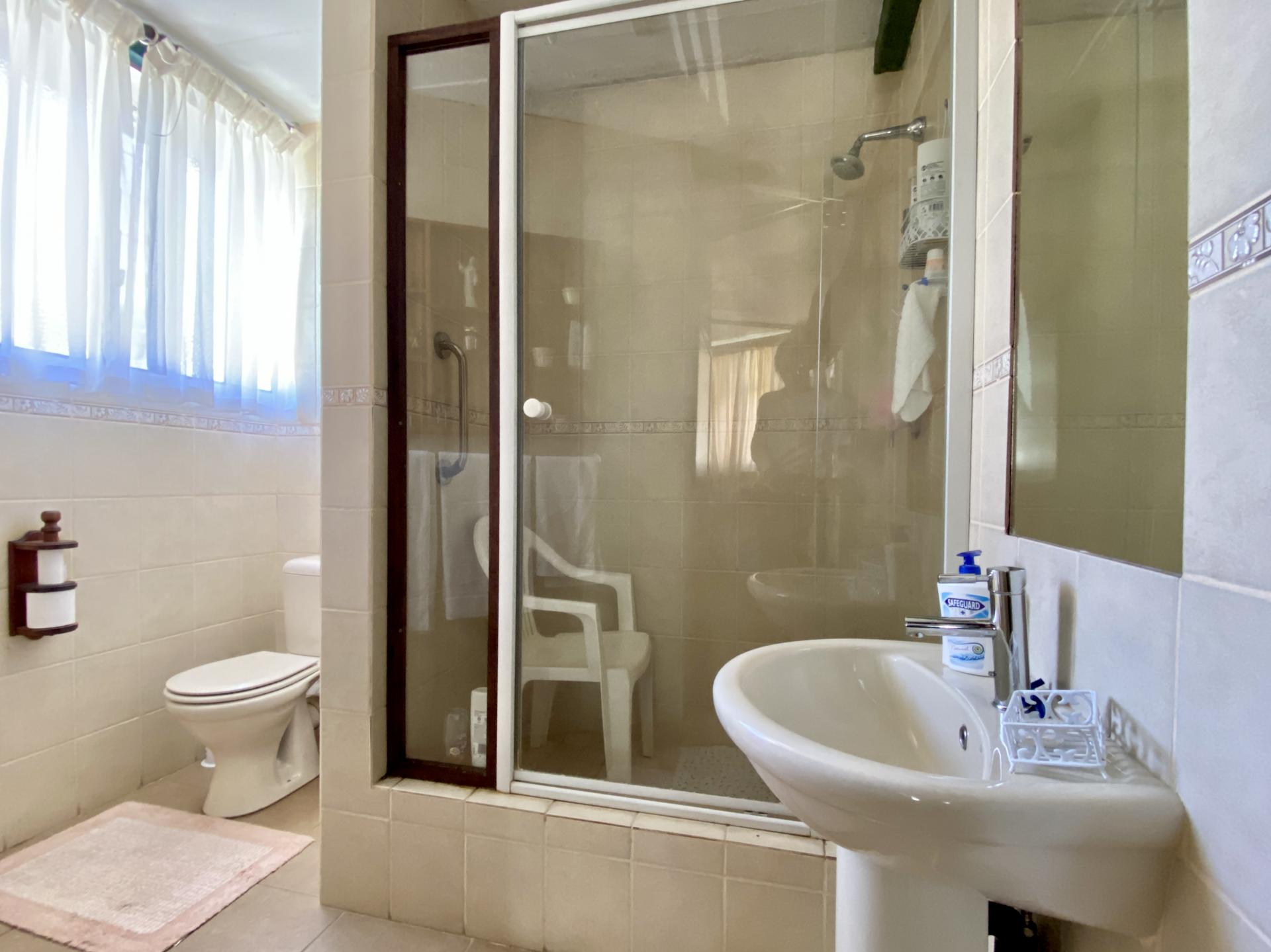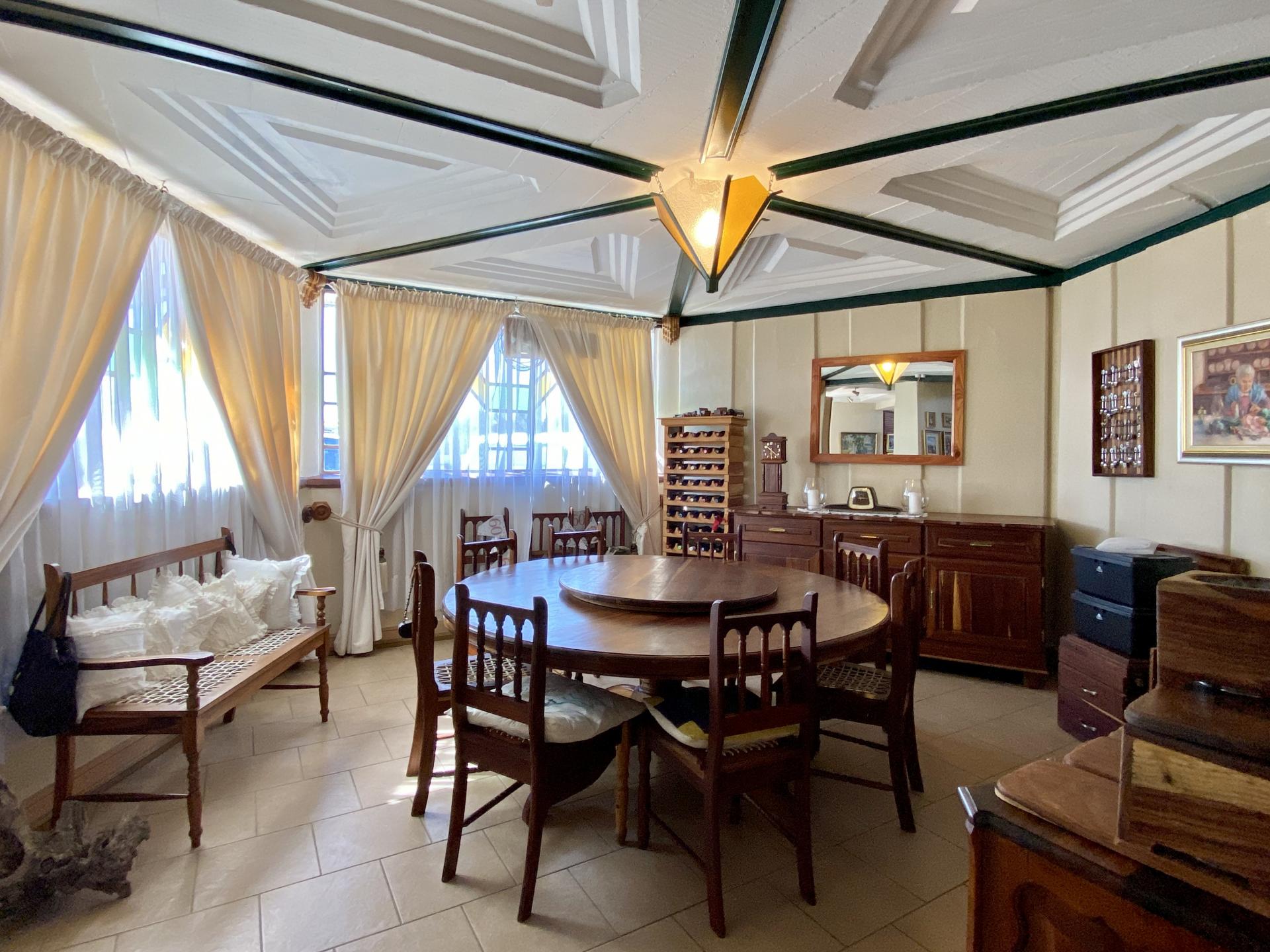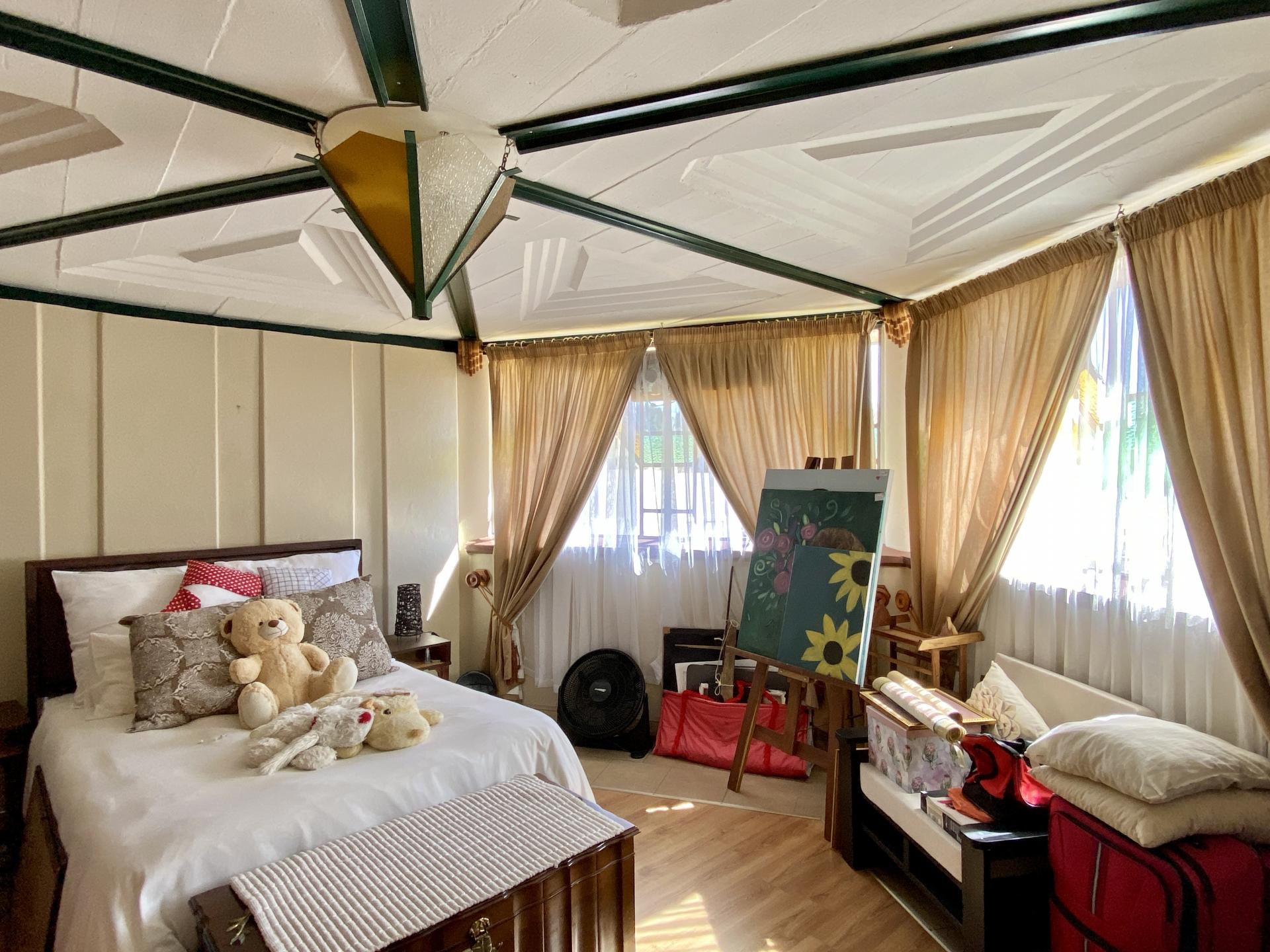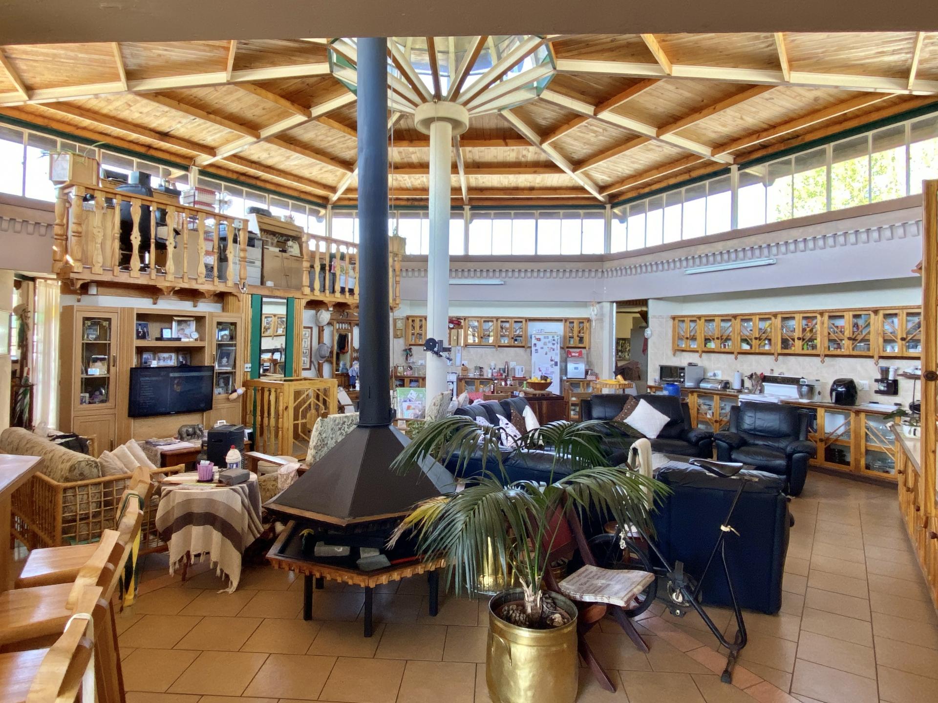 All four bedrooms each with build-in cupboards & en-suite bathrooms flows out of the bright double volume living area in the centre of the house. An open-plan kitchen, build-in bar and fireplace makes this area very cosy.