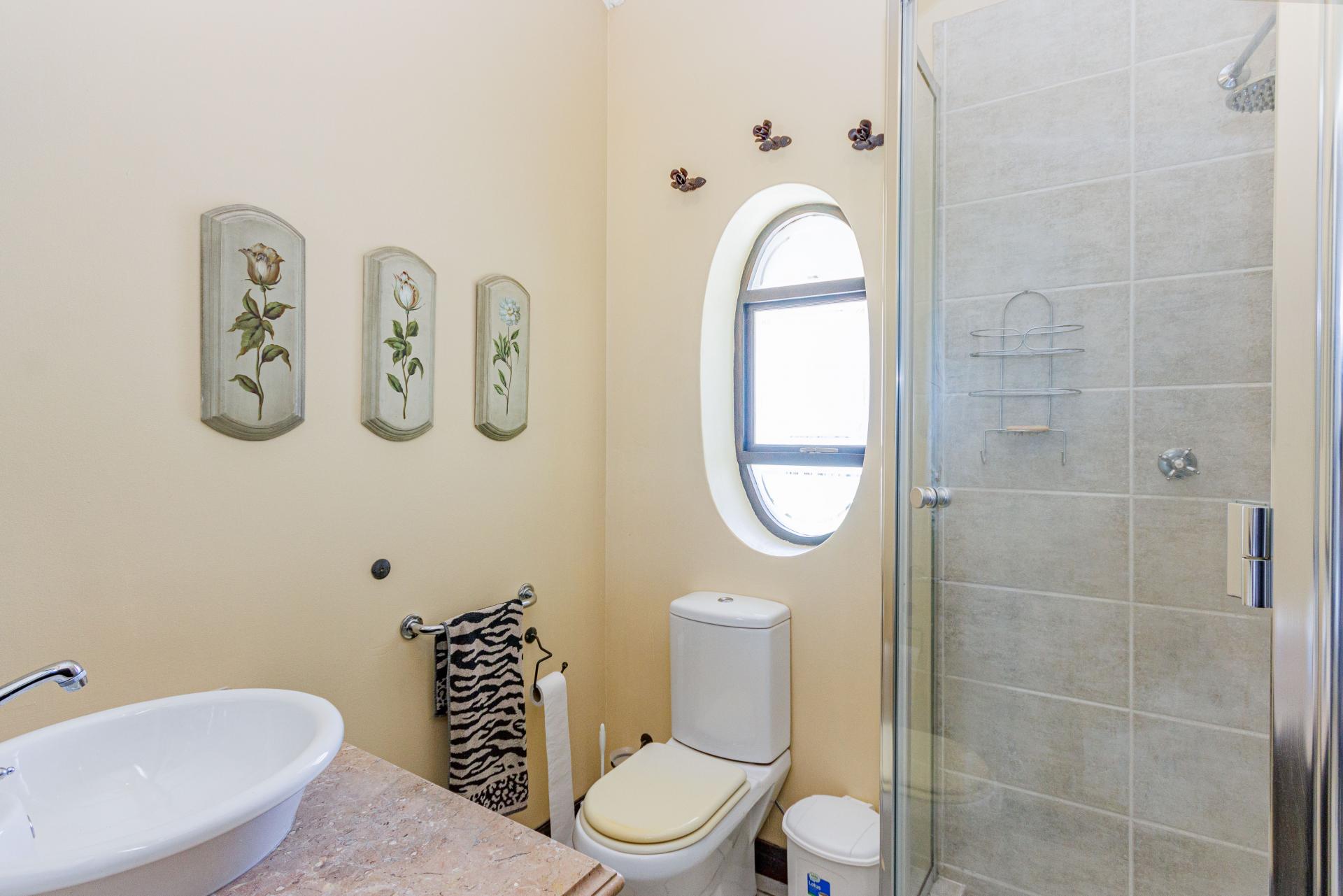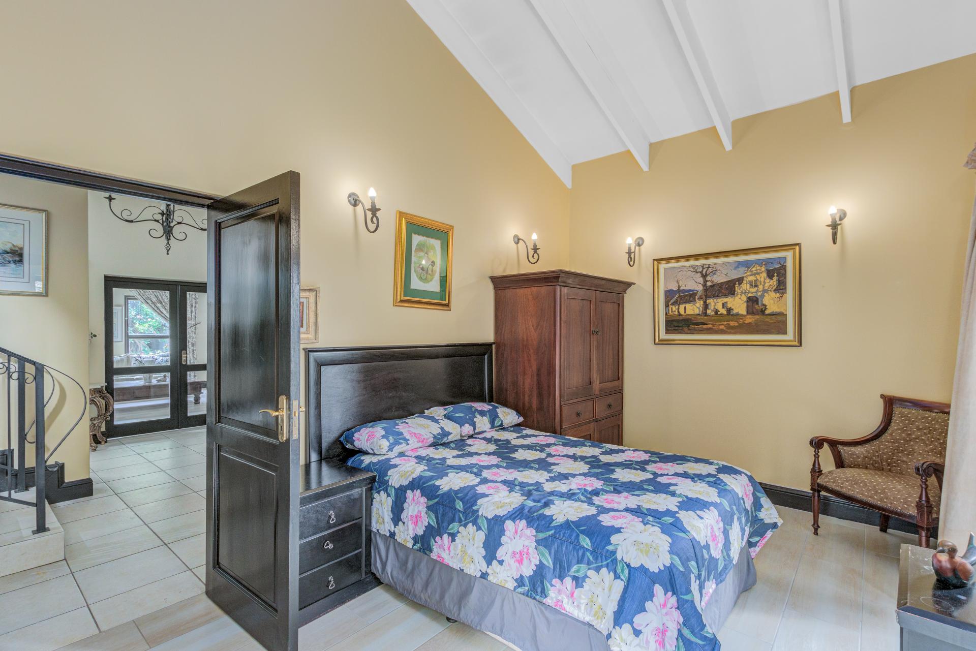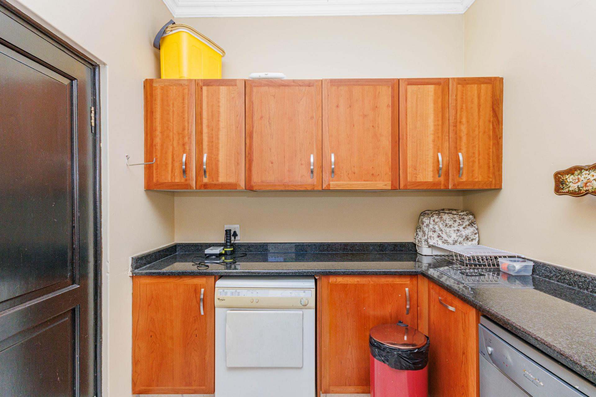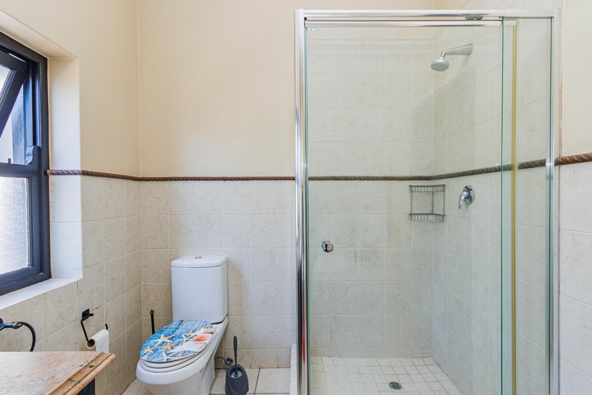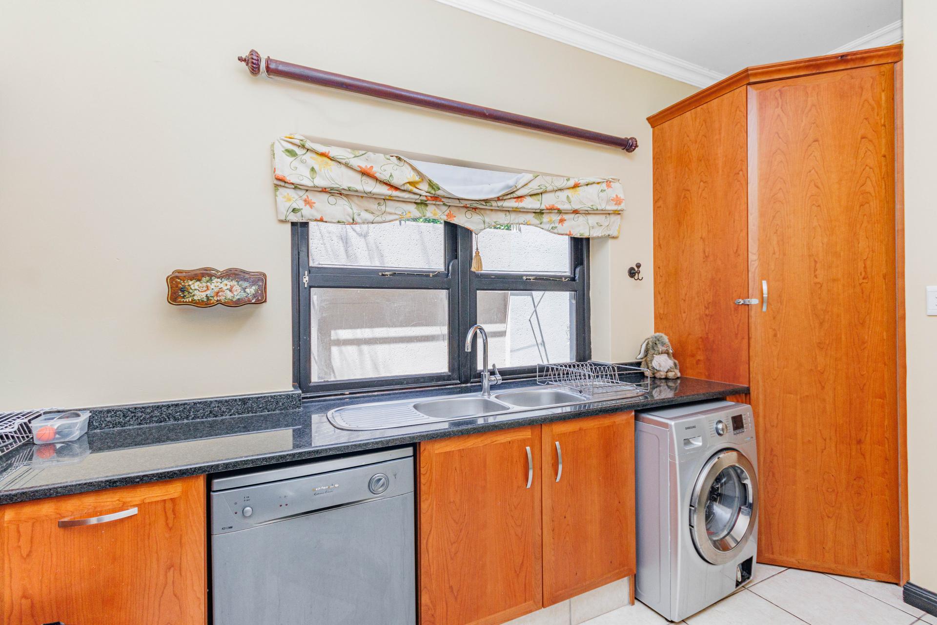 The open-plan kitchen, designed for modern living, flows into the cozy TV lounge and features a separate scullery along with ample storage. Step outside to the expansive patio, complete with a built-in braai, offering stunning views of the swimming pool and serene koi pond.