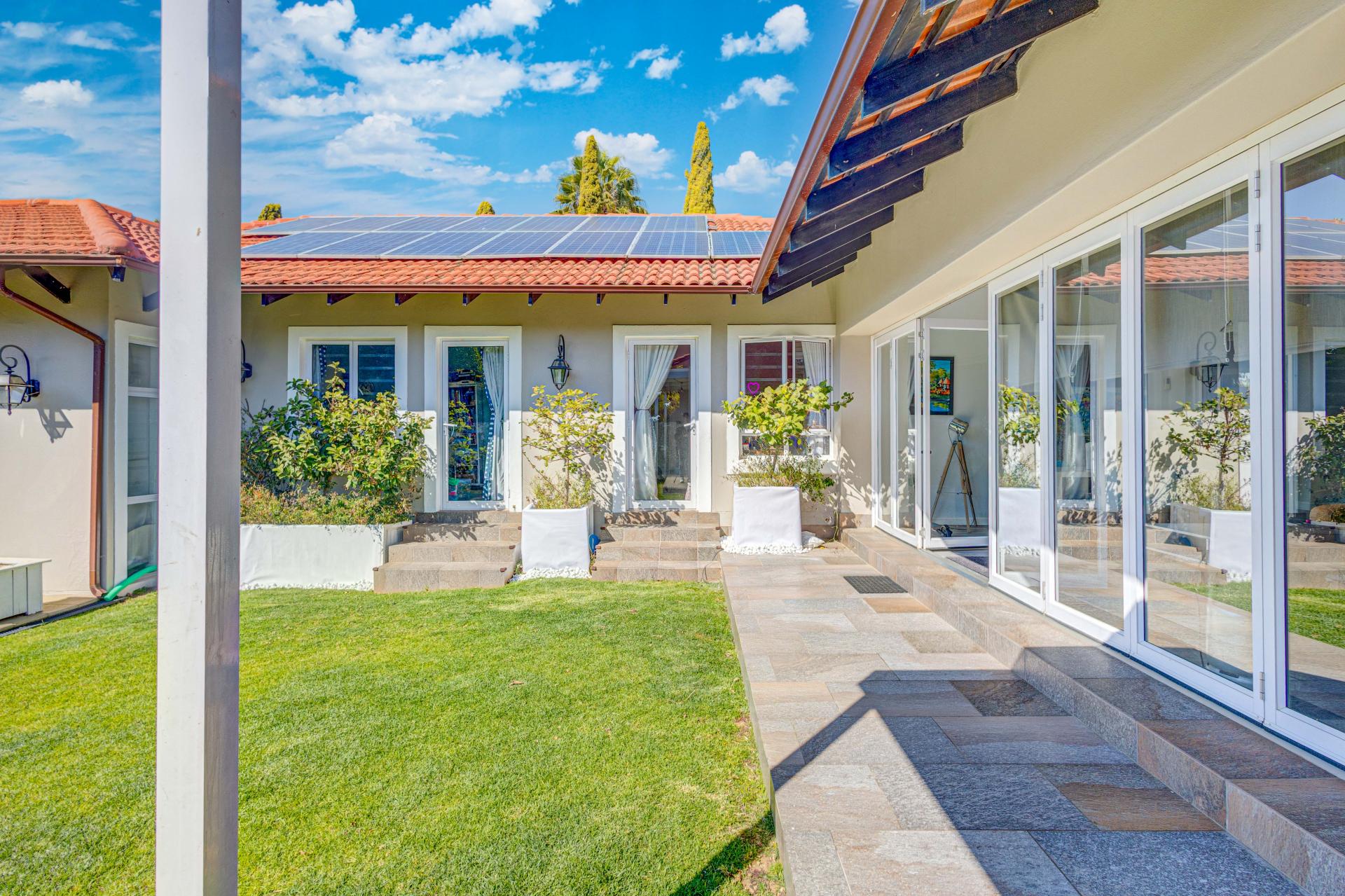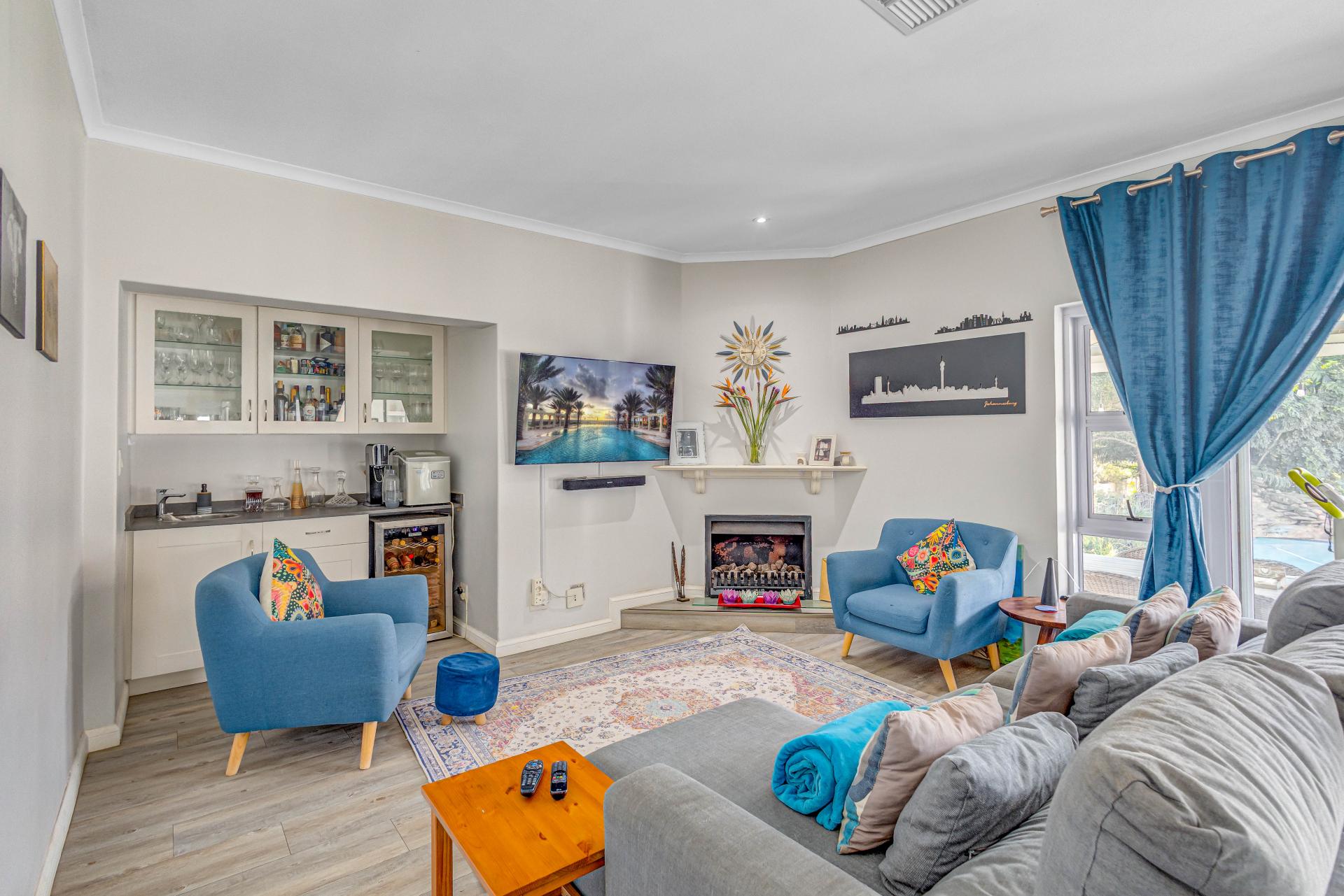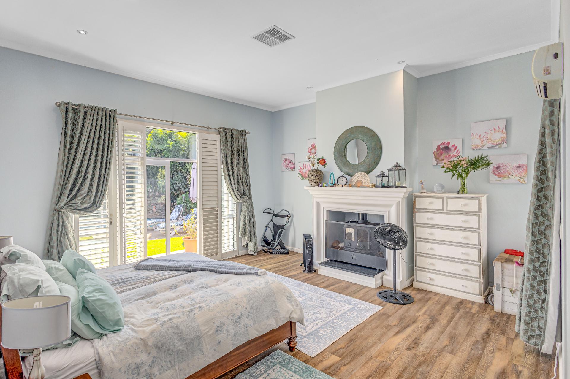 The heart of the home is a well-appointed kitchen with a separate scullery, ensuring both functionality and style. Down the passage, you'll find three comfortable bedrooms, including a main en-suite with garden views, gorgeous fireplace and a large walk-in dressing room. The guest suite has its own en-suite bathroom and offers ideal privacy for visitors or extended family.