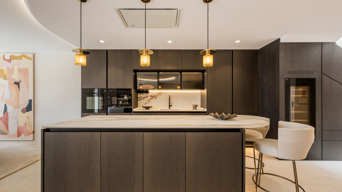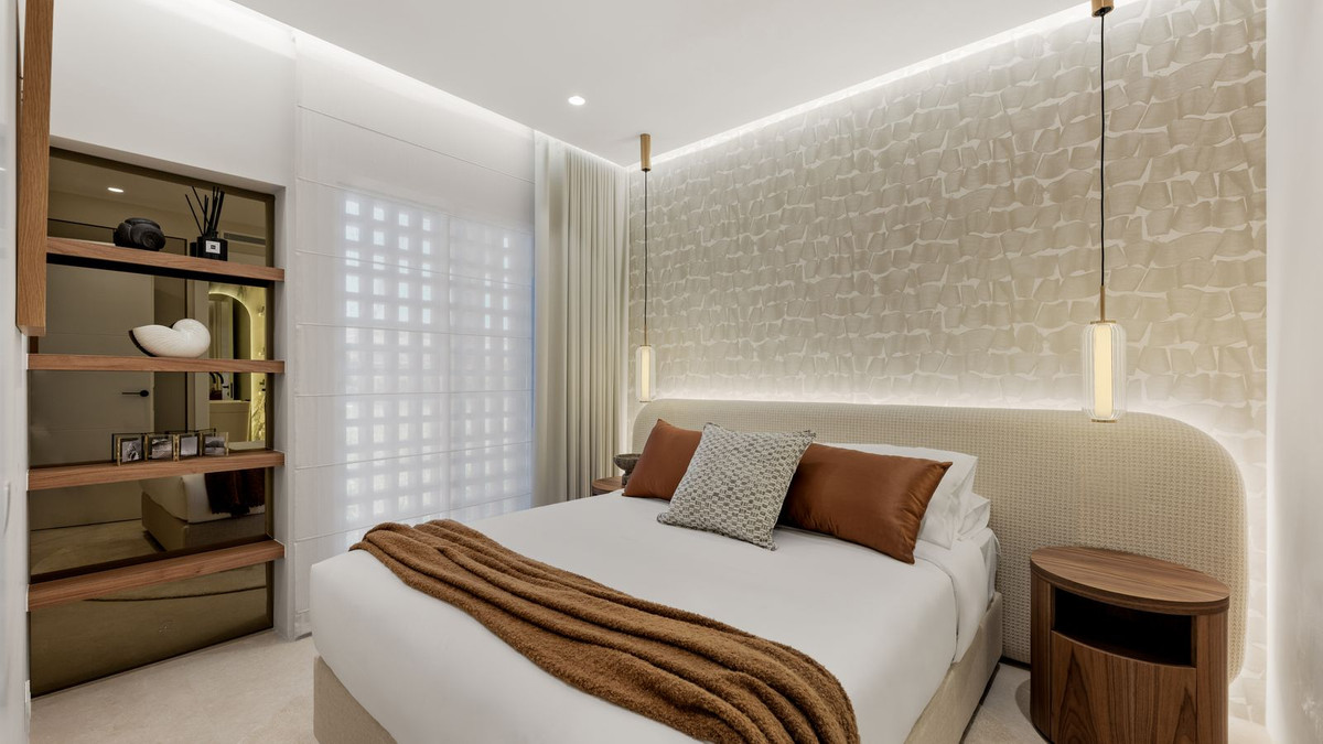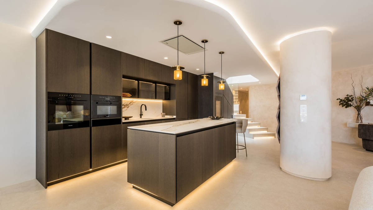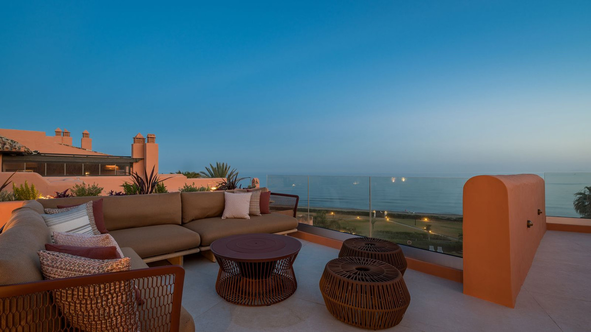 With over 240 m² of interior space and another 200 m² of terraces, this property offers a level of space that feels more like a villa. The interiors have been meticulously designed, featuring custom wardrobes, a sleek Siematic designer kitchen with top-of-the-line Miele appliances, and elegant contemporary furnishings. A Bang & Olufsen sound system, a cozy electric fireplace, and sophisticated Kettal outdoor furniture complete the picture. Both terraces provide spectacular views of the Mediterranean coastline, stretching all the way to Gibraltar and North Africa—a daily reminder of the beauty of beachfront living.