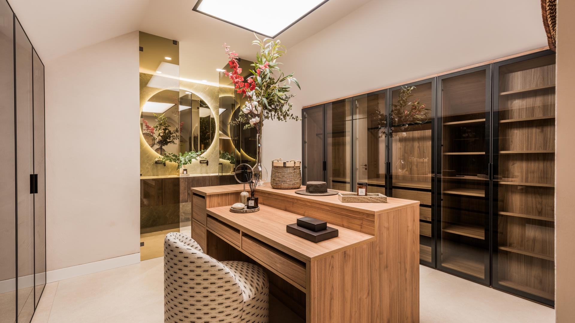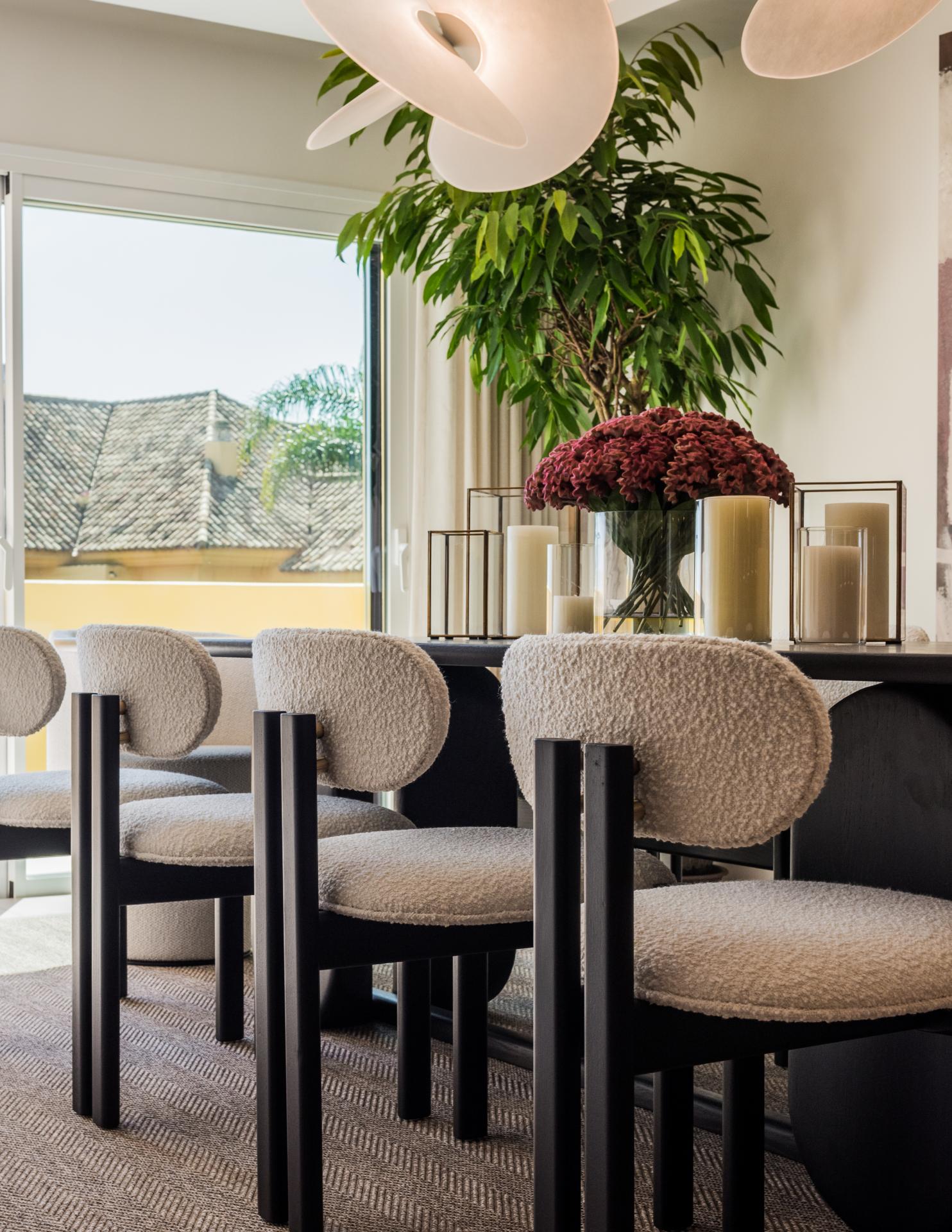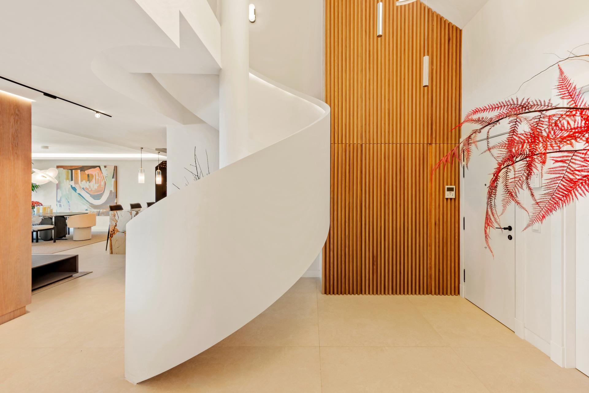 Recently renovated and masterfully designed by a well-known interior designer, the penthouse offers a refined blend of elegance and comfort. The open-plan layout includes a bright dining area and a fully fitted kitchen, complemented by luxurious details such as an electric fireplace, a Bang & Olufsen sound system, and custom-built wardrobes.