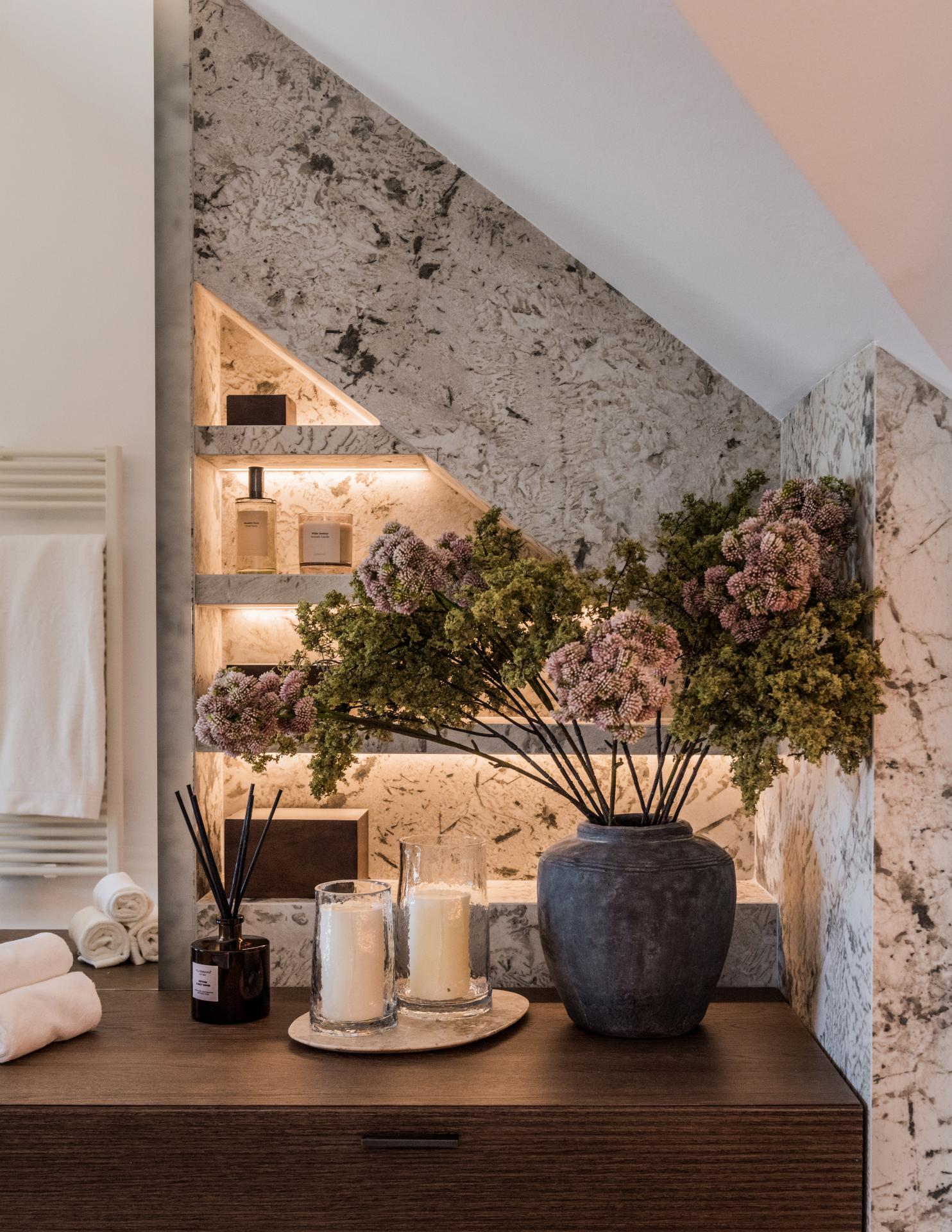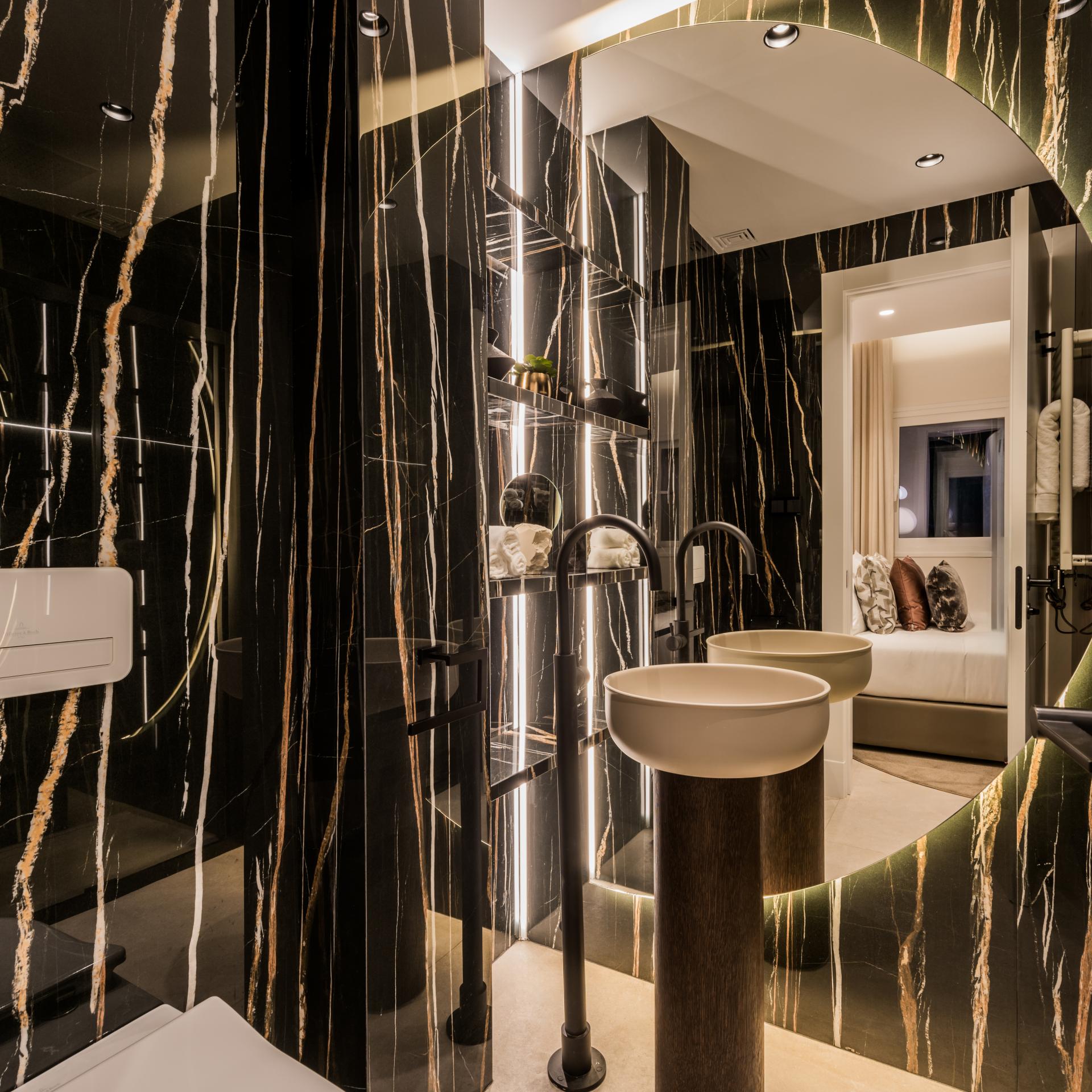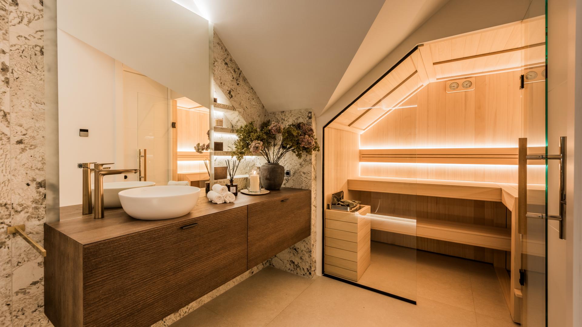 Recently renovated and masterfully designed by a well-known interior designer, the penthouse offers a refined blend of elegance and comfort. The open-plan layout includes a bright dining area and a fully fitted kitchen, complemented by luxurious details such as an electric fireplace, a Bang & Olufsen sound system, and custom-built wardrobes.