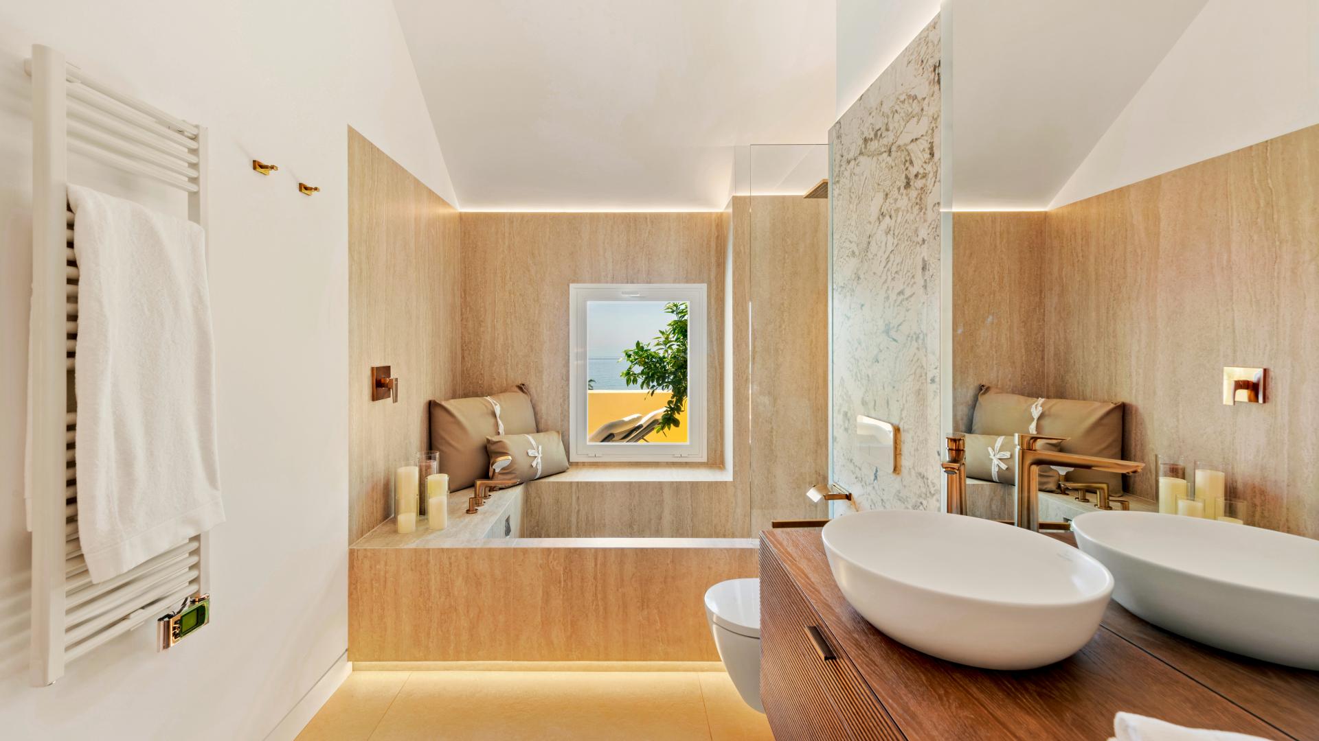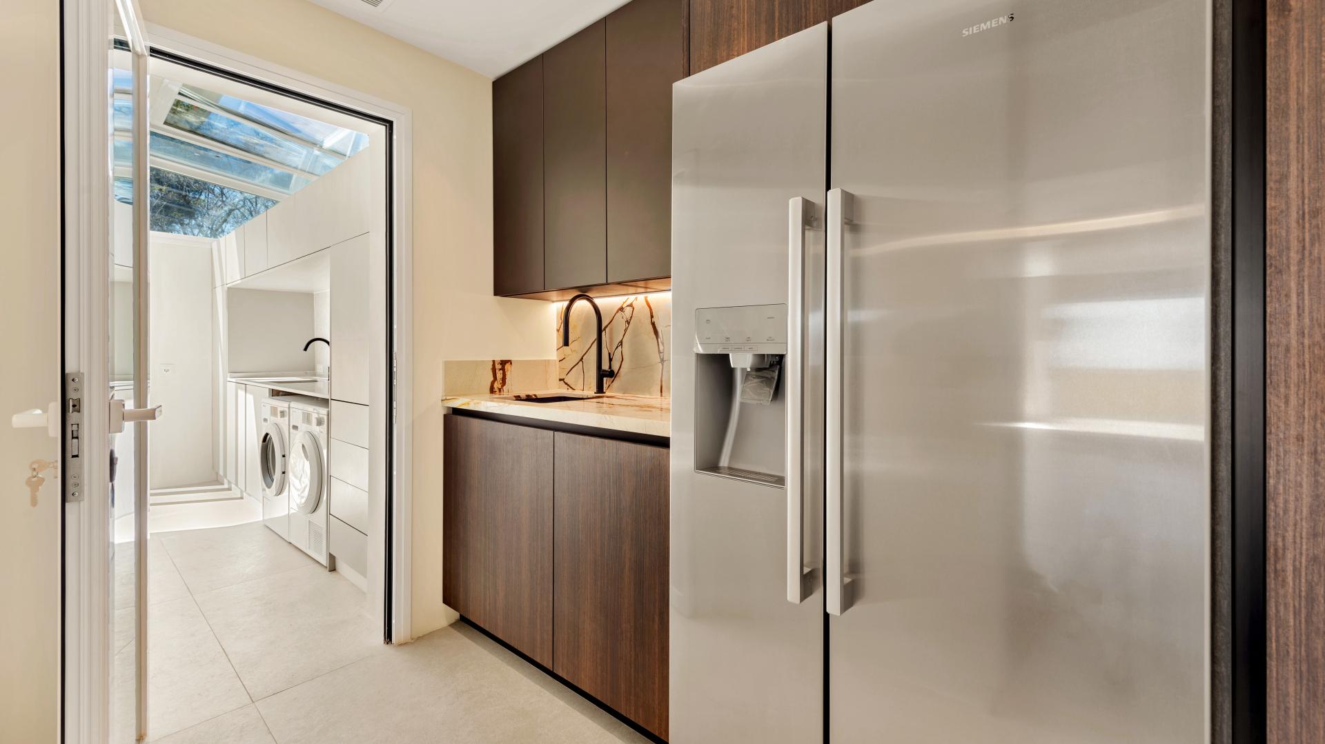 The home features four spacious bedrooms and five modern bathrooms, distributed across two levels to maximize privacy and natural light. A private lift connects the penthouse to its underground parking space and dedicated storage room, offering practicality alongside its impressive design.