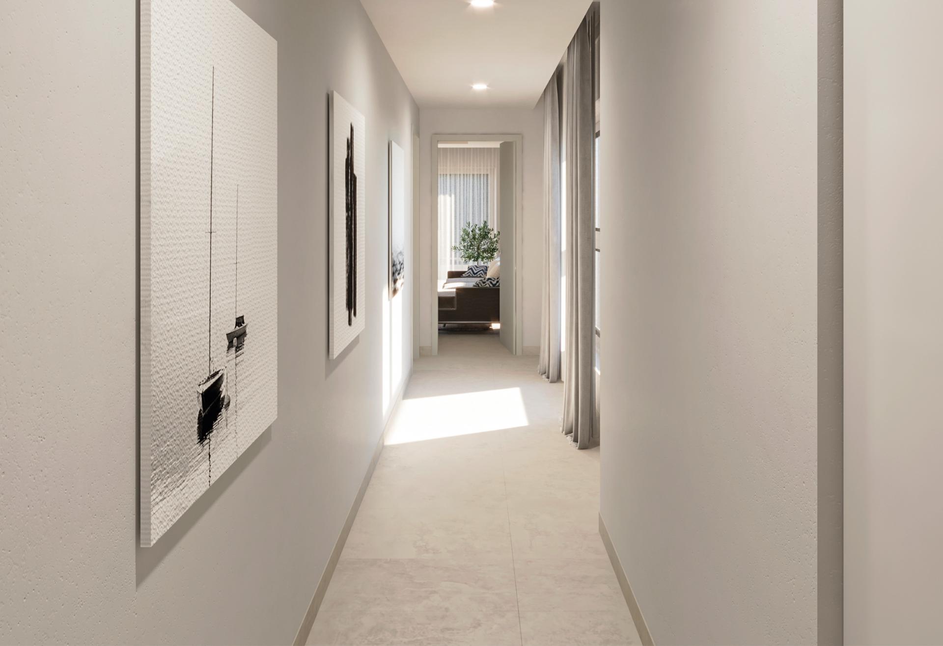 lnstallation of motorised aluminium roller blinds in anthracite colour on both sides on doors and windows in the living-dining room and in the bedrooms.