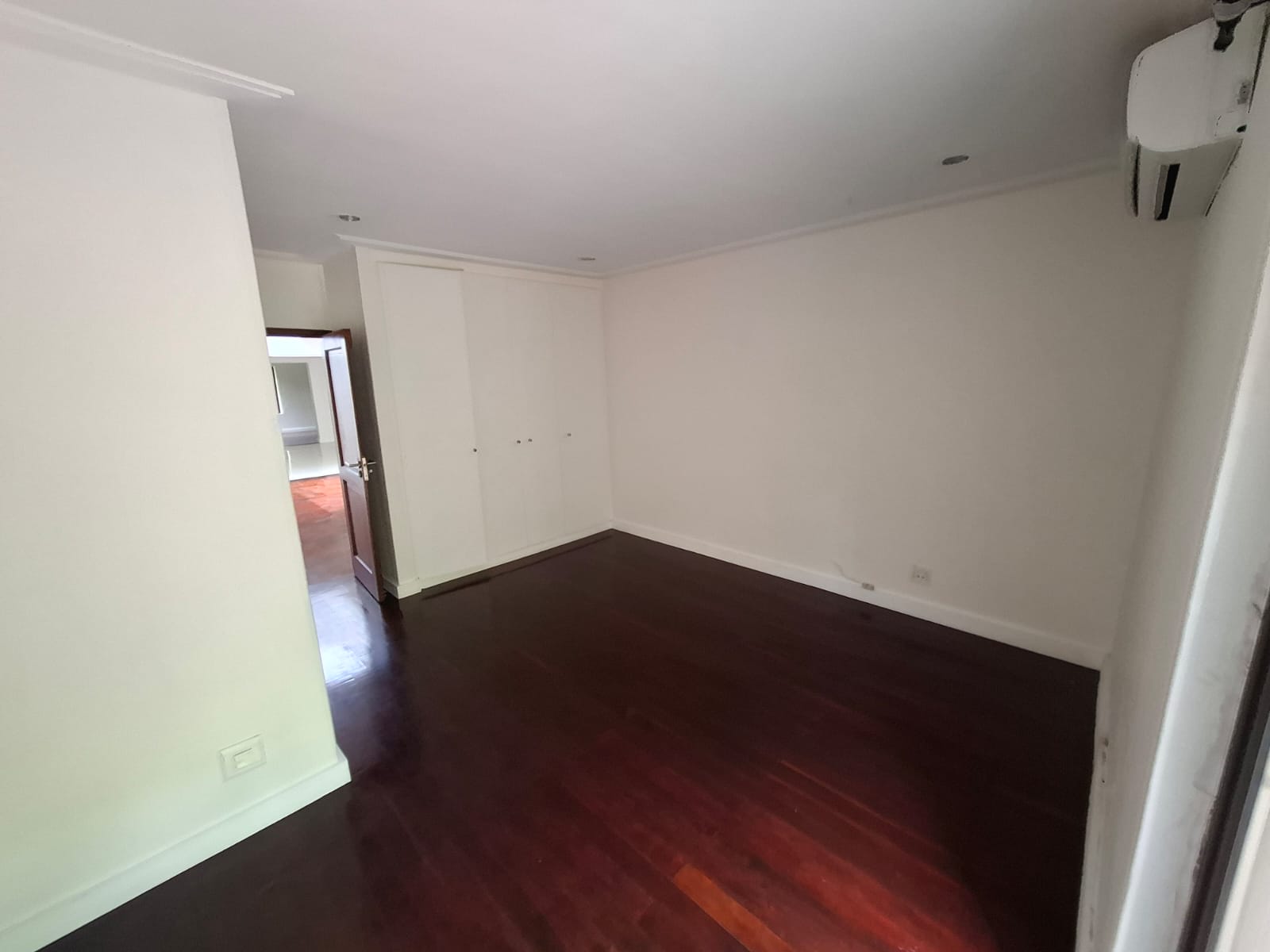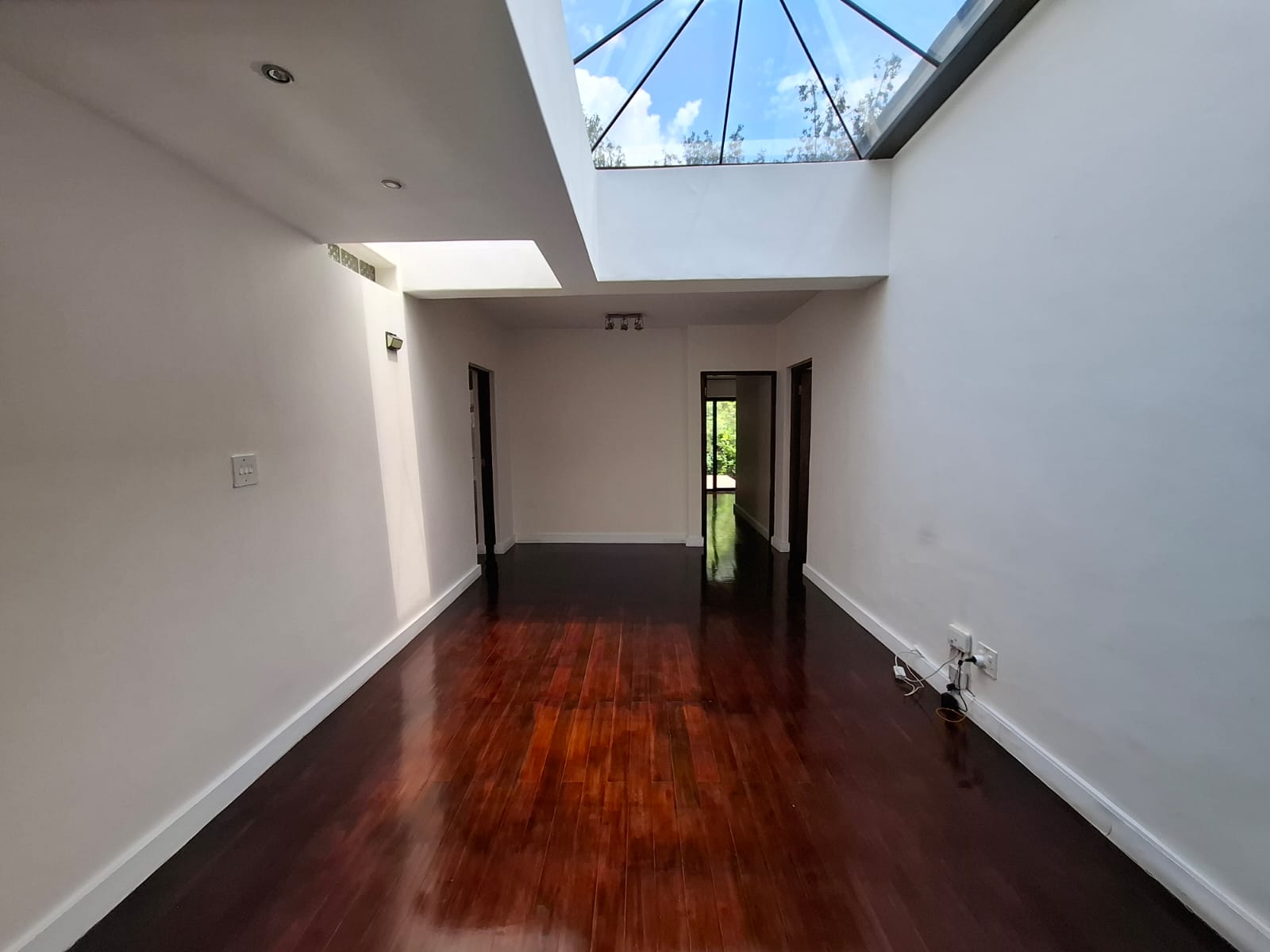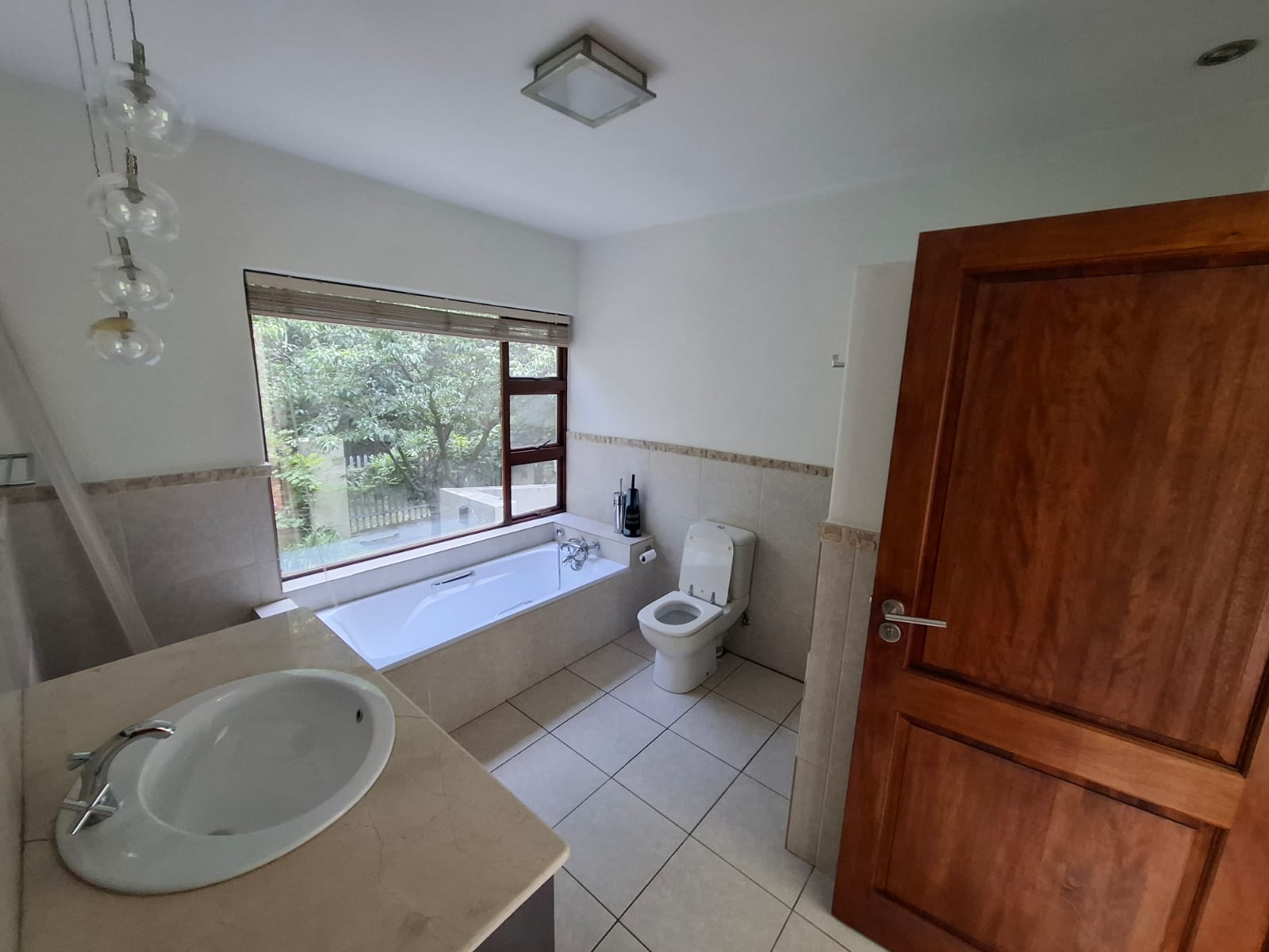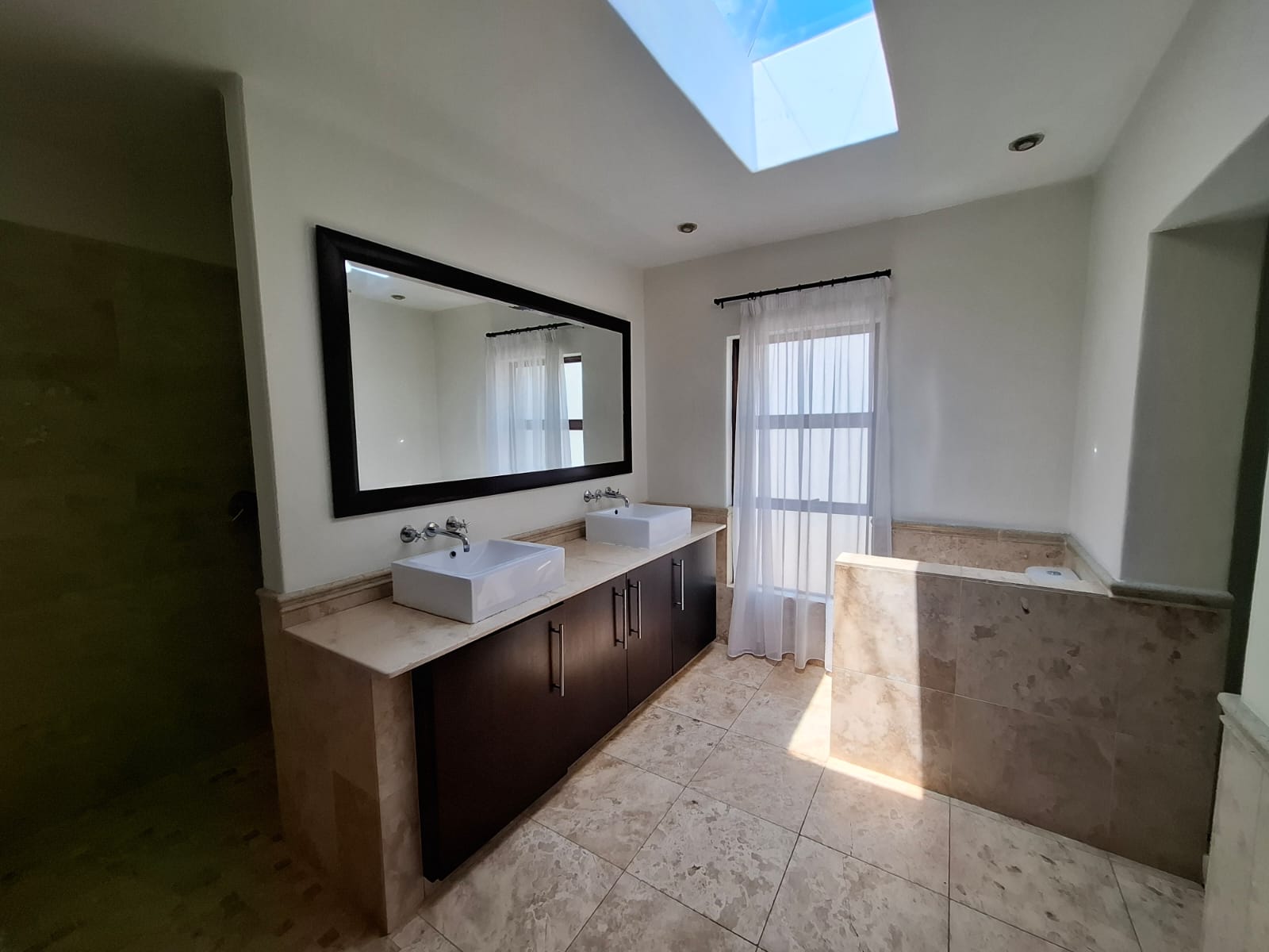The gourmet chef’s kitchen is a true highlight, featuring high-end finishes, ample storage, a central island, and a separate scullery for added convenience. The home offers four well-appointed bedrooms, with two featuring en-suite bathrooms, while the remaining two share a stylish full bathroom. A guest cloakroom adds to the home’s practicality. The double garage and staff accommodation further enhance its appeal, making it ideal for families looking for a secure and prestigious lifestyle in the estate.