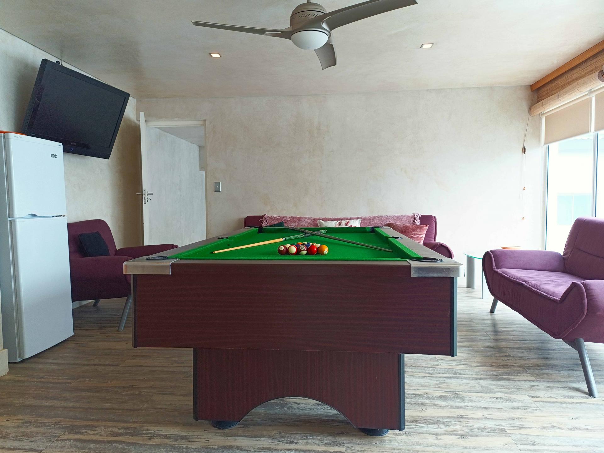 Rooftop patio, partly under-cover, with sweeping views of the surrounding beach and ocean.