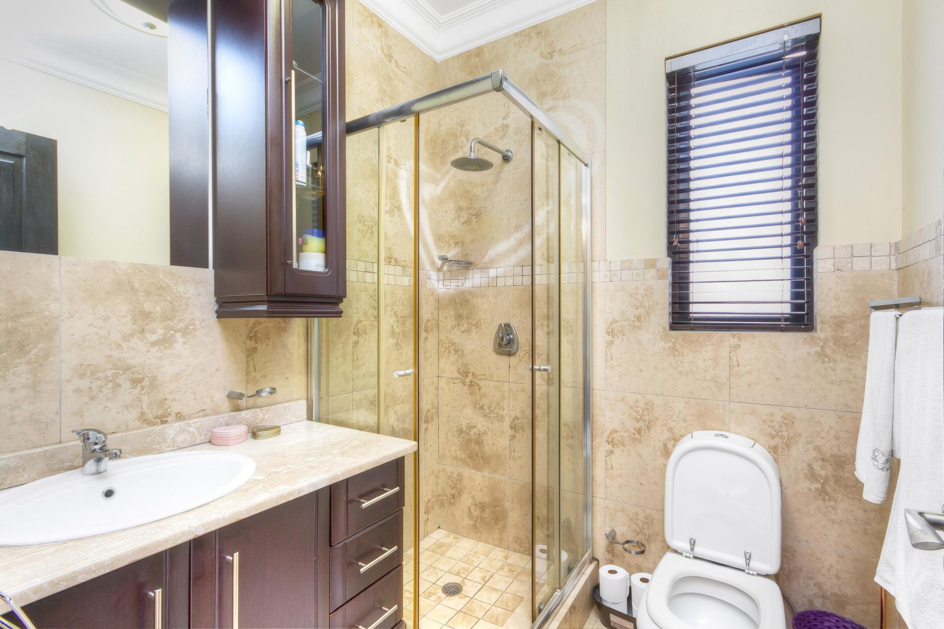 The main bedroom also boasts a stunning full ensuite bathroom, complete with an extra-large shower, double vanities, a toilet, and a bidet, all finished with the same beautiful travertine tiles throughout.