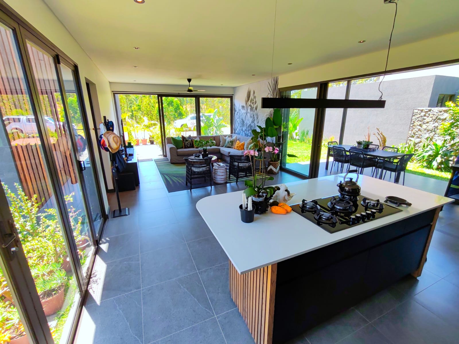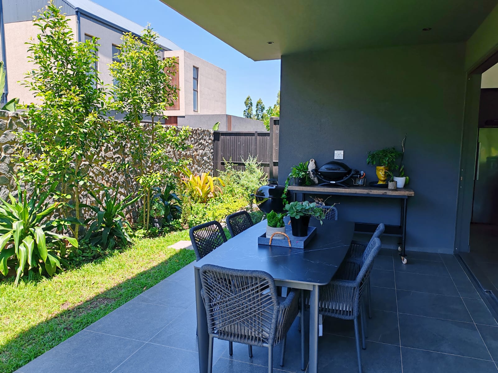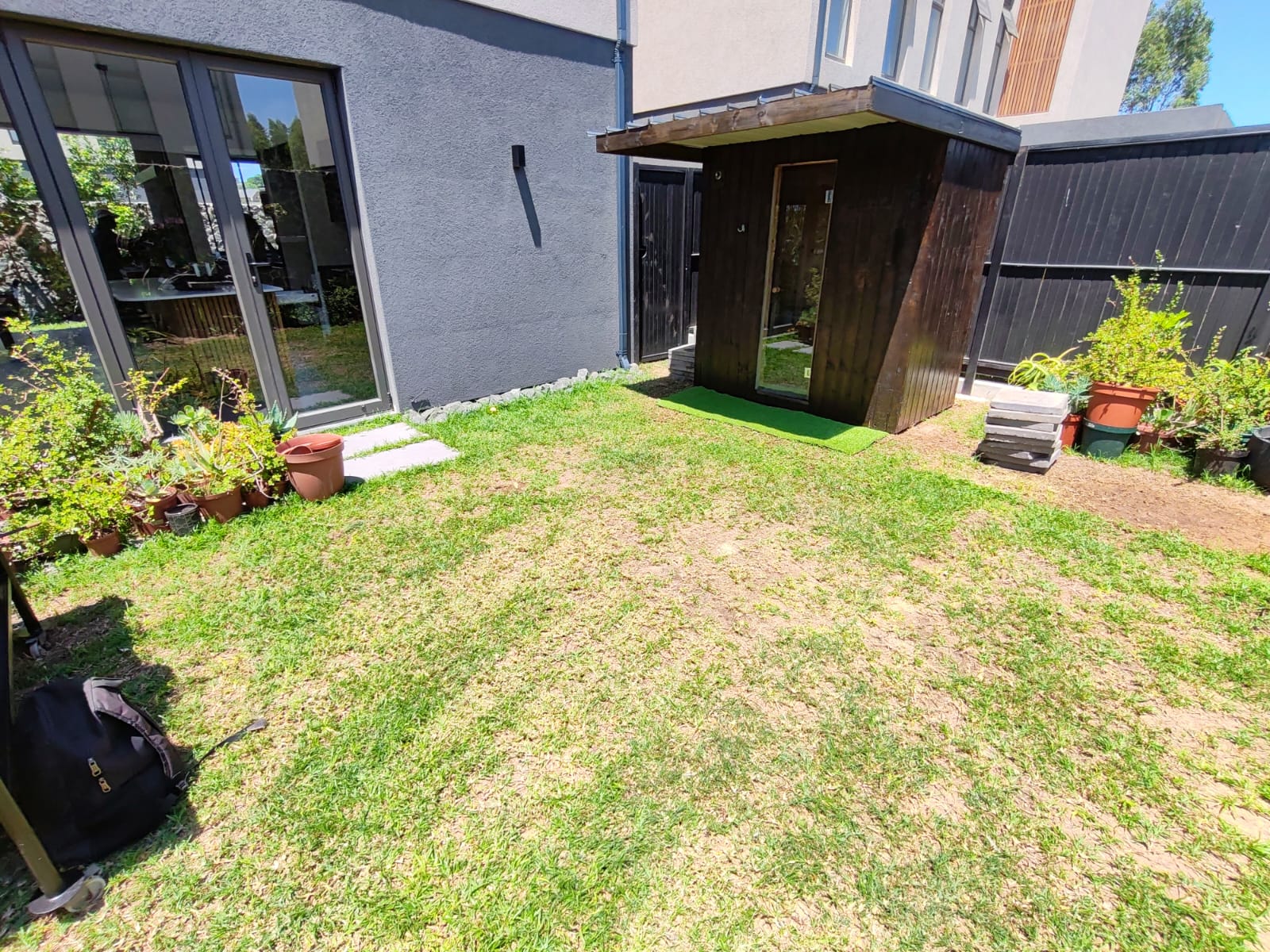 A beautiful 4-bedroom home nestled in in Elaleni estate. This stunning home is part of the holistic Elaleni estate, known for its equilibrium with nature, communal gardens where one gathers ones veg and fruit on the way home from work, lovely walking trails through the green belts, Fig forest Leisure Centre with 25m sized training pool, splash pool ,water slide, pizza oven and entertainment braai area, jungle gyms and club house with restaurant, yoga areas and relaxation areas to work in or just relax. The home has 4 bedrooms, 2 bathrooms with one en-suite, a spacious lounge dining area with a well-equipped kitchen complete with high end appliances. The covered outside patio allows for entertainment. A garage with electric doors and wooden deck platform