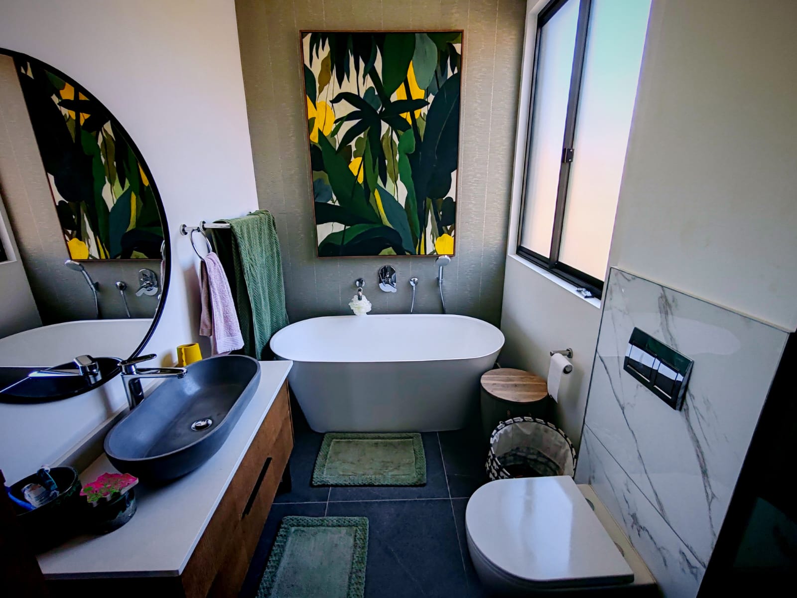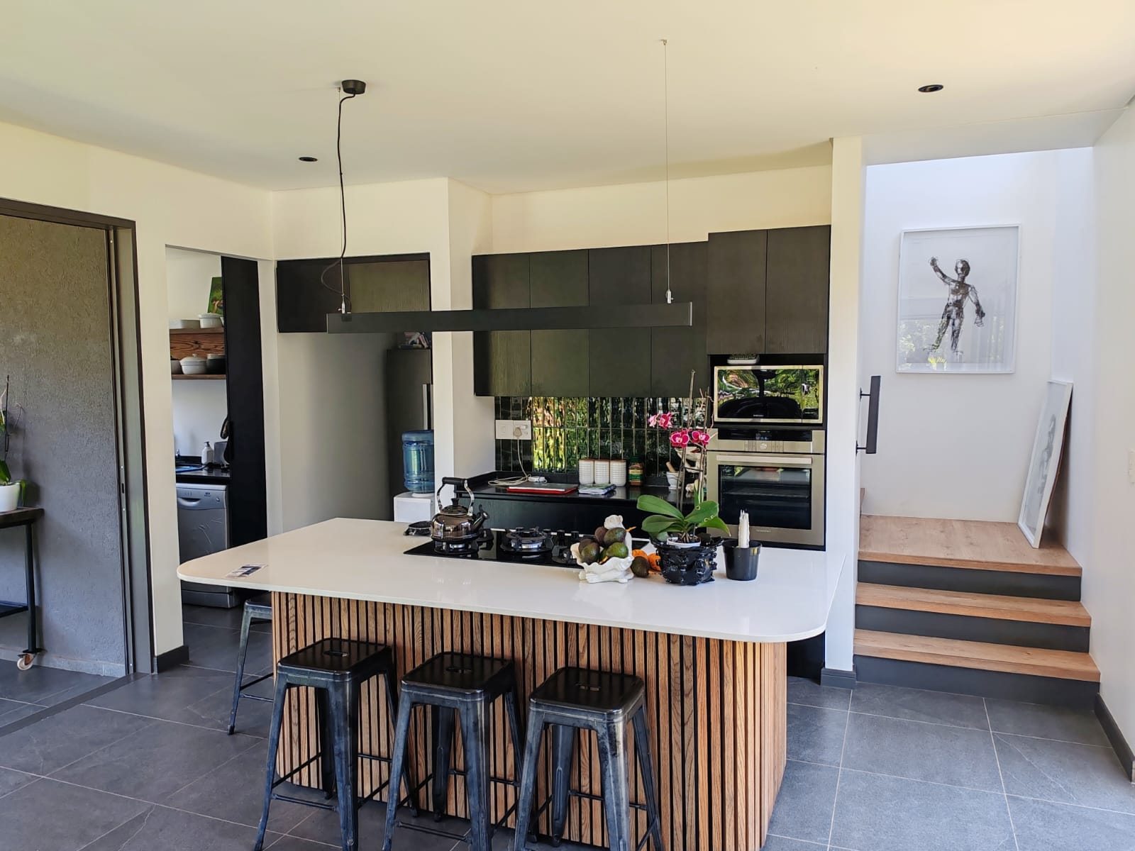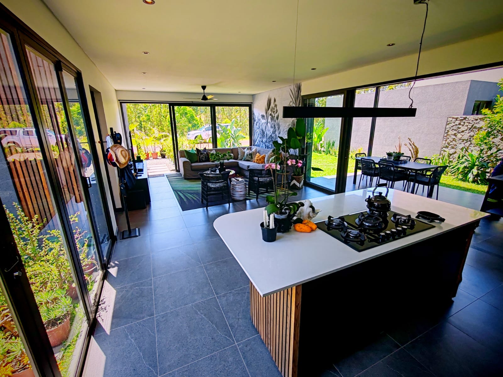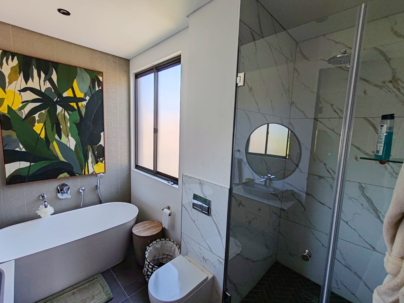 A beautiful 4-bedroom home nestled in in Elaleni estate. This stunning home is part of the holistic Elaleni estate, known for its equilibrium with nature, communal gardens where one gathers ones veg and fruit on the way home from work, lovely walking trails through the green belts, Fig forest Leisure Centre with 25m sized training pool, splash pool ,water slide, pizza oven and entertainment braai area, jungle gyms and club house with restaurant, yoga areas and relaxation areas to work in or just relax. The home has 4 bedrooms, 2 bathrooms with one en-suite, a spacious lounge dining area with a well-equipped kitchen complete with high end appliances. The covered outside patio allows for entertainment. A garage with electric doors and wooden deck platform