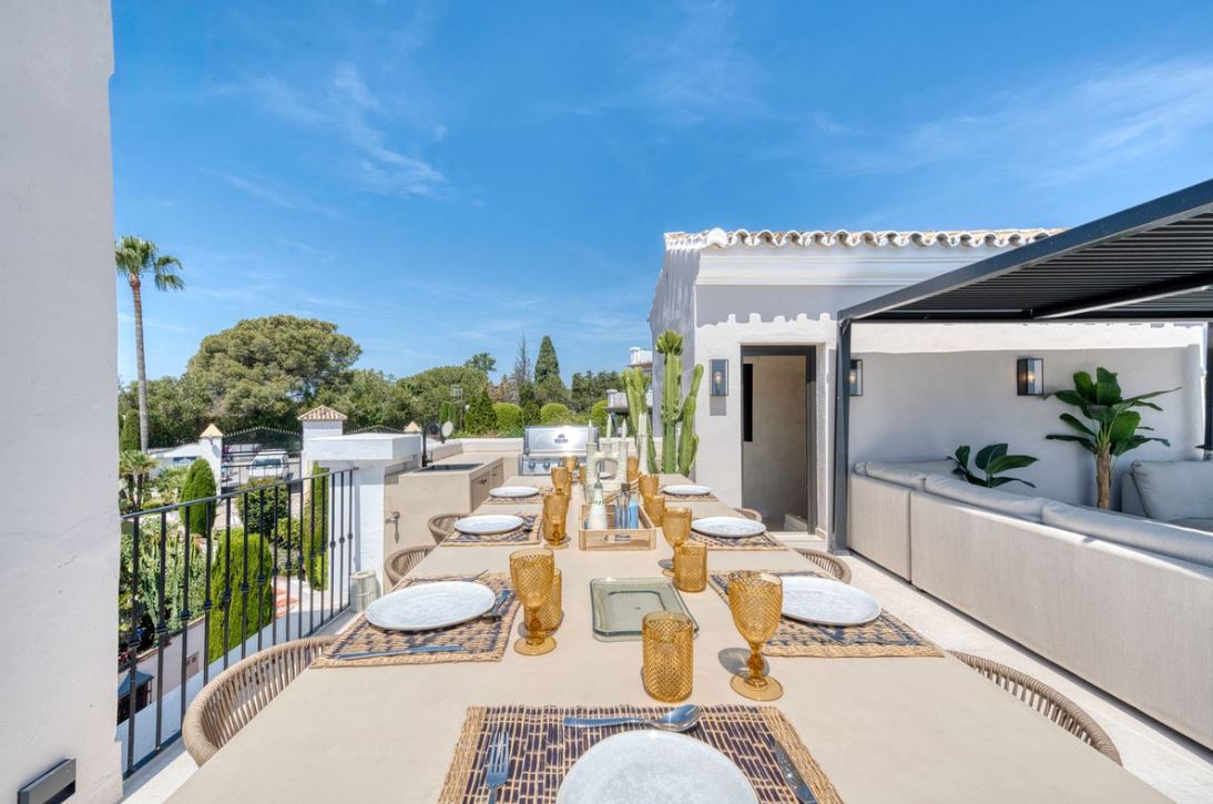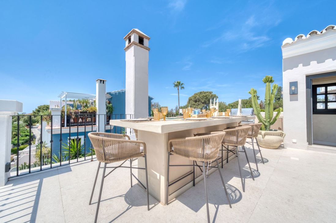 The rooftop terrace is simply show-stopping, with panoramic views stretching from La Concha to the rooftops of Puente Romano, the Mediterranean Sea, and even Gibraltar and North Africa on a clear day. Designed for year-round living, it features a heated plunge pool, BBQ and dining area, and a shaded chill-out lounge, capturing the very best of Marbella’s indoor-outdoor lifestyle.