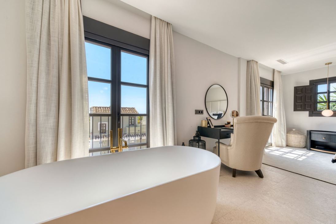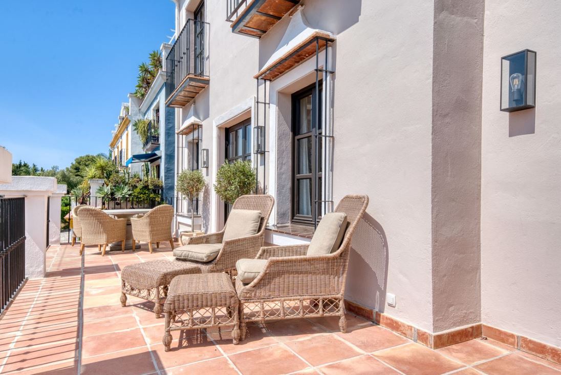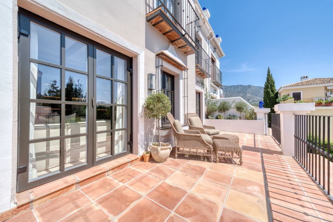 Set within an exclusive gated community on Marbella's Golden Mile, this exquisite townhouse captures the essence of classic Andalusian architecture with a luxurious contemporary edge. Located in the heart of Marbella’s prestigious Golden Mile, it offers total privacy, timeless design, and immediate access to the coast’s most iconic beach clubs and fine dining. The private community gated and secure, low-density community of just 24 homes, surrounded by Mediterranean gardens, cascading fountains, and a sculpted swimming pool. With 24-hour security and on-site maintenance, it offers the peace of a private retreat just moments from the beach and the Paseo Marítimo.