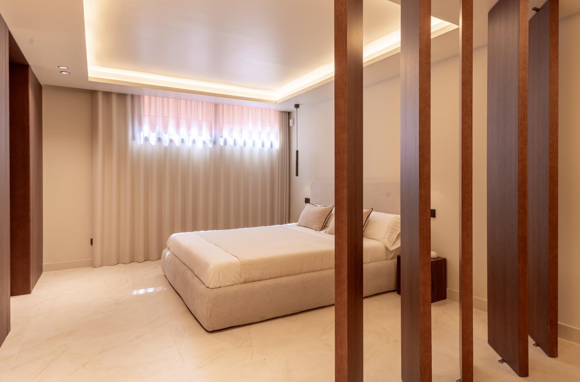 Upstairs, the main sleeping quarters include a spacious principal suite with custom wardrobes and a private terrace, accompanied by two additional bedrooms sharing a well-appointed bathroom. The lower level hosts a fourth en-suite bedroom and a flexible multipurpose room ideal for a home cinema, gym, or games area.