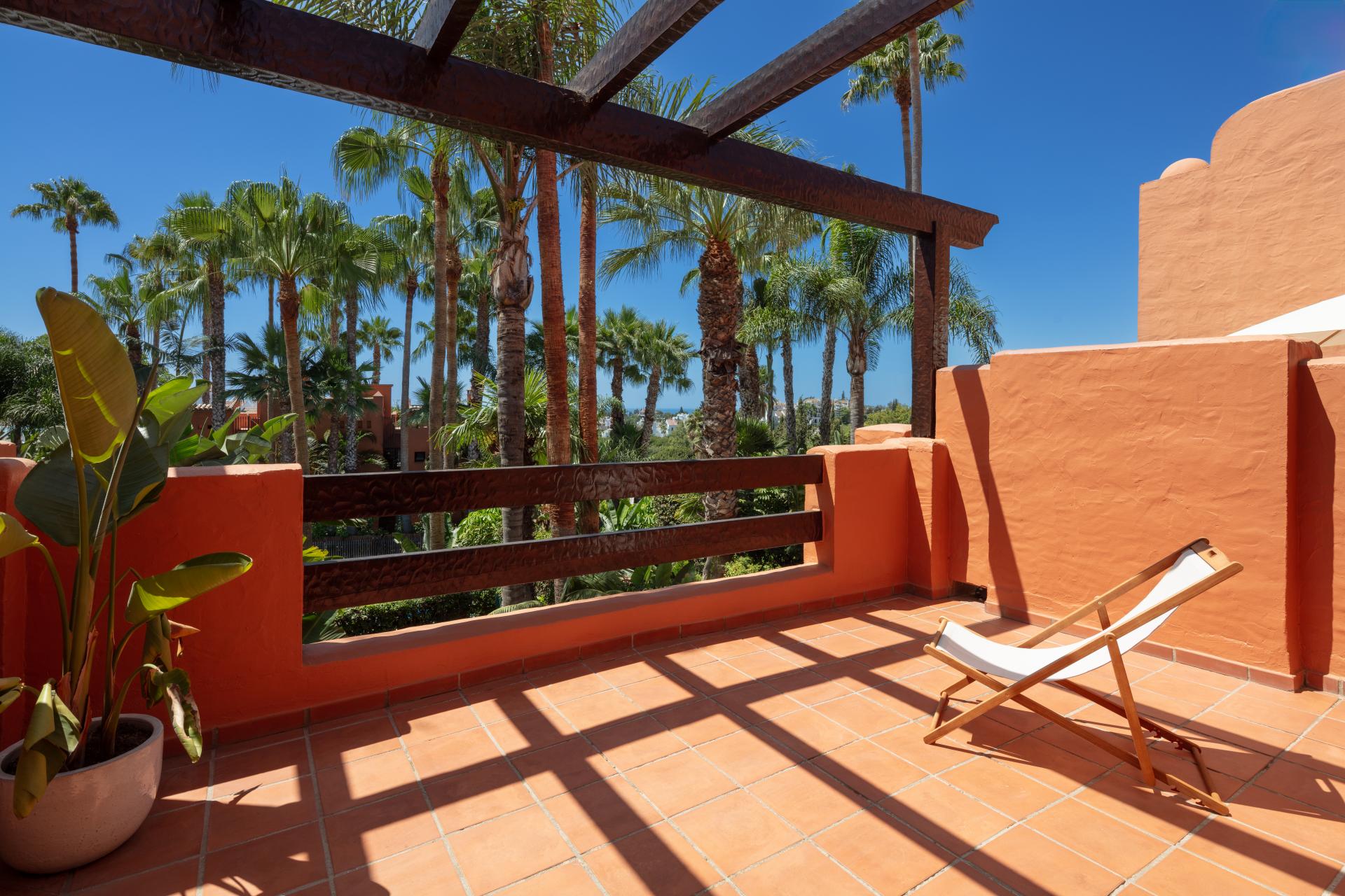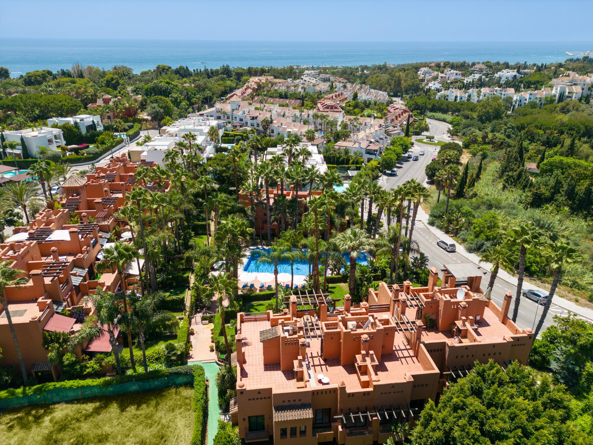 This exquisite townhouse enjoys a prestigious location in the esteemed Altos de Puente Romano on Marbella's Golden Mile. With an abundance of outdoor space, including private terraces for alfresco dining and relaxation, this property is perfect for entertaining guests.