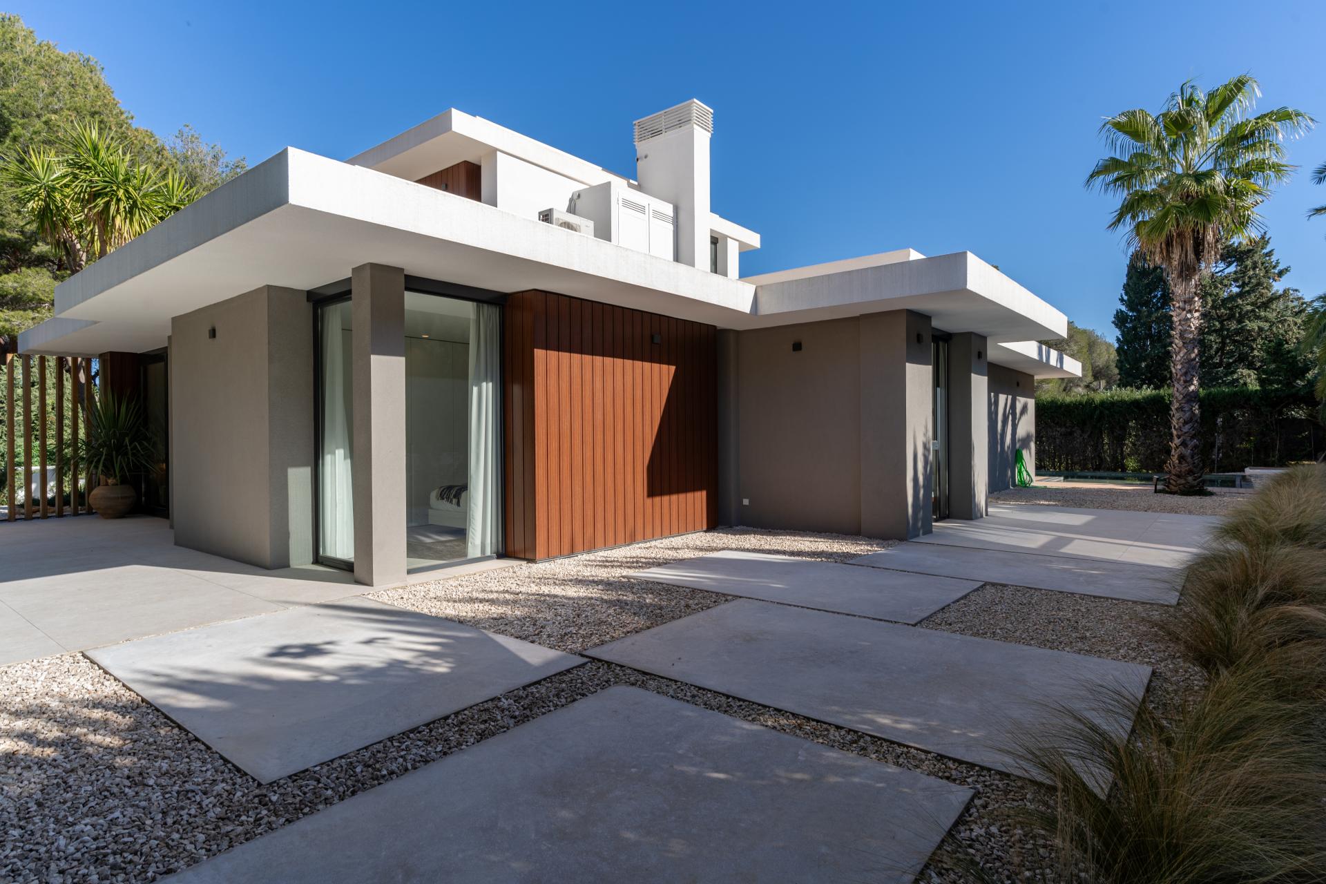 PROPERTY DETAILS Architectural Excellence & Seamless Integration Built in 2023, this brand-new villa sits on a completely flat 980 m² plot, featuring a 249 m² built area and comes with a ten-year warranty, ensuring complete peace of mind for future owners. The architecture is defined by clean geometric lines, a sophisticated fusion of white and grey finishes, and warm wood accents, exuding modern elegance.