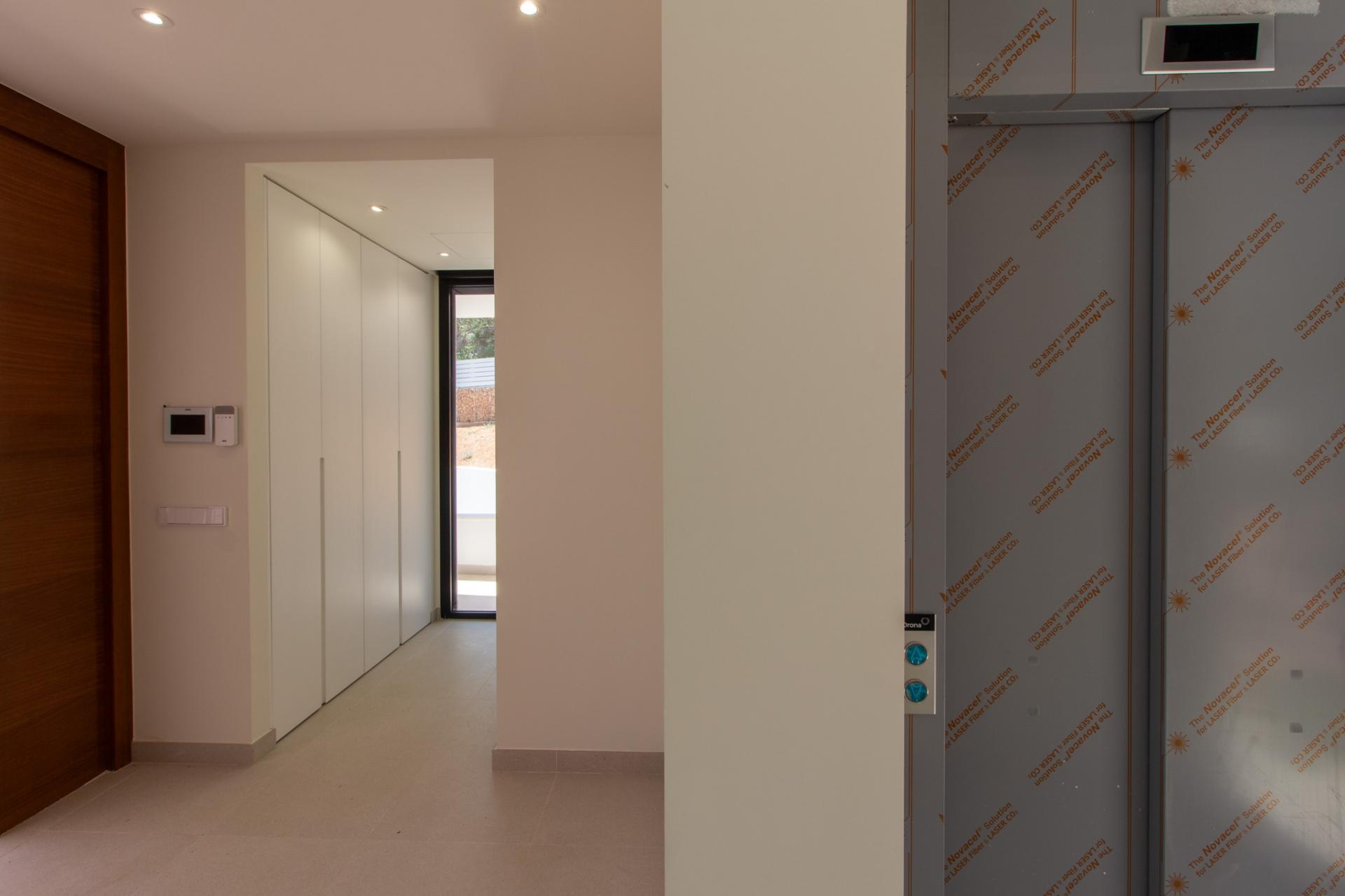 Luxury Amenities Built with premium materials and forward-thinking technology, the villa offers all the essentials for high-end modern living. Underfloor heating and air conditioning throughout ensure year-round comfort, while home automation, electric shutters, armoured entrance door, and an alarm system provide peace of mind. The private lift accommodates up to six people and links every floor from the garage to the sleeping quarters. The A+ energy rating and double-glazed windows reflect the villa’s sustainability credentials. In the basement, the drive-in garage provides secure parking for two or more vehicles, alongside a fully equipped utility room, machine room, storage, and an additional bathroom with shower.