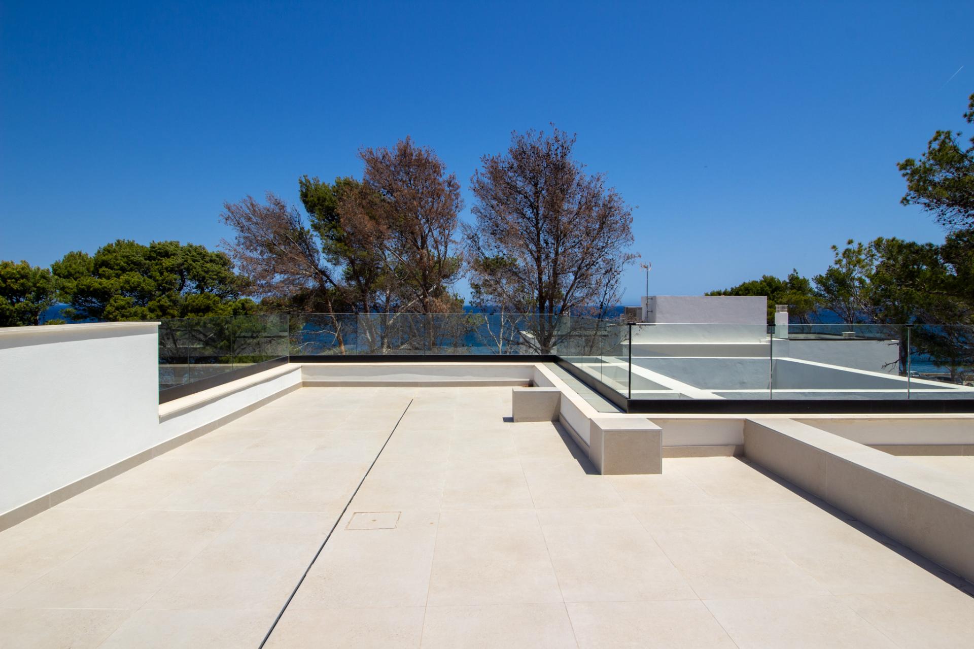 Outdoor Living A hallmark of this property is its seamless indoor-outdoor integration. Terraces open directly from the main living area and bedrooms, inviting alfresco dining, lounging, and poolside entertaining. The 41m² swimming pool with wide steps adds elegance and practicality, while the garden offers flexibility for a summer kitchen with bar, BBQ area, or children’s play zone. Low-maintenance landscaping with automatic irrigation complements the home’s ease of living. The roof terrace offers yet another opportunity for outdoor enjoyment — a future chillout zone with space for a jacuzzi, bar, and summer lounge, all against the backdrop of the Mediterranean Sea.