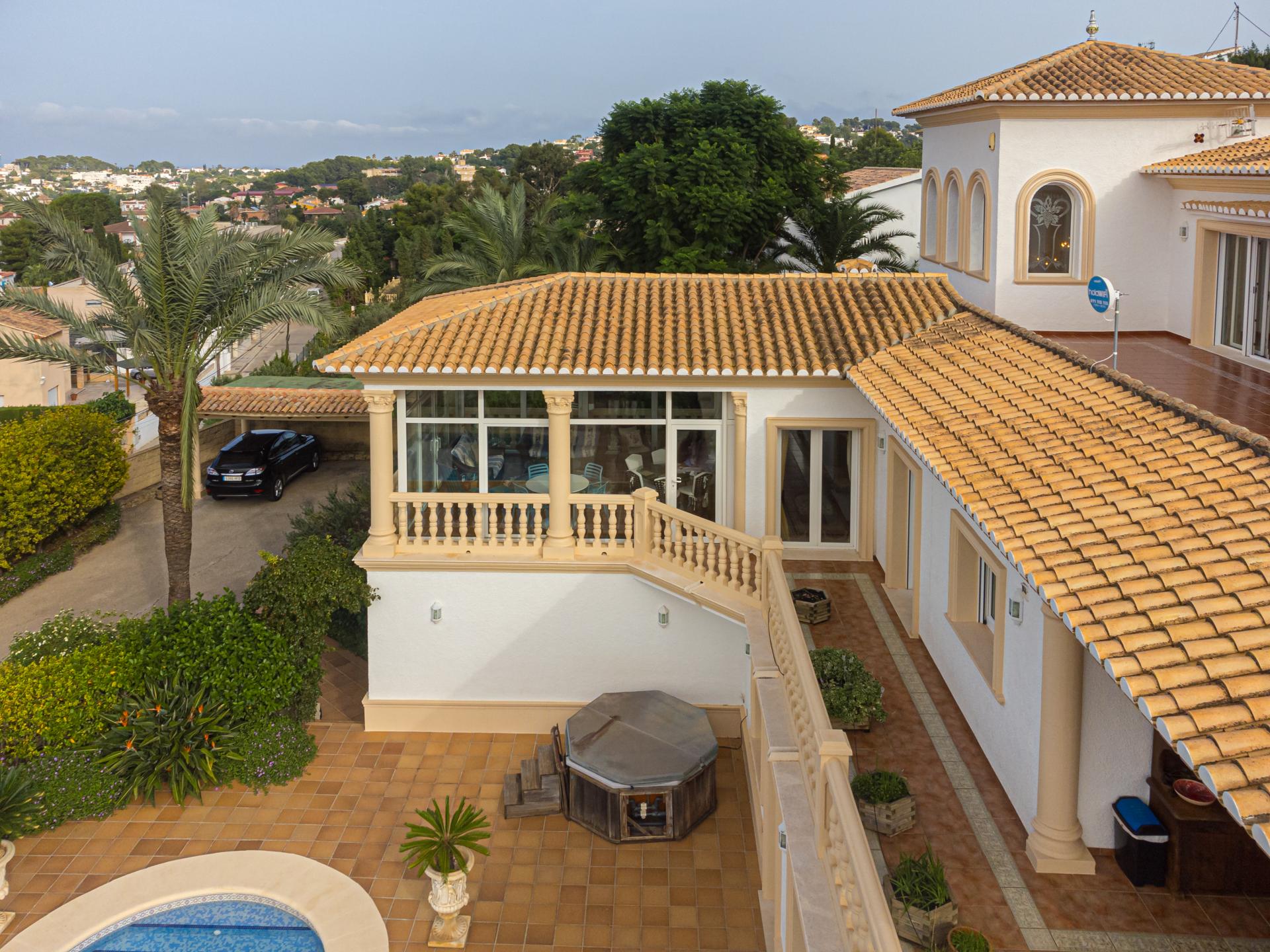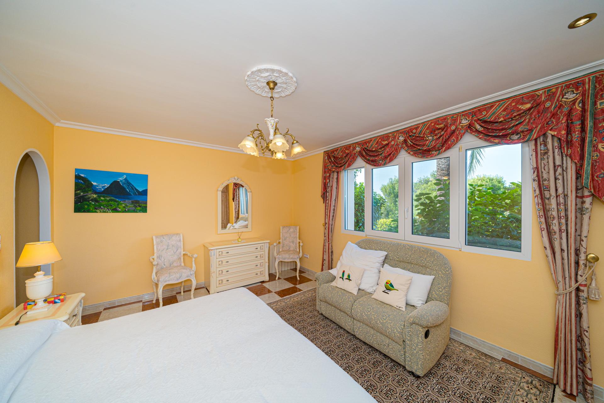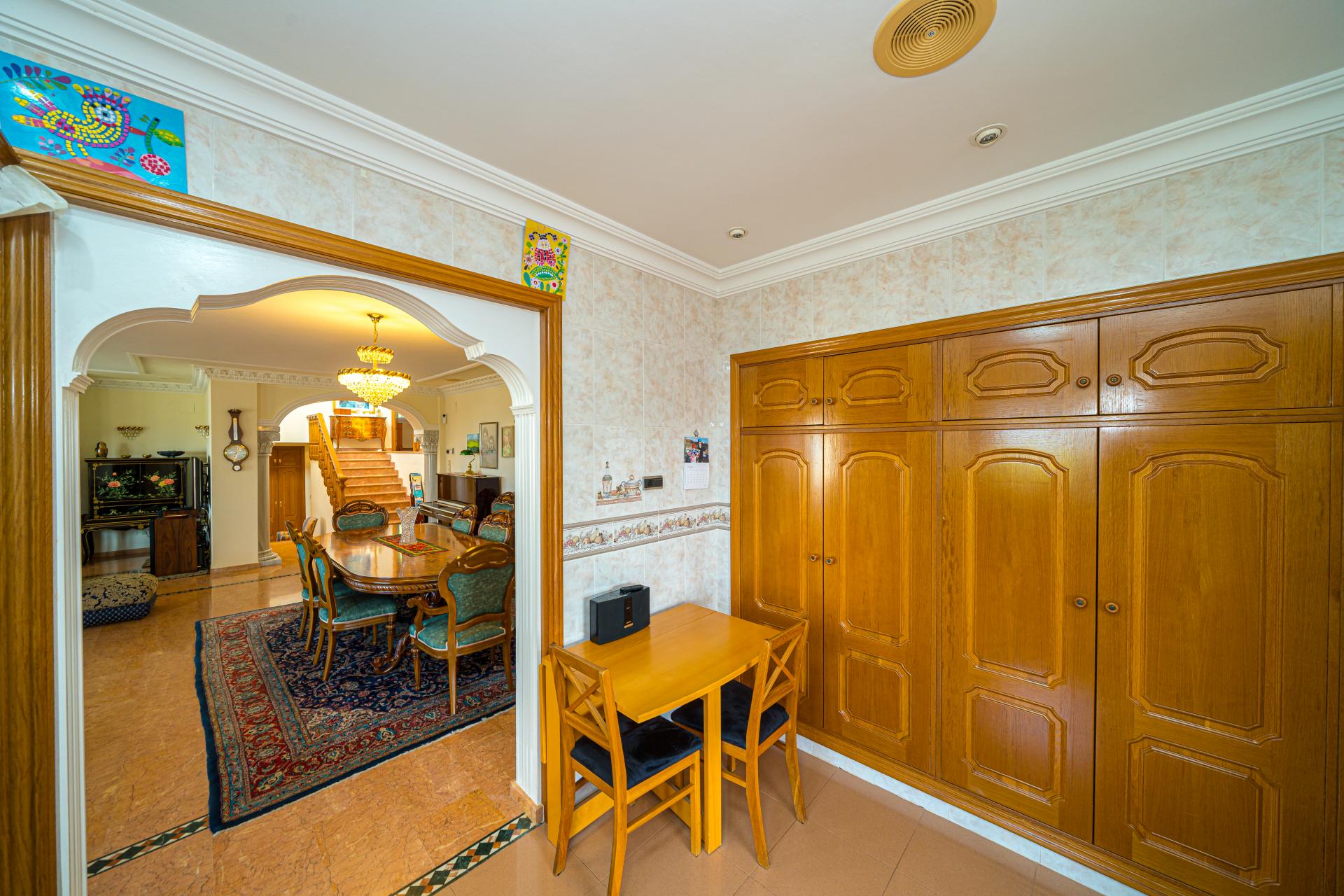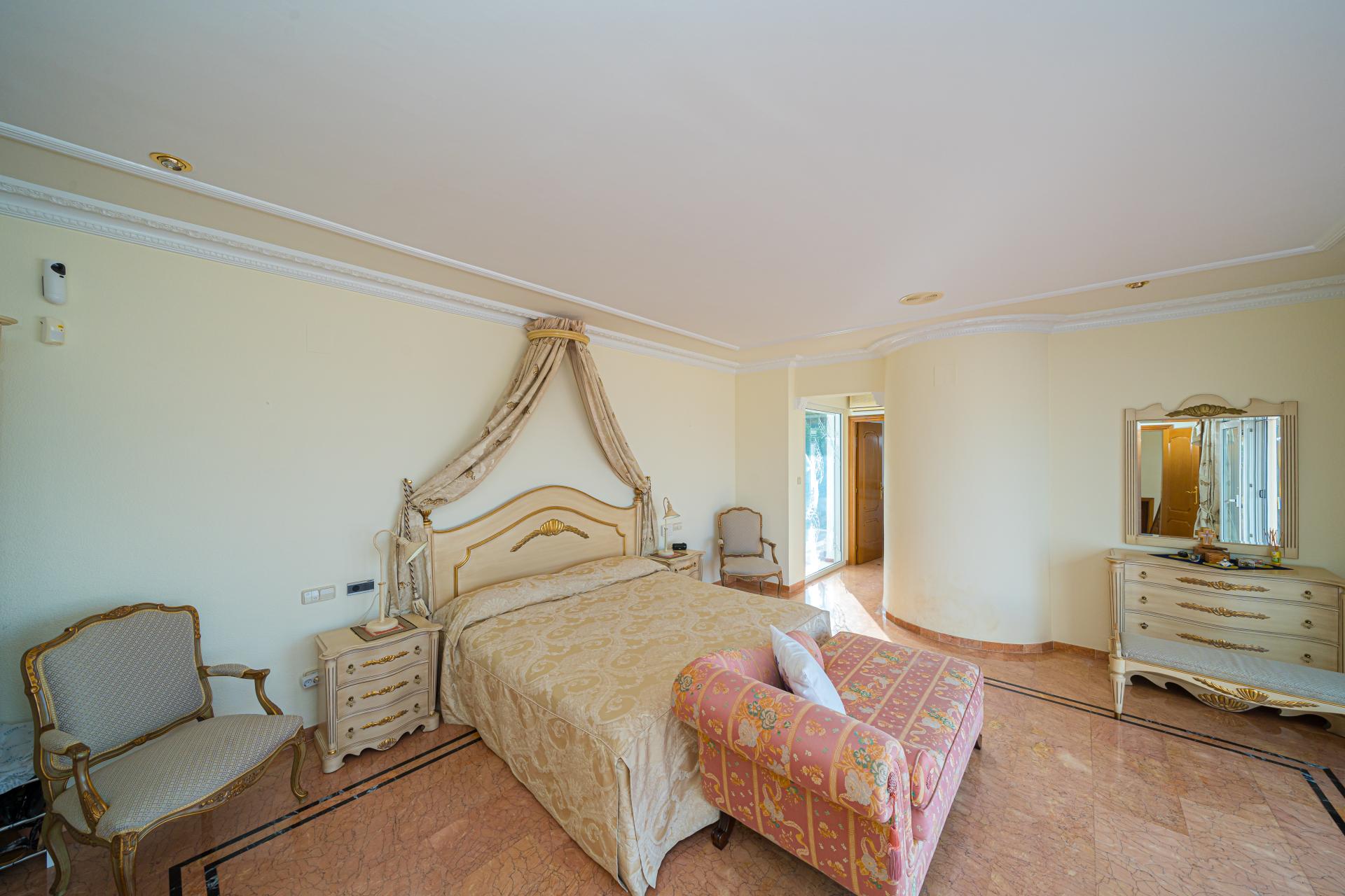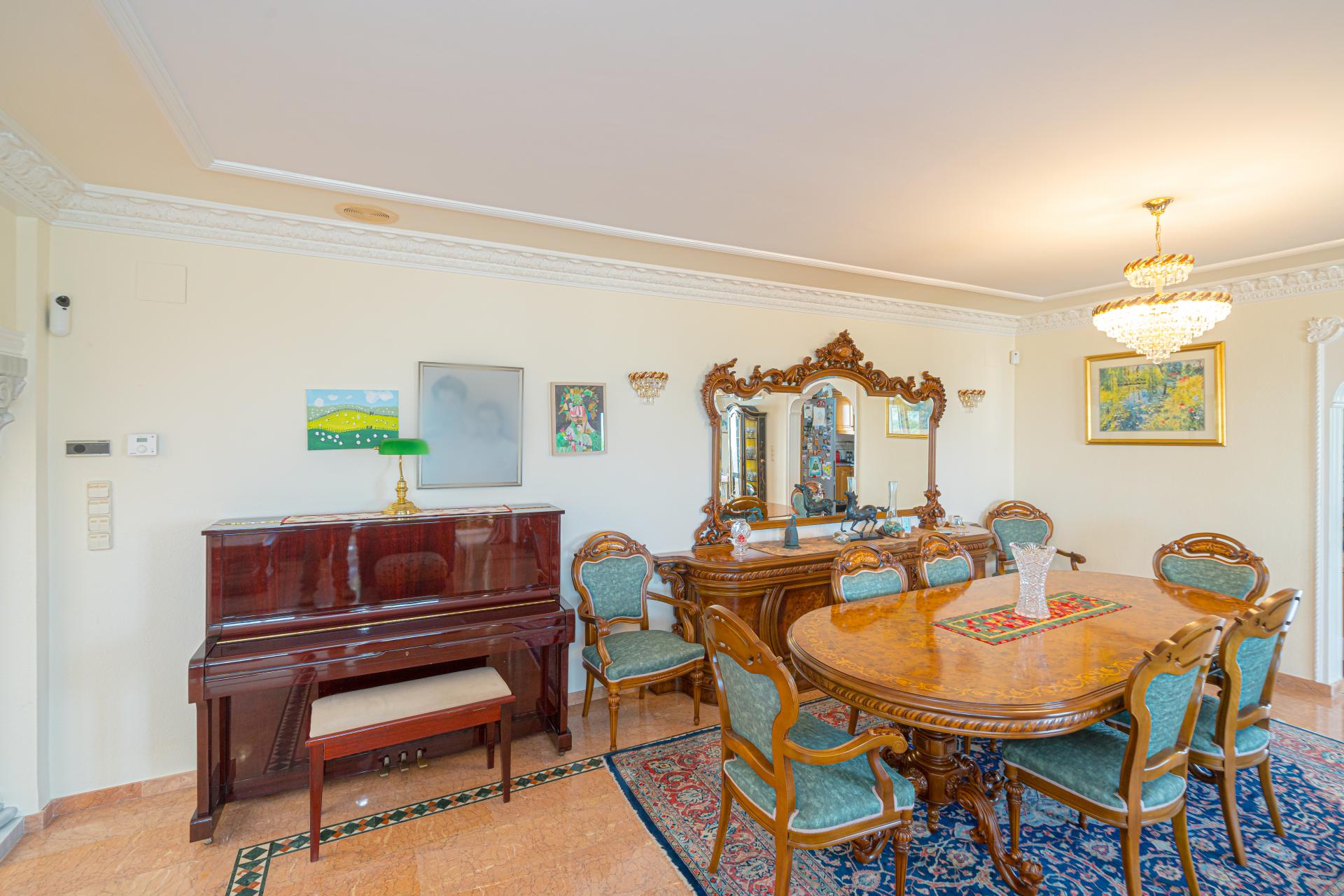 Access to the property is through wonderful double oak entrance doors that lead into an impressive reception hall with a double height atrium and the marble staircase with hand carved oak balustrades, an impressive and welcoming area, with steps that lead up to the main living area with imported pale grey Marble column features as you walk into the exceptionally spacious open plan area with a formal lounge with a marble fireplace and open fire for cosy winter evenings, a formal dining area, an a recess area used as an office where you can work whilst enjoying the sea views, the lounge opens onto a wonderful glazed lounge perfect when entertaining and hosting parties, an area that was once completely open and perhaps the new owners may decide to replace with bi-folding glass doors, a door from this area leads to a balcony terrace and around to the summer kitchen area, so again when entertaining you have a flow from inside to outside, the kitchen area is accessed from the dining area and has a large built in pantry and casual breakfasting area, fully fitted and with sea views, a patio door leads to the summer kitchen and covered summer dining area with open views down to the pool and across to the sea and Denia castle, the new owner may want to merge these two areas into one huge kitchen and casual dining/relax area with bi-folding glass doors. There is also a guest toilet in the entrance hallway and a cloakroom cupboard.