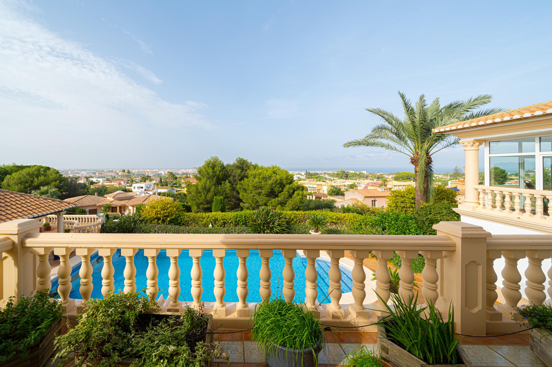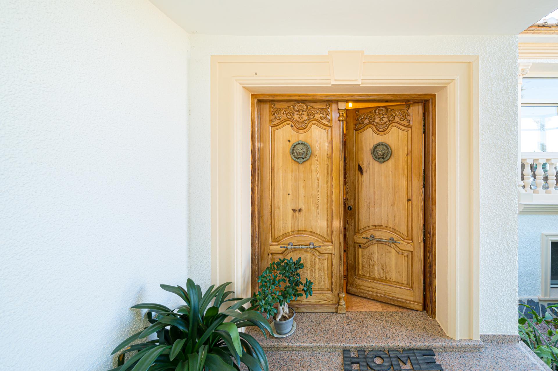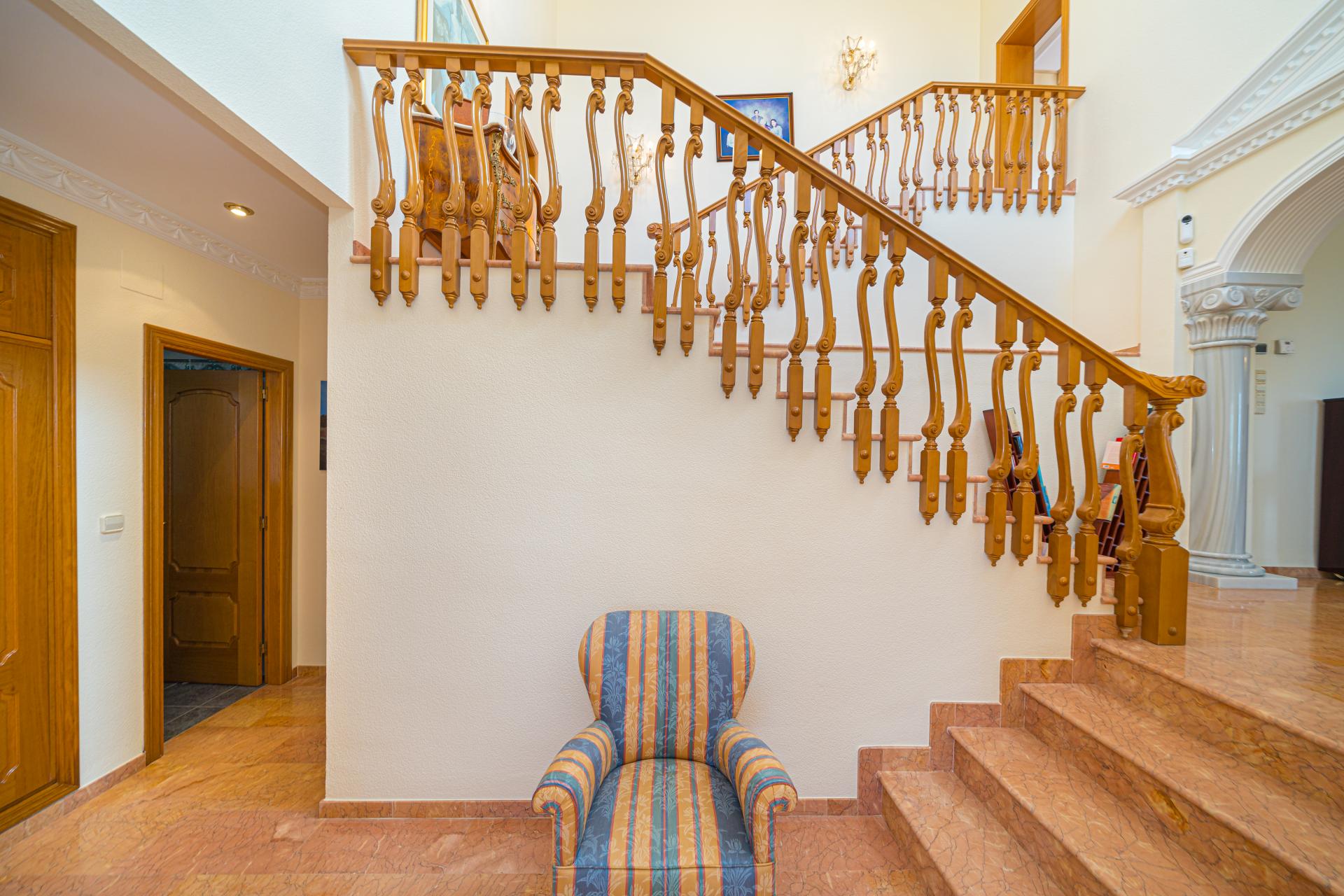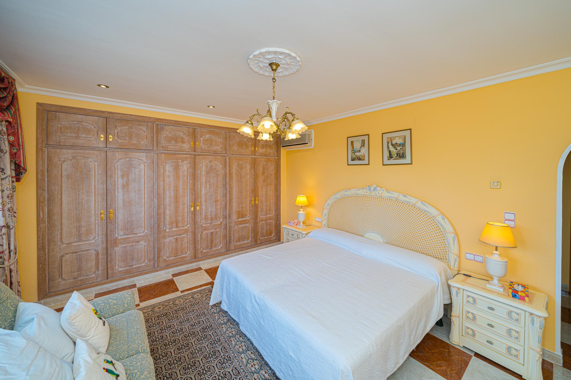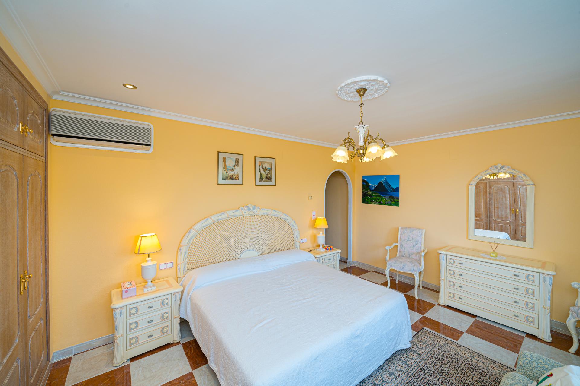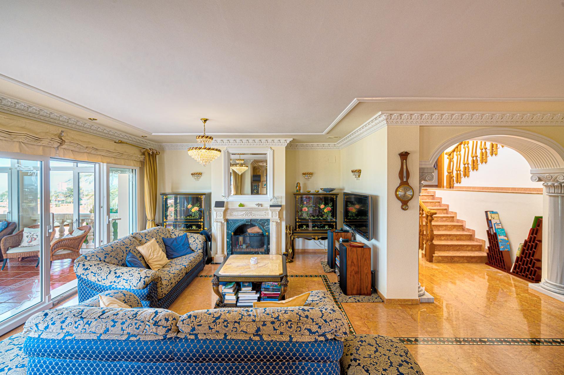 Access to the property is through wonderful double oak entrance doors that lead into an impressive reception hall with a double height atrium and the marble staircase with hand carved oak balustrades, an impressive and welcoming area, with steps that lead up to the main living area with imported pale grey Marble column features as you walk into the exceptionally spacious open plan area with a formal lounge with a marble fireplace and open fire for cosy winter evenings, a formal dining area, an a recess area used as an office where you can work whilst enjoying the sea views, the lounge opens onto a wonderful glazed lounge perfect when entertaining and hosting parties, an area that was once completely open and perhaps the new owners may decide to replace with bi-folding glass doors, a door from this area leads to a balcony terrace and around to the summer kitchen area, so again when entertaining you have a flow from inside to outside, the kitchen area is accessed from the dining area and has a large built in pantry and casual breakfasting area, fully fitted and with sea views, a patio door leads to the summer kitchen and covered summer dining area with open views down to the pool and across to the sea and Denia castle, the new owner may want to merge these two areas into one huge kitchen and casual dining/relax area with bi-folding glass doors. There is also a guest toilet in the entrance hallway and a cloakroom cupboard.