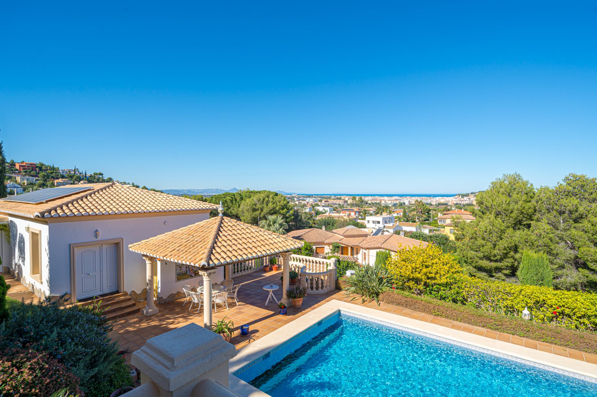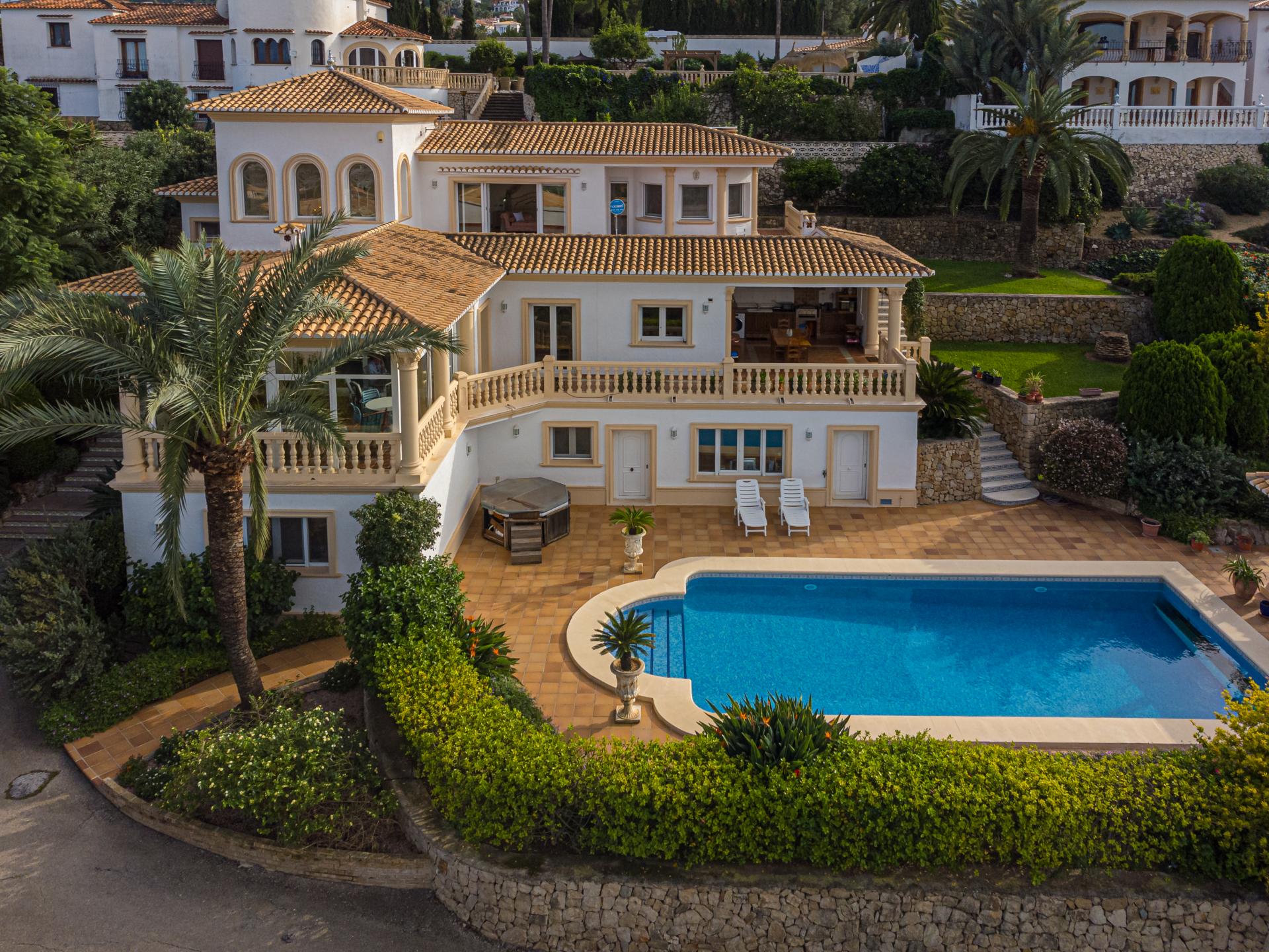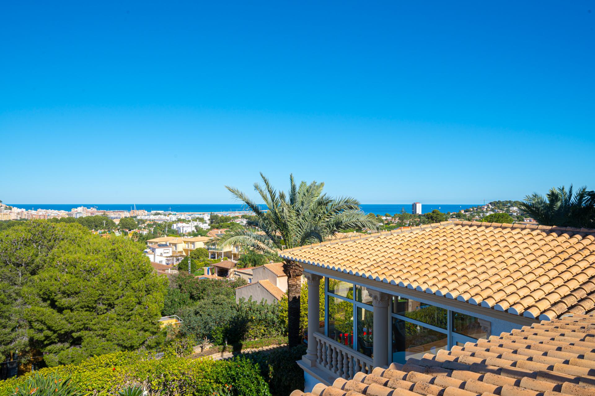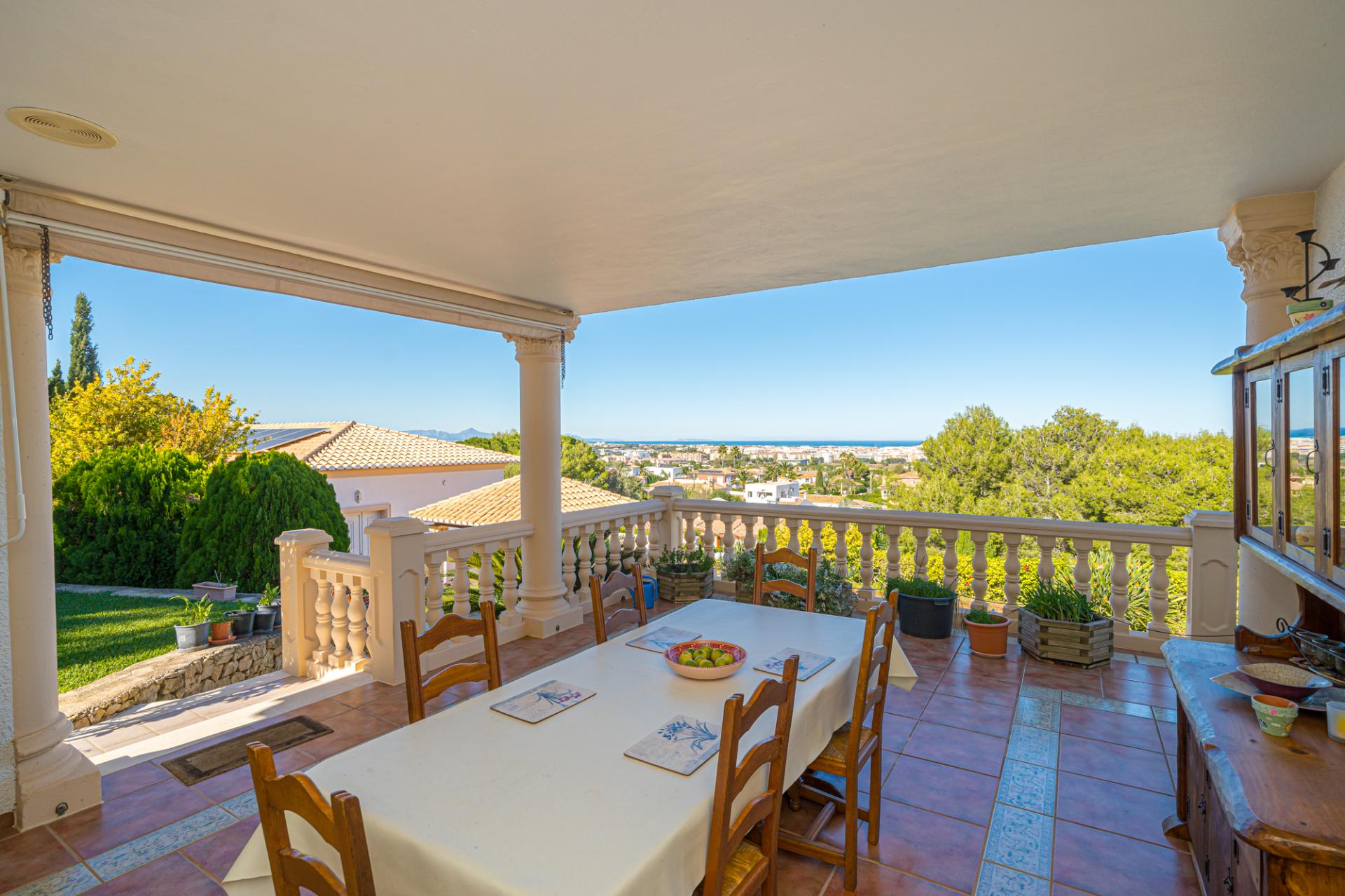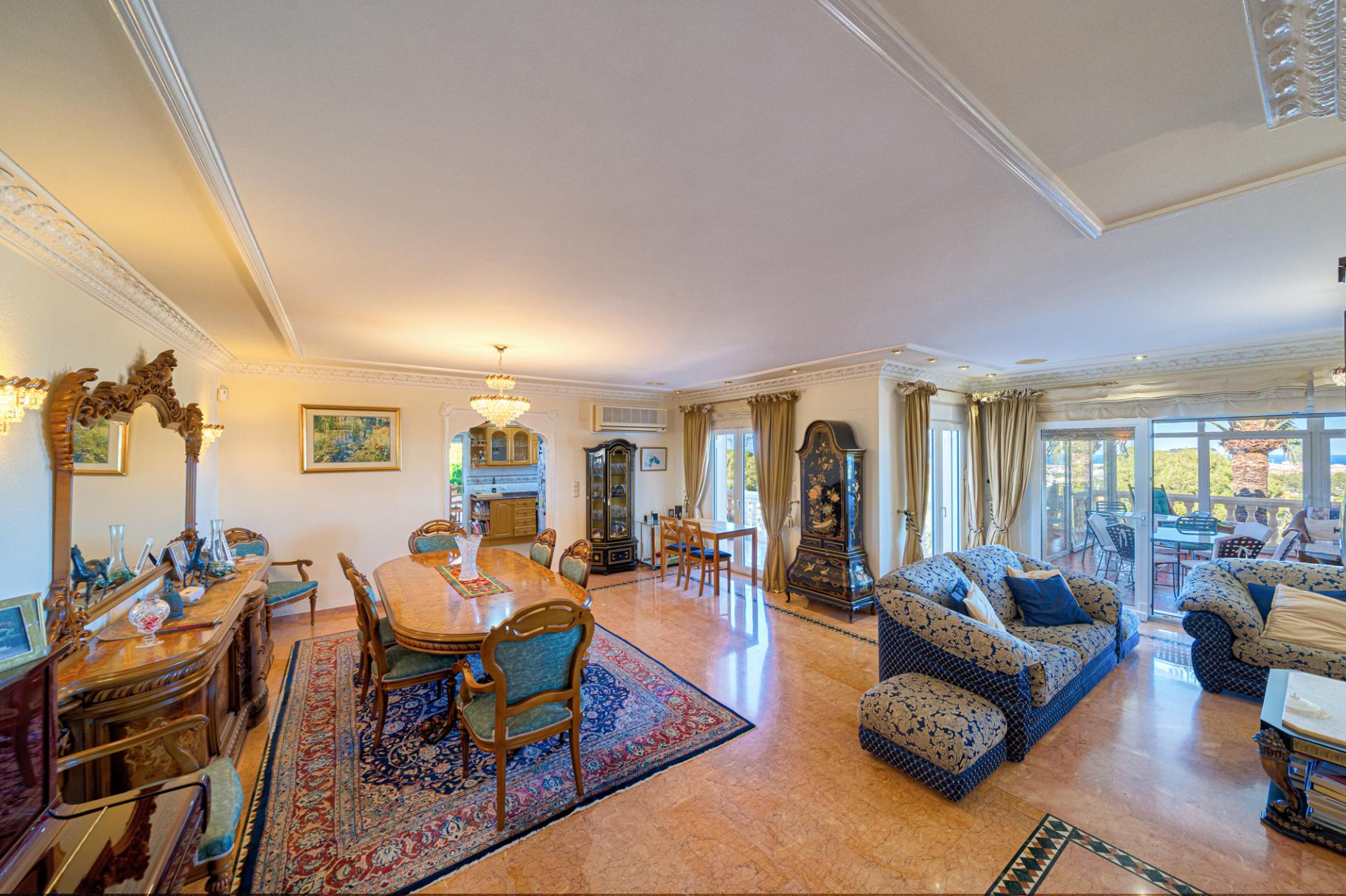 Access to the property is through wonderful double oak entrance doors that lead into an impressive reception hall with a double height atrium and the marble staircase with hand carved oak balustrades, an impressive and welcoming area, with steps that lead up to the main living area with imported pale grey Marble column features as you walk into the exceptionally spacious open plan area with a formal lounge with a marble fireplace and open fire for cosy winter evenings, a formal dining area, an a recess area used as an office where you can work whilst enjoying the sea views, the lounge opens onto a wonderful glazed lounge perfect when entertaining and hosting parties, an area that was once completely open and perhaps the new owners may decide to replace with bi-folding glass doors, a door from this area leads to a balcony terrace and around to the summer kitchen area, so again when entertaining you have a flow from inside to outside, the kitchen area is accessed from the dining area and has a large built in pantry and casual breakfasting area, fully fitted and with sea views, a patio door leads to the summer kitchen and covered summer dining area with open views down to the pool and across to the sea and Denia castle, the new owner may want to merge these two areas into one huge kitchen and casual dining/relax area with bi-folding glass doors. There is also a guest toilet in the entrance hallway and a cloakroom cupboard.