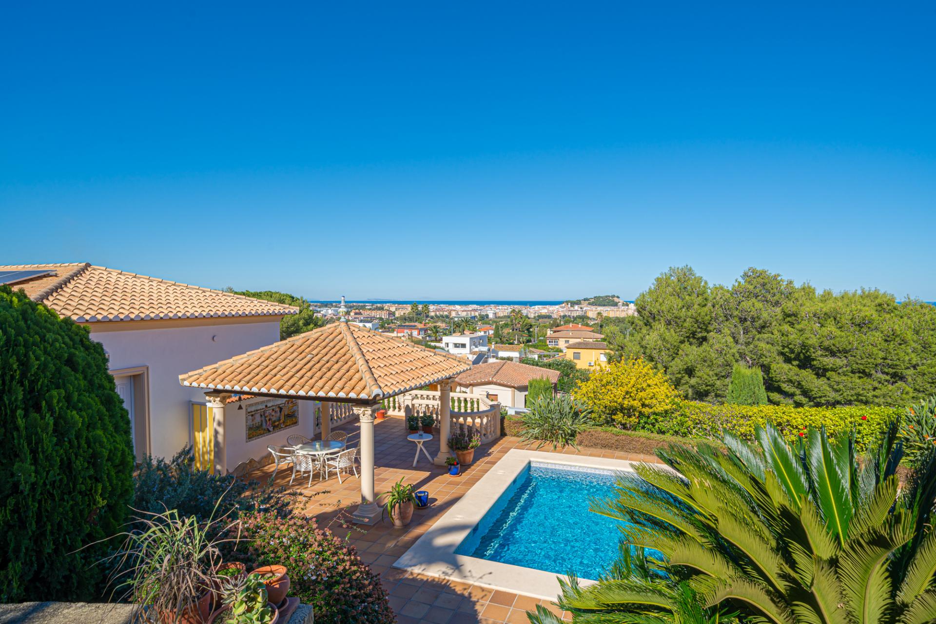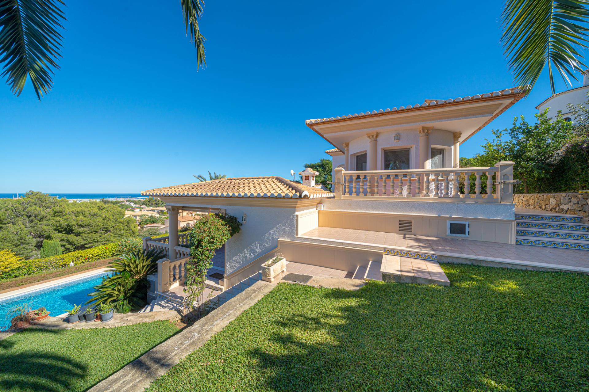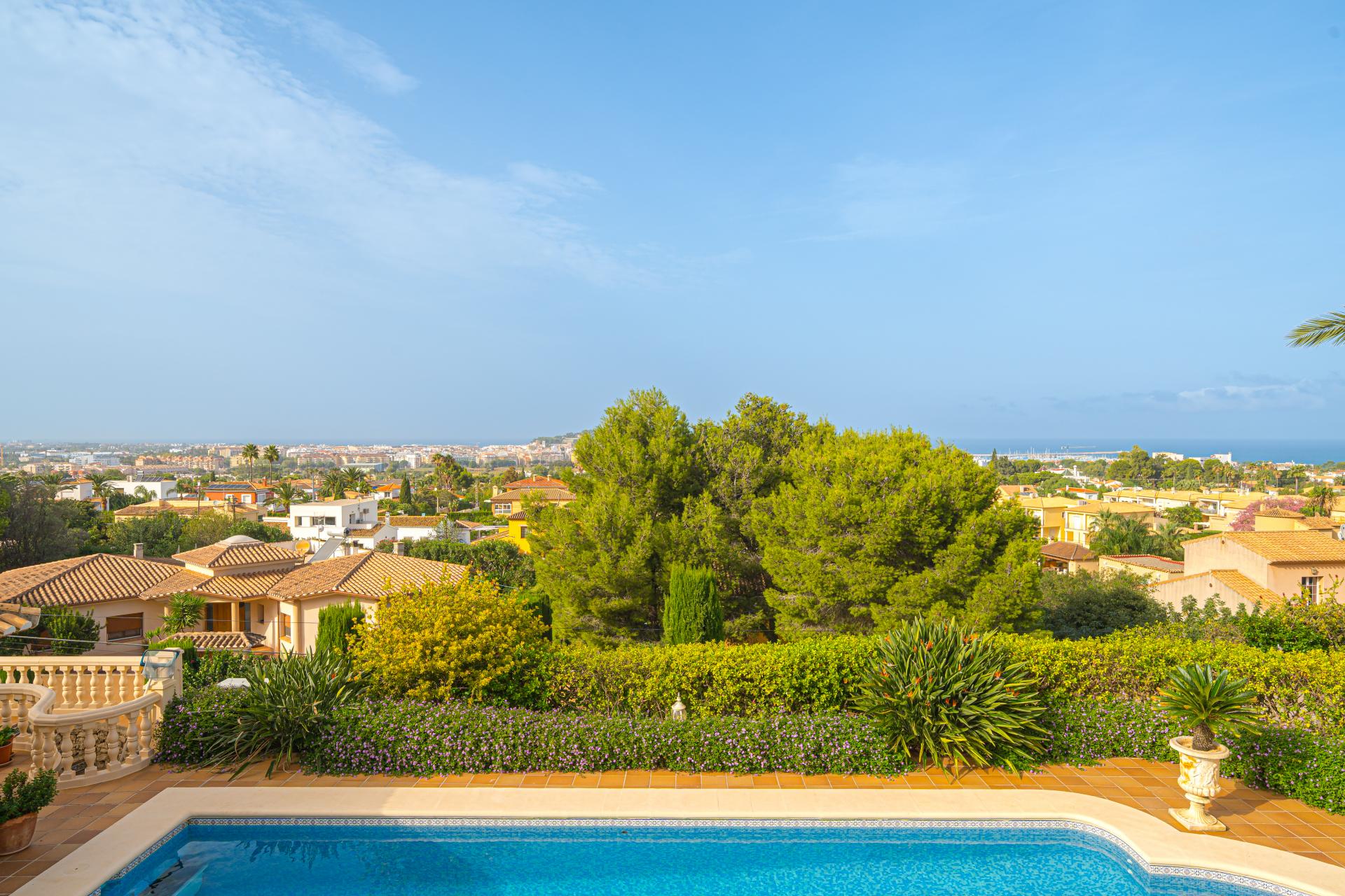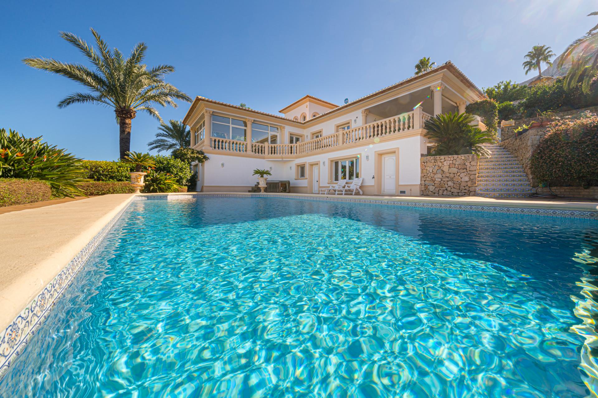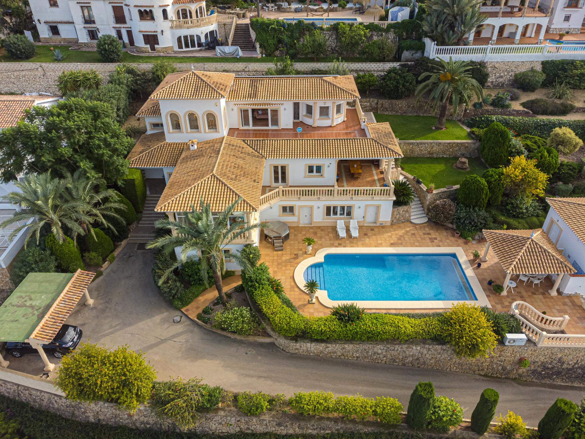 Access to the property is through wonderful double oak entrance doors that lead into an impressive reception hall with a double height atrium and the marble staircase with hand carved oak balustrades, an impressive and welcoming area, with steps that lead up to the main living area with imported pale grey Marble column features as you walk into the exceptionally spacious open plan area with a formal lounge with a marble fireplace and open fire for cosy winter evenings, a formal dining area, an a recess area used as an office where you can work whilst enjoying the sea views, the lounge opens onto a wonderful glazed lounge perfect when entertaining and hosting parties, an area that was once completely open and perhaps the new owners may decide to replace with bi-folding glass doors, a door from this area leads to a balcony terrace and around to the summer kitchen area, so again when entertaining you have a flow from inside to outside, the kitchen area is accessed from the dining area and has a large built in pantry and casual breakfasting area, fully fitted and with sea views, a patio door leads to the summer kitchen and covered summer dining area with open views down to the pool and across to the sea and Denia castle, the new owner may want to merge these two areas into one huge kitchen and casual dining/relax area with bi-folding glass doors. There is also a guest toilet in the entrance hallway and a cloakroom cupboard.