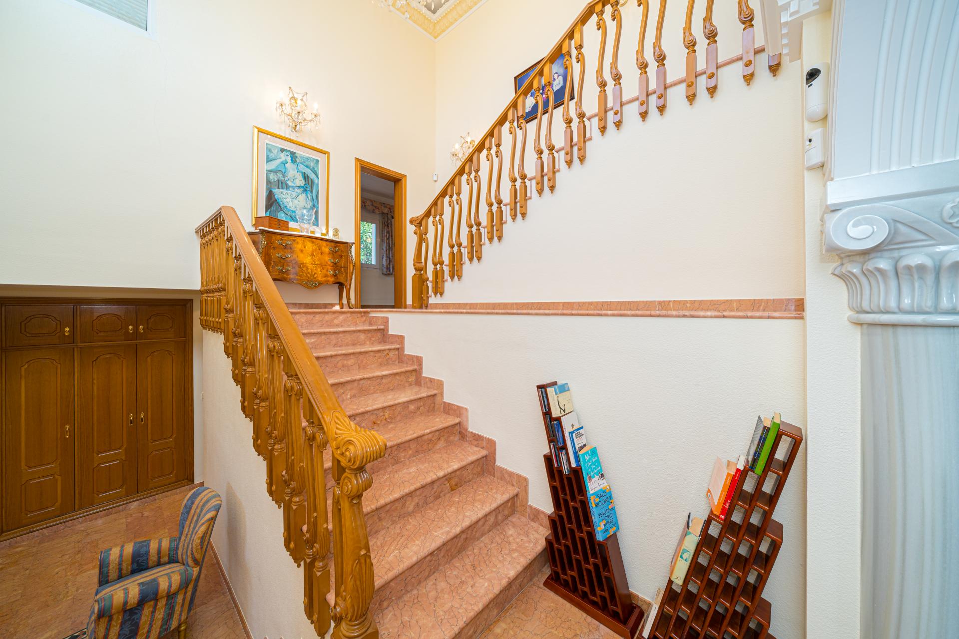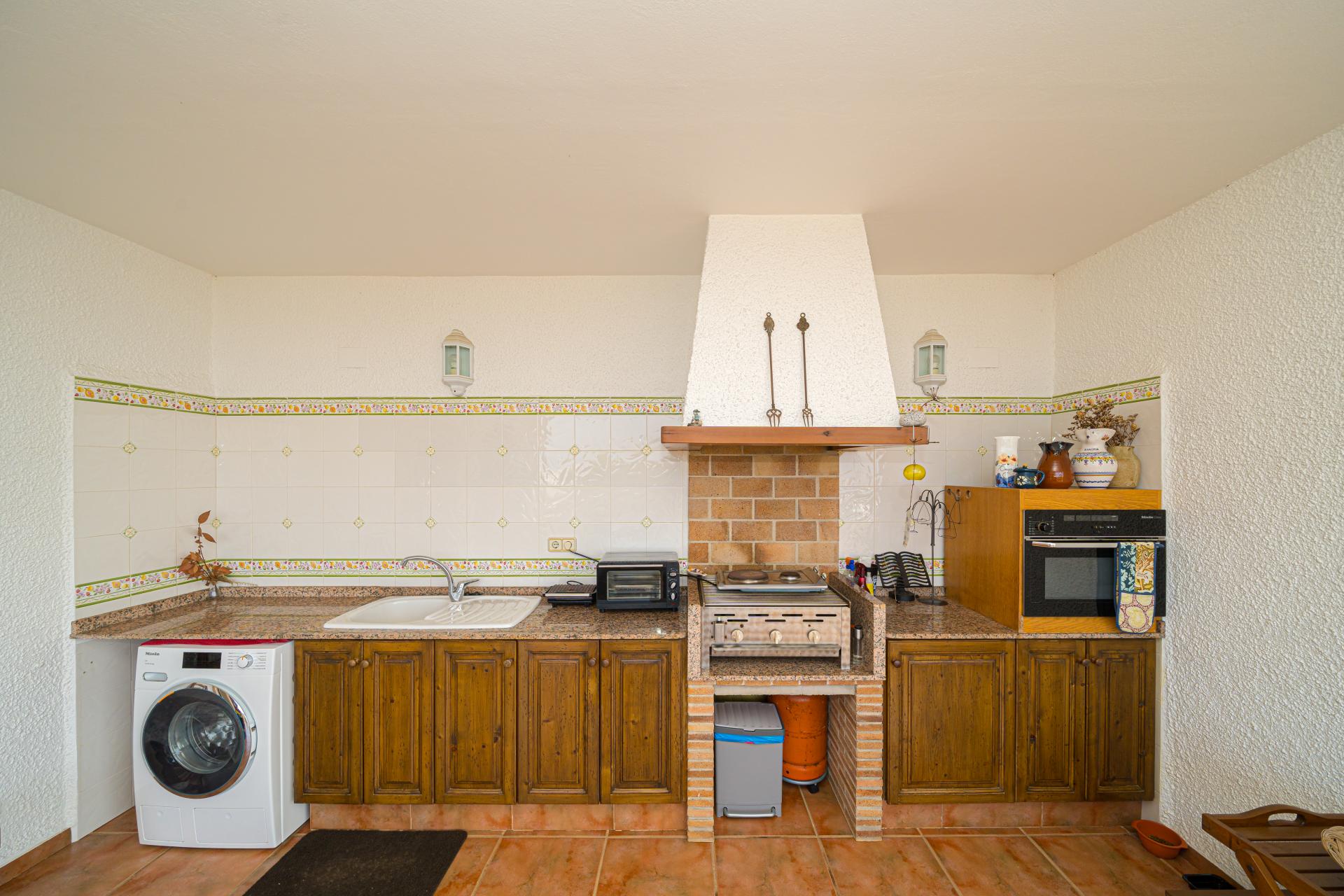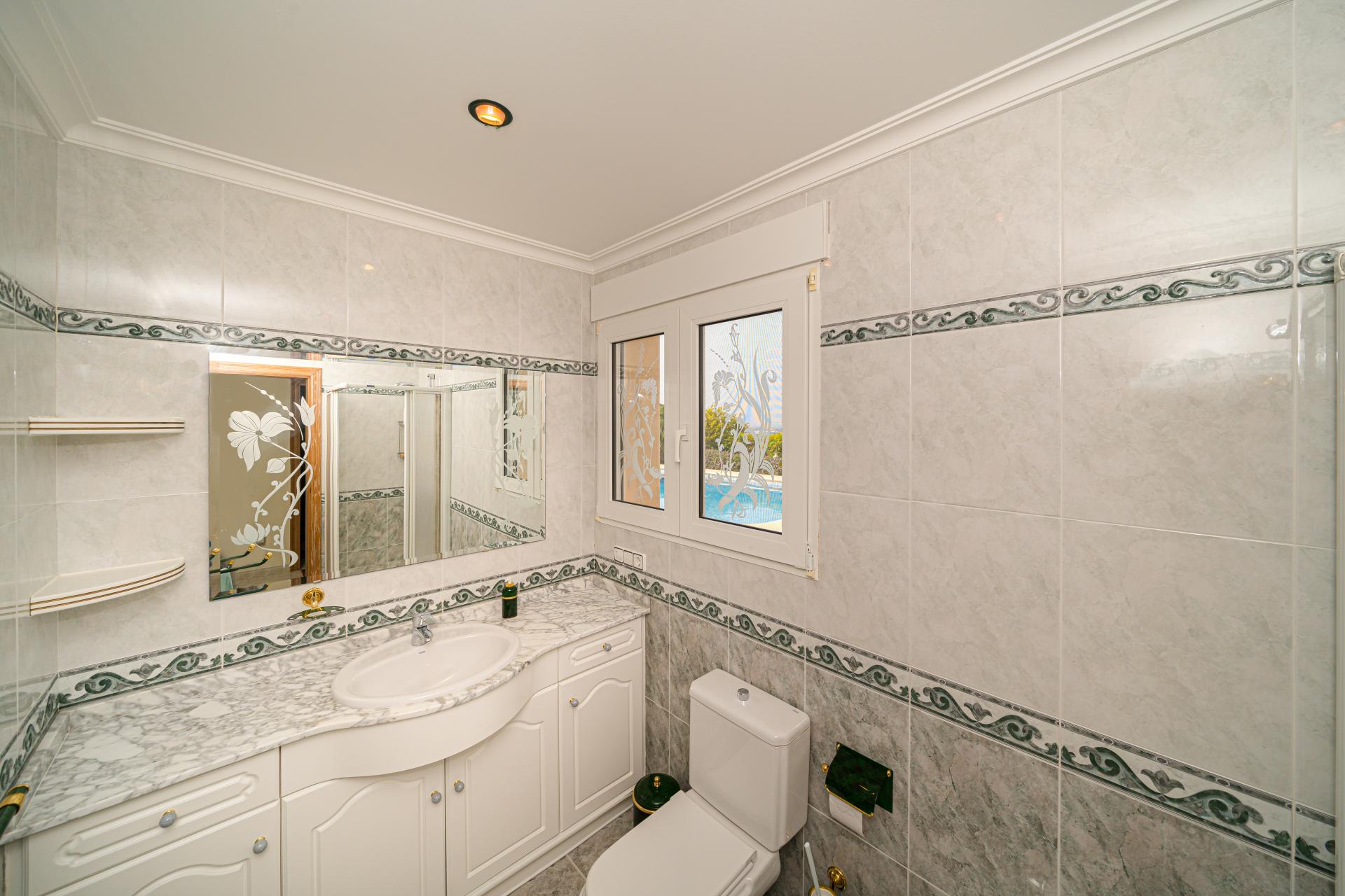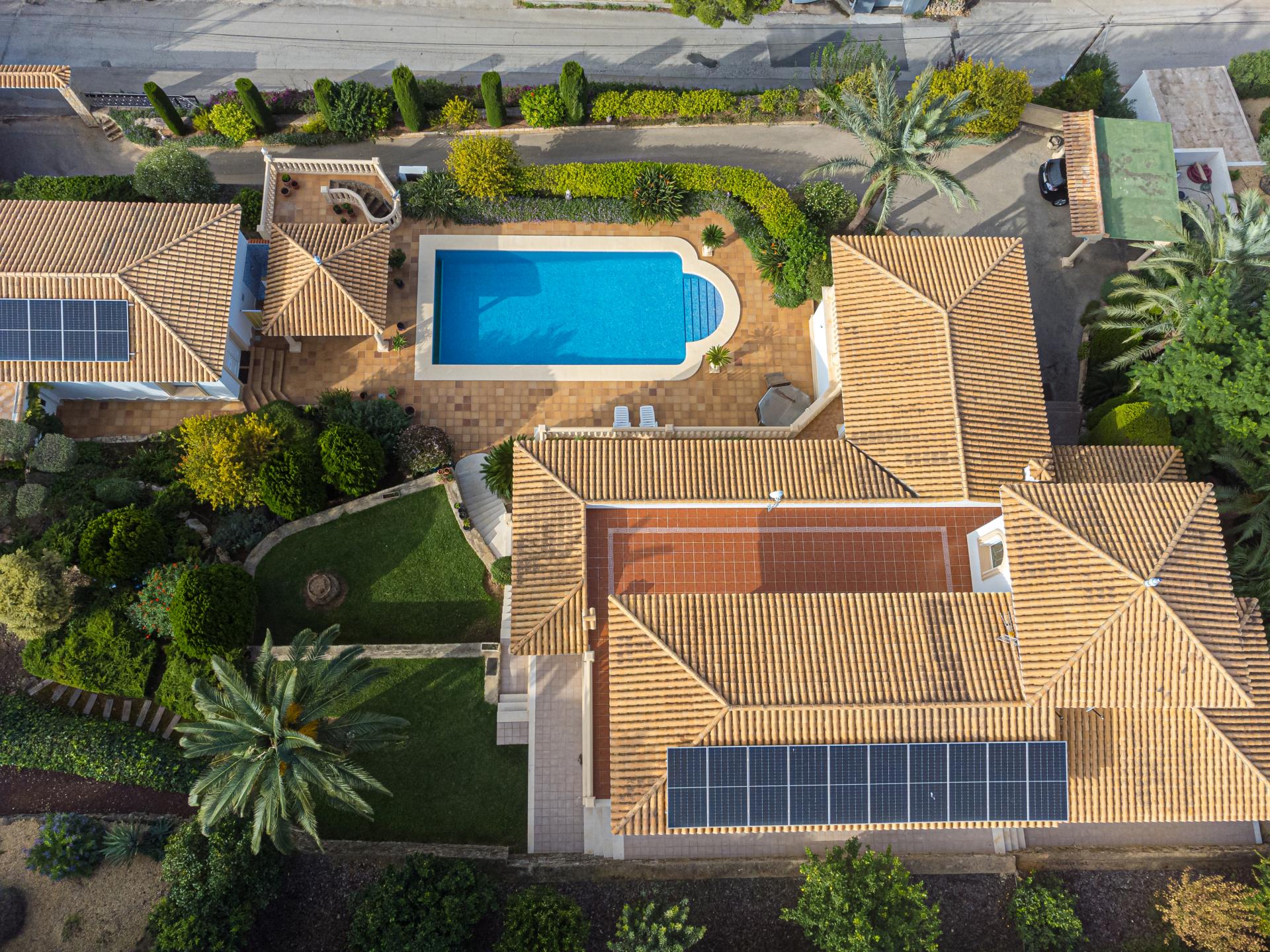 Externally a long drive leads to a double carport, verdant landscaped gardens on different levels that include lawned areas, the large 12m x 6m pool with automatic MKT roller cover and heating, open and shaded terrace areas for sunbathing, alfresco dining and relaxing and to host the most amazing parties, the 100m2 home cinema room which can be a multi-use room depending on the new buyer's lifestyle requirements, a storage room/workshop and the garden has an automatic computer-controlled watering system and a water deposit with approx. 25,000 litres with filter and pump system.