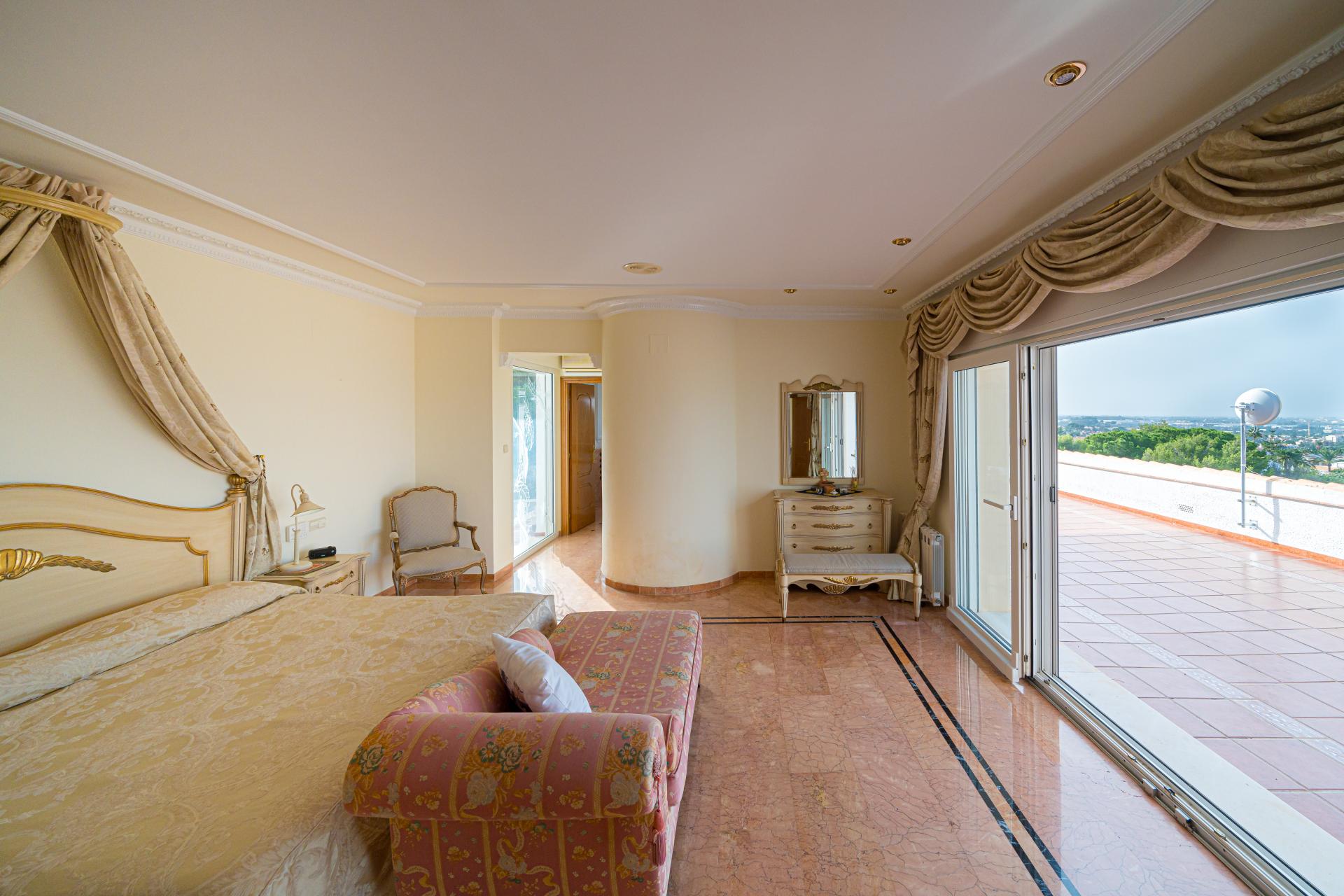The upper level accessed by the marble staircase leads to a double bedroom with ensuite bathroom and to the vast Master bedroom suite with dressing area, a decadent marble ensuite with whirlpool jacuzzi bath and separate walk-in shower, the master bedroom also opens onto a 100m2 private roof terrace from which to enjoy far reaching views along the coastline and to Denia castle.
