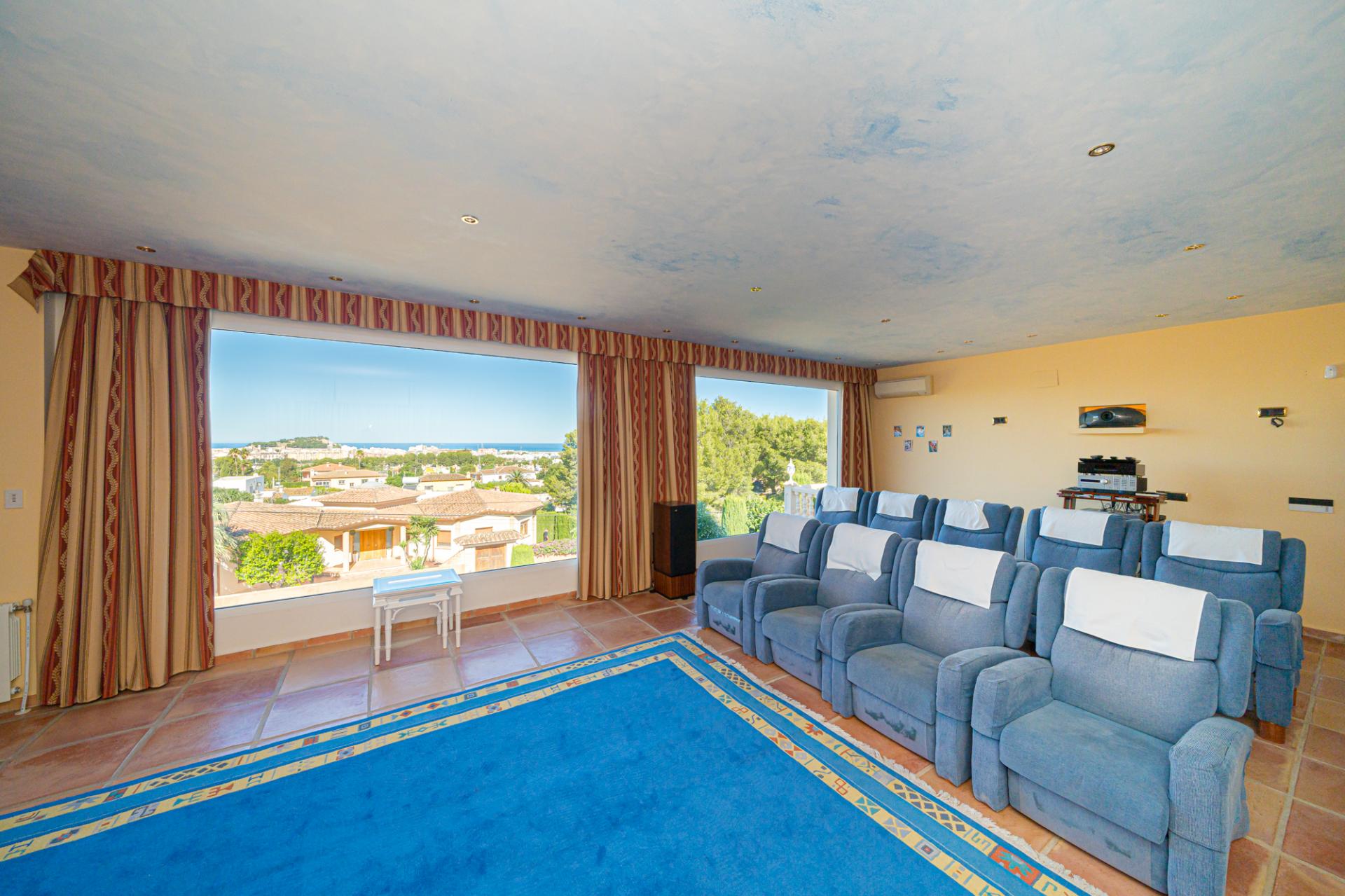 The vast master bedroom suite on the top level has its own 100m2 private sun terrace from which to enjoy the sea and castle views, there is a purpose-built private cinema room from the pool area which can be adapted into a gymnasium, entertainment/games room etc., and the lower level of the property can be closed off as a separate self-contained guest apartment as whilst accessible internally it has its own external entrance.
