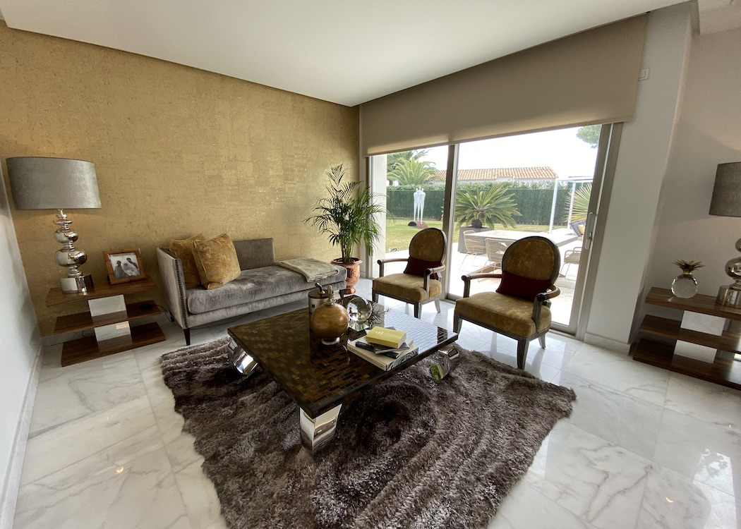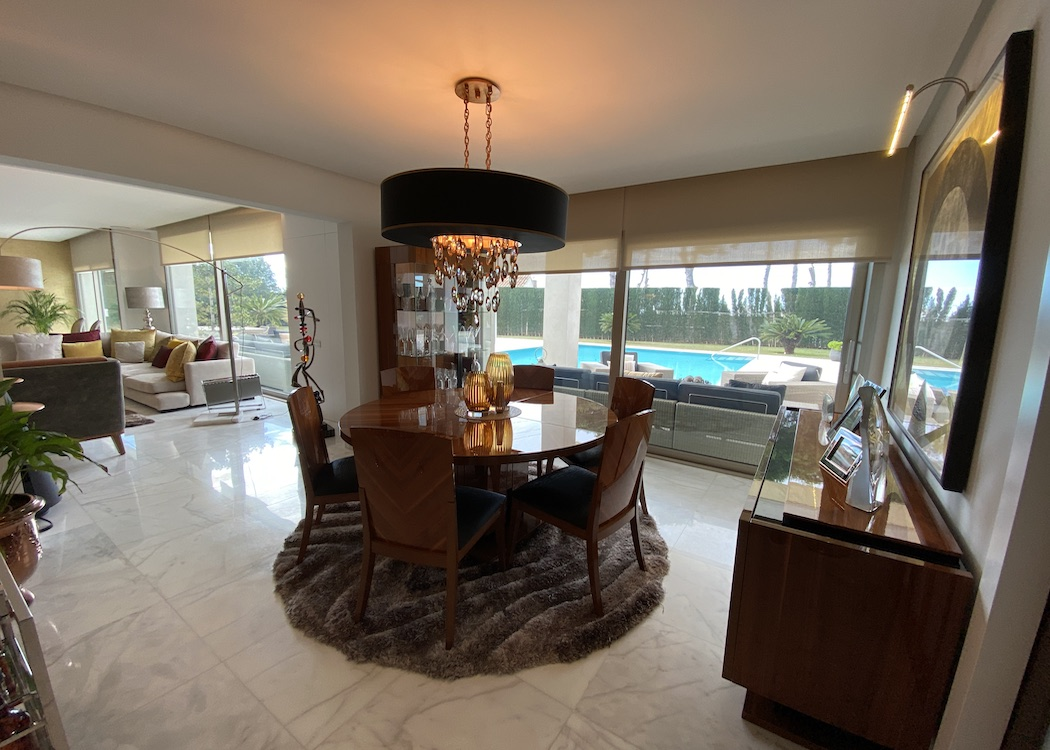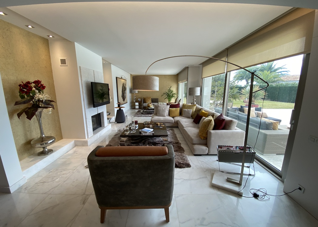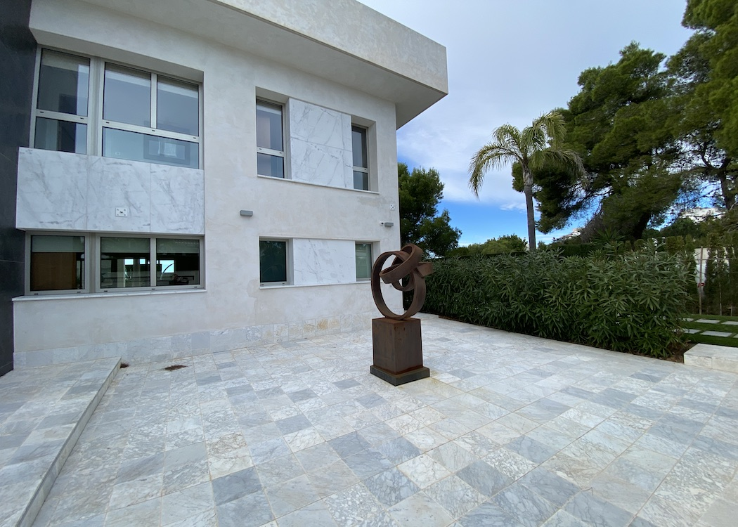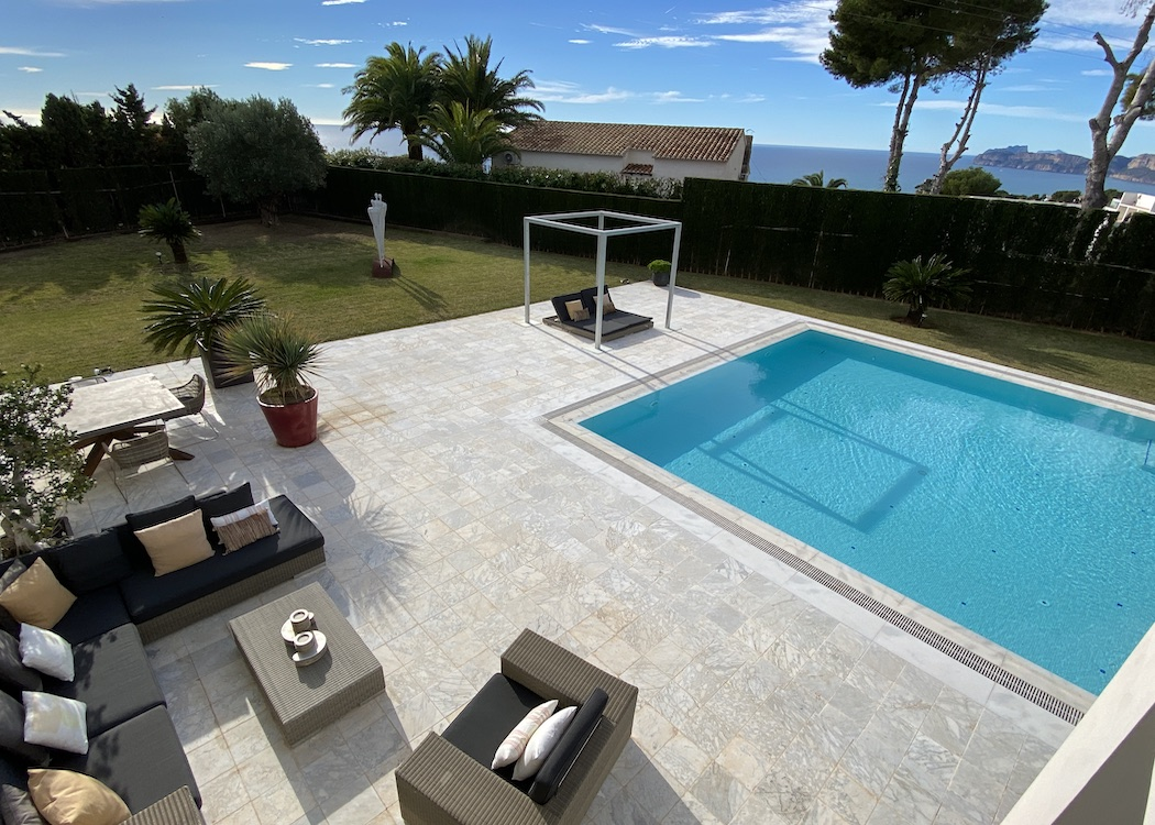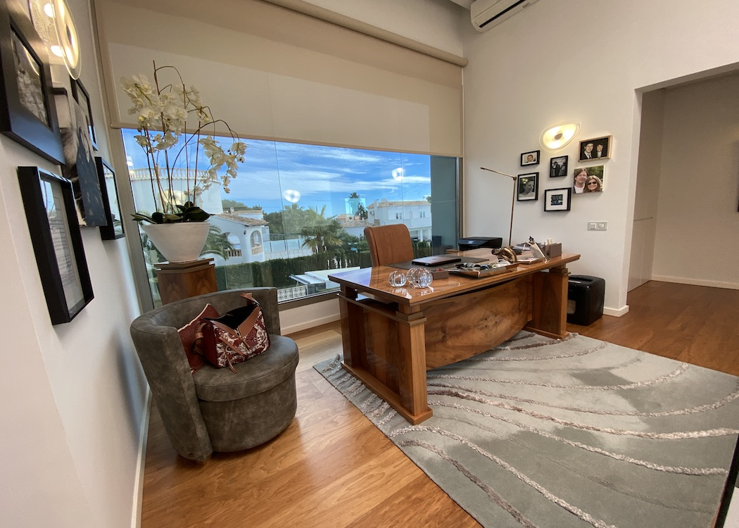 PROPERTY DETAILS The main floor has a large open plan living expanse with designated areas that include a lounge with a feature wall and fireplace, a relax/reading area and a formal dining area with floor to ceiling glass expanses leading out onto the terraces and alfresco entertaining areas which overlook the swimming pool and views over Jávea, a bespoke kitchen, a truly impressive entrance reception with high ceilings and marble staircase, a guest toilet and a large guest bedroom with en-suite. On the first floor there are three additional bedrooms with sea views, seperate terraces, en-suites and walk in wardrobes, the master bedroom suite has wonderful sea views looking across the Mediterianian sea towards Calpe rock and has a lounge area to relax and enjoy the views.