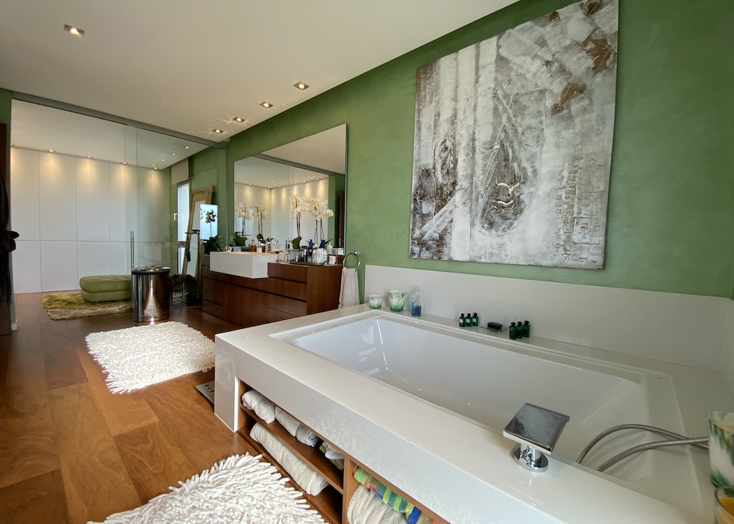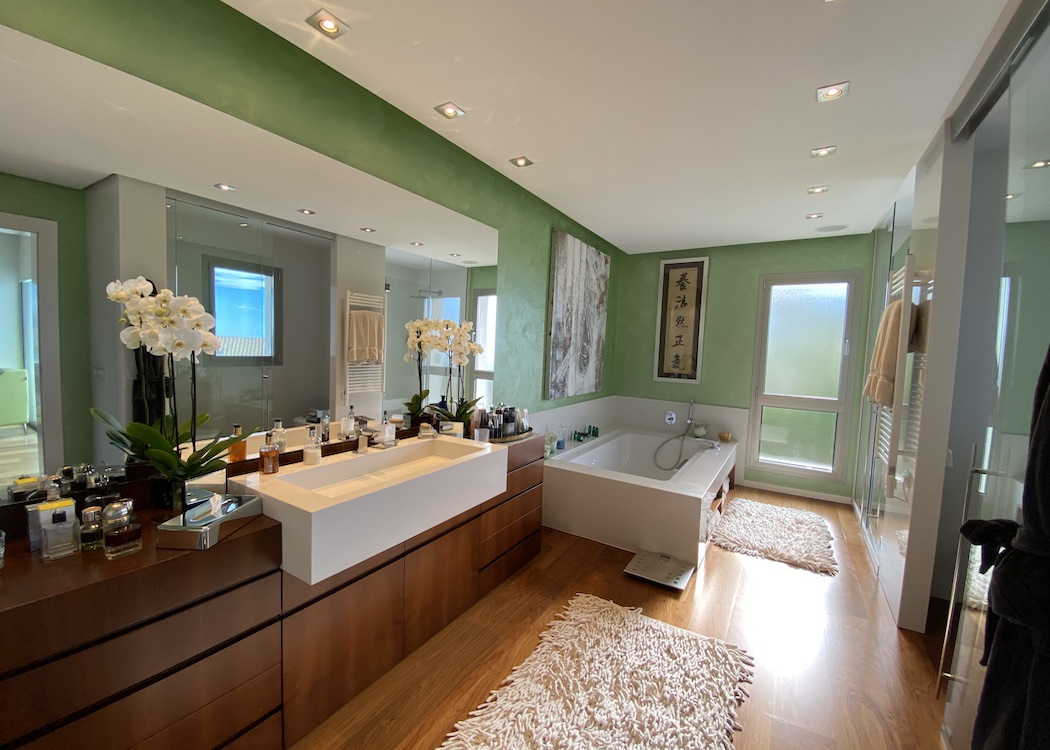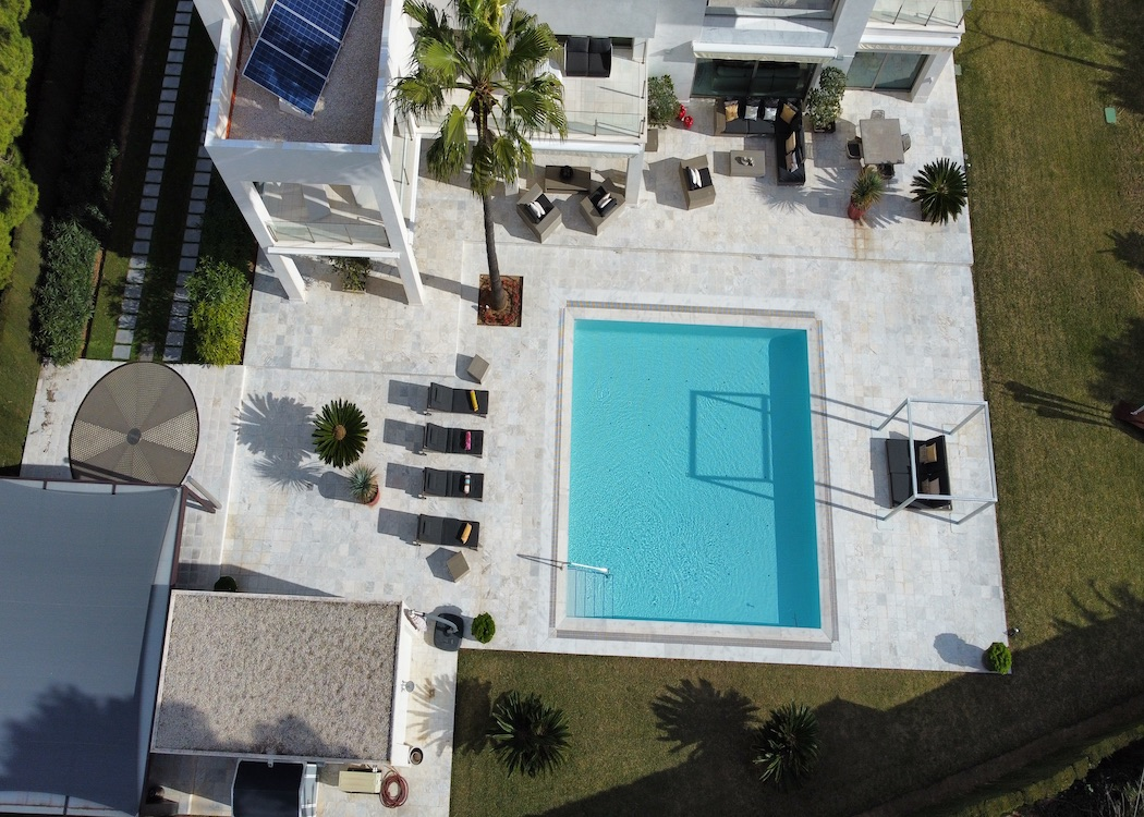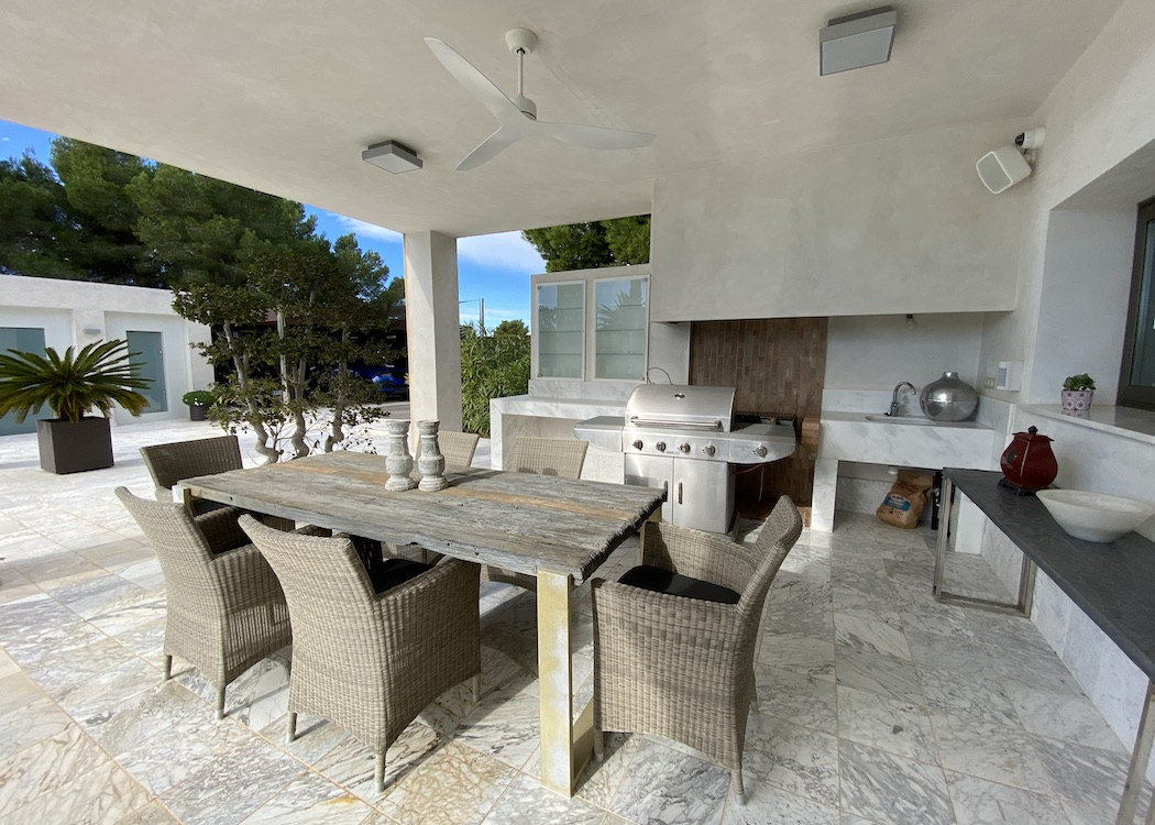 The outside areas include a driveway leading to a garage area with a car turntable, a summer kitchen with BBQ and dinning area, a large swimming pool with changing rooms and toilet, beautiful lush green garden areas and, around the villa various terraces on different levels to relax and enjoy alfresco living. This South facing villa also benefits of under floor gas central heating, hot and cold air conditioning, an automatic entrance gate, electric shutters on the windows, a water softener, music system and many more benefits.