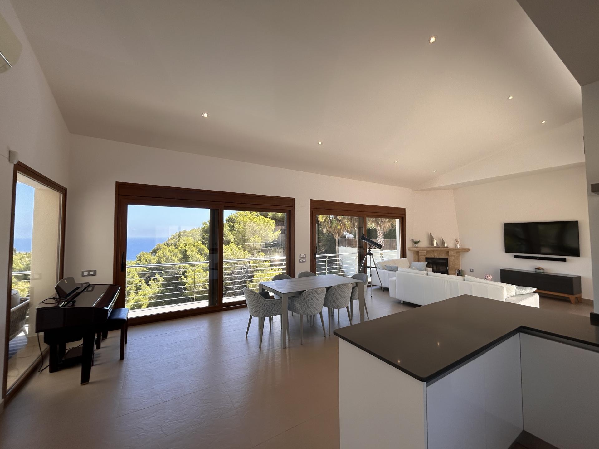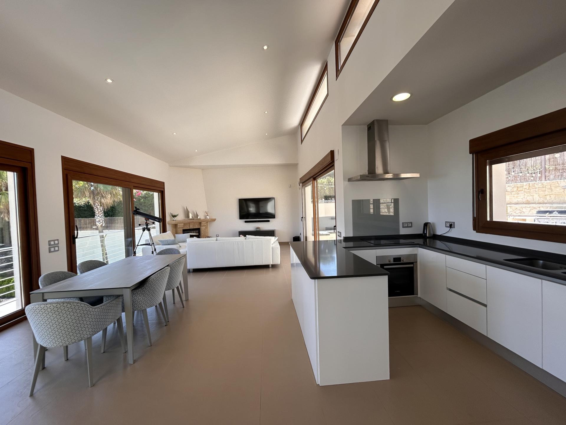 PROPERTY DETAILS A modern villa boasting a double-height entrance with a marble staircase that sets the tone for the luxurious experience that awaits. Step inside, and you'll find an open-plan living space that seamlessly combines functionality and style. The spacious lounge area, bathed in natural light, features a Tosca stone fireplace, a formal dining area and a modern equipped kitchen. The true beauty of this villa lies in its seamless connection to the outdoors. The living area extends to an expansive terrace, creating a harmonious indoor-outdoor living experience where you'll discover a summer kitchen with BBQ and area to dine beneath the open skies, an expanse thoughtfully designed to cater to all your entertainment needs with a built-in seating area, a chill-out lounge, complete with a firepit, invites you to unwind in style as the sun sets in the horizon. This space is a hub of excitement, ideal for hosting parties and creating unforgettable memories. On the main living area there is also an elevated terrace to relax and enjoy the sea views allowing for sun and with the benefit of a sun shade if required. The sleeping quarters include four bedrooms, three of which boast their own private en-suite bathrooms. The master bedroom is a sanctuary unto itself, graced with an en-suite and a charming terrace with views to the sea. Additionally, another bedroom features a splendid terrace complete with a seating area, providing the perfect backdrop for both tranquil moments of relaxation and a discreet retreat for visiting guests to savour the stunning sea vistas in complete privacy. Every detail has been thoughtfully designed to provide an environment of comfort and class in this exceptional property.