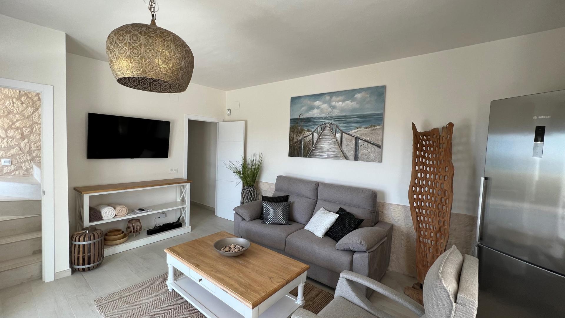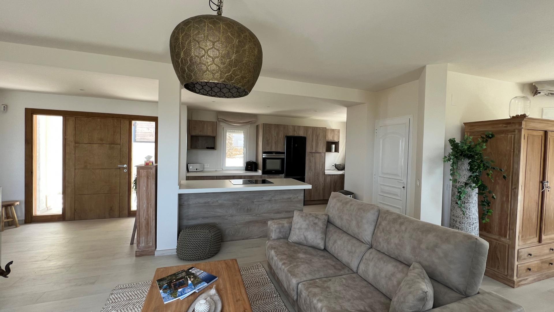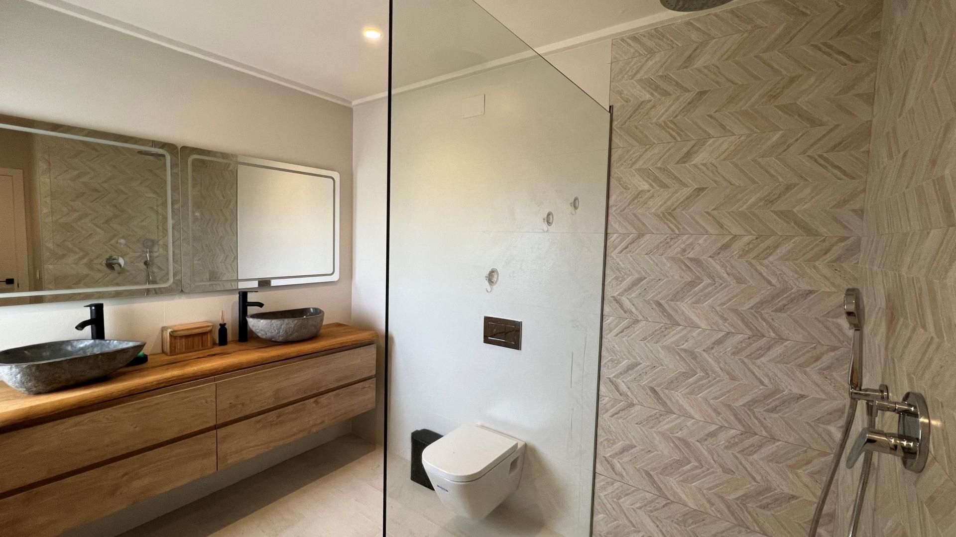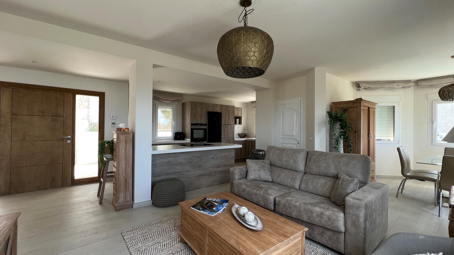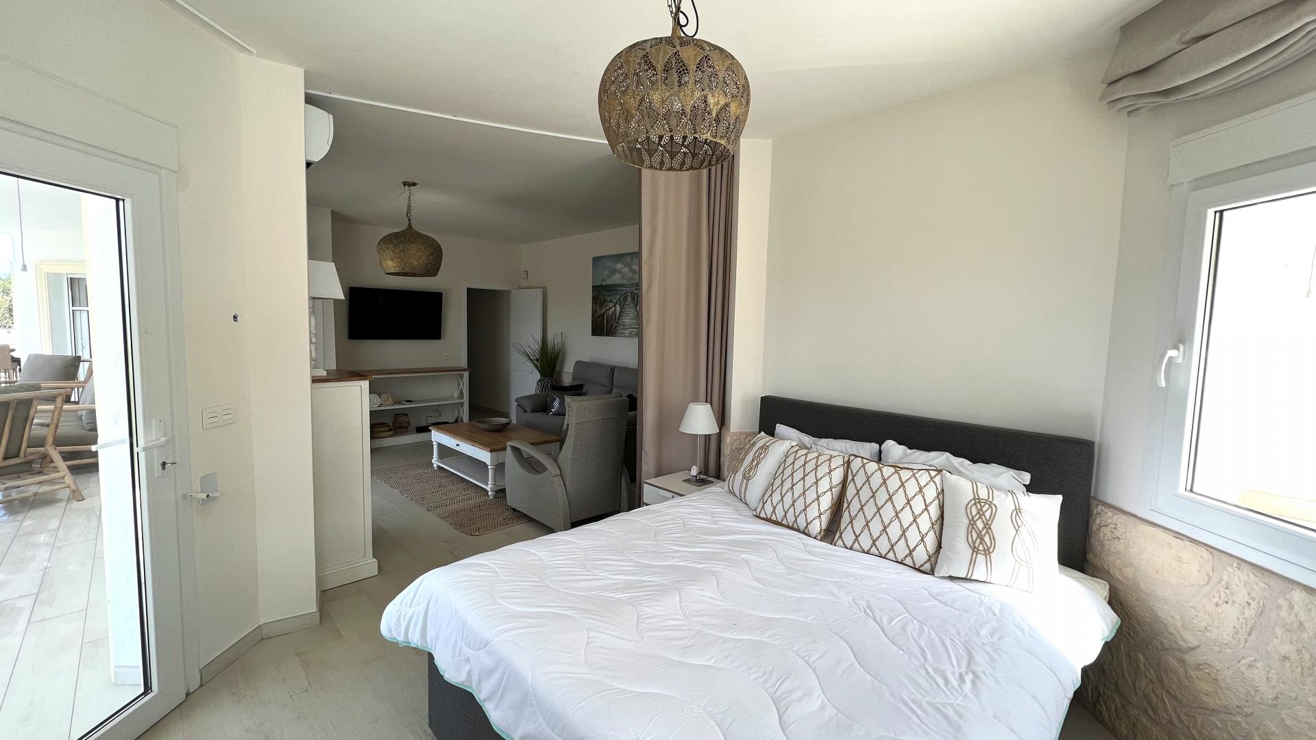 PROPERTY DETAILS The villa has been recently reformed to create a modern villa with open plan living that includes a lounge with picture view windows from which to relax and enjoy the sea views, fully fitted kitchen with integrated appliances and a counter island with hob and breakfasting bar area, separate dining area with a door that opens onto a terrace with a lounge area, front the front entrance a hallway that leads to two bedrooms including the master bedroom with dressing area and ensuite shower room with walk-in shower and double vanity, guest toilet and stairs from the open plan living area with a natural feature stone wall lead down to the guest apartment which consists of a lounge/dining room and bedroom, a separate bathroom and another bedroom both with doors to large terrace that leads along to the summer kitchen with bar and alfresco dining area, on this level there is also a laundry room.