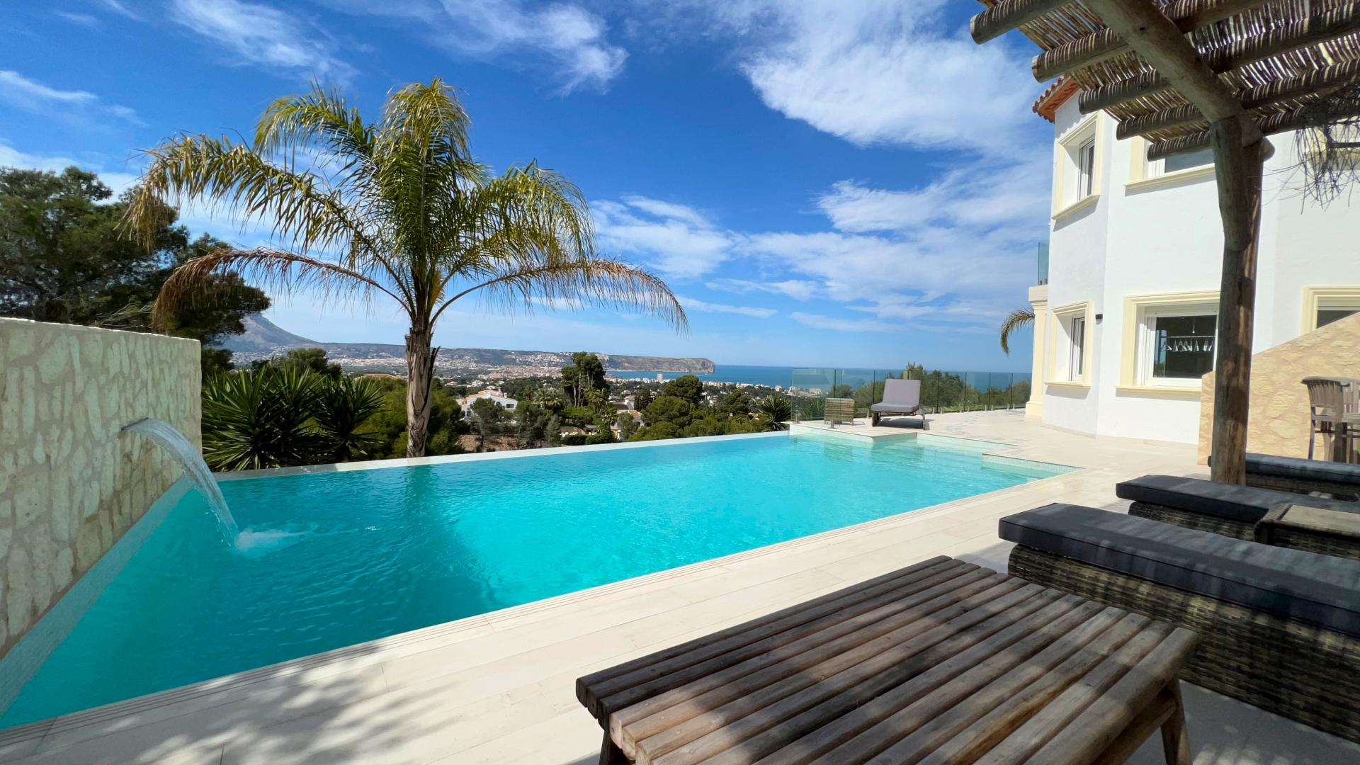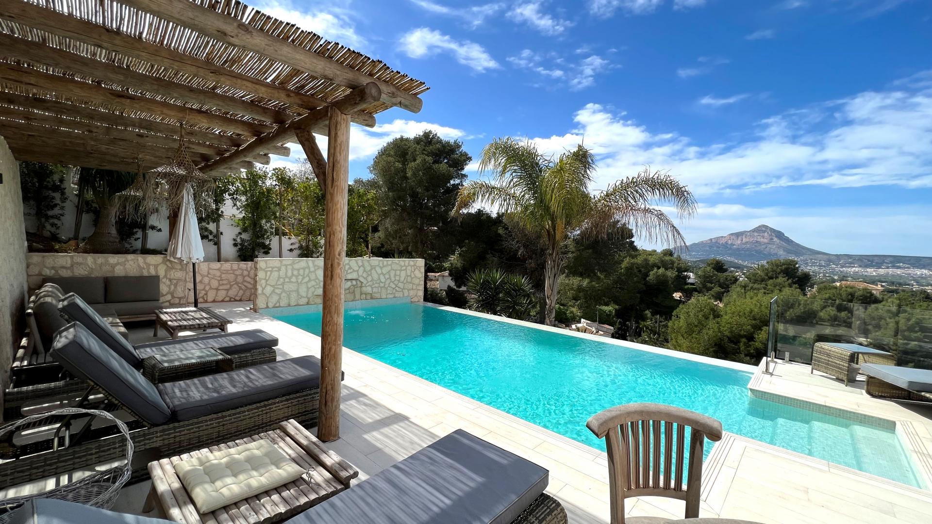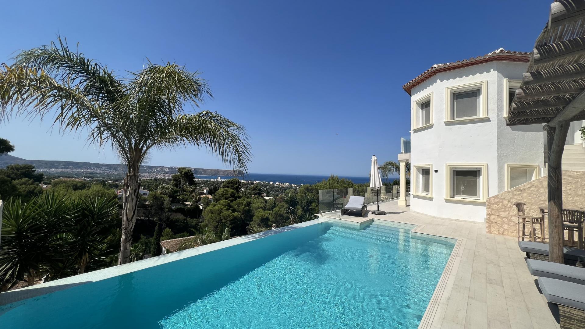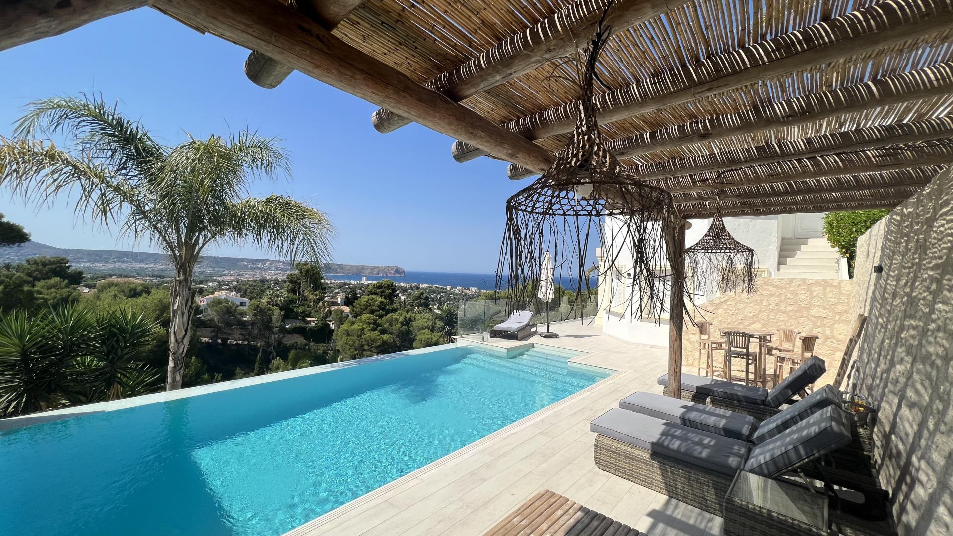 PROPERTY AT A GLANCE A stunning property that has just been completely renovated with high-end finishes into a modern villa with open plan living and an impeccable décor with natural stone features, neutral tones and an exterior with an Ibizan influence that includes a pergola chillout area and an infinity pool with a water feature and LED lighting which creates a fabulous ambience at night when entertaining and hosting pool parties, alfresco dining areas on different levels and a summer kitchen with built in BBQ, dining and bar all from which to enjoy the most amazing sea views.