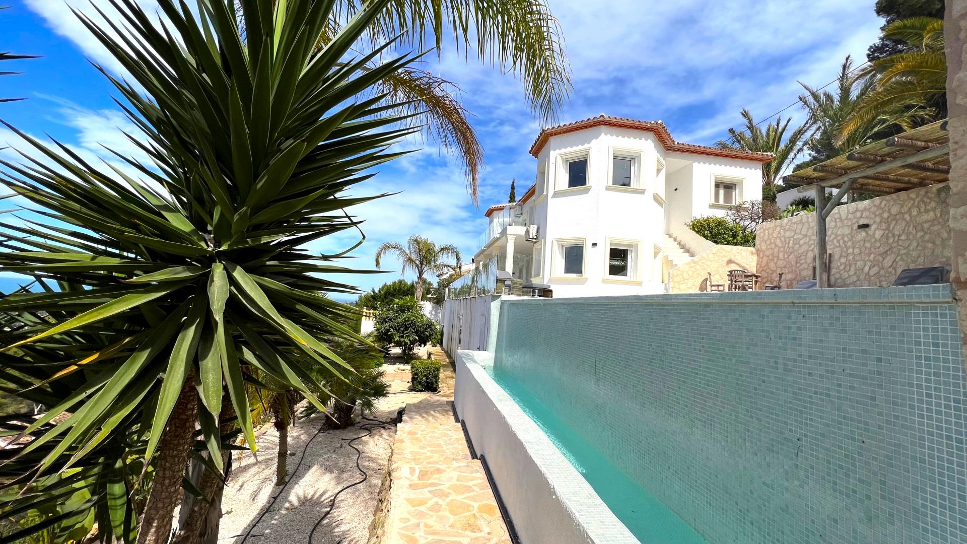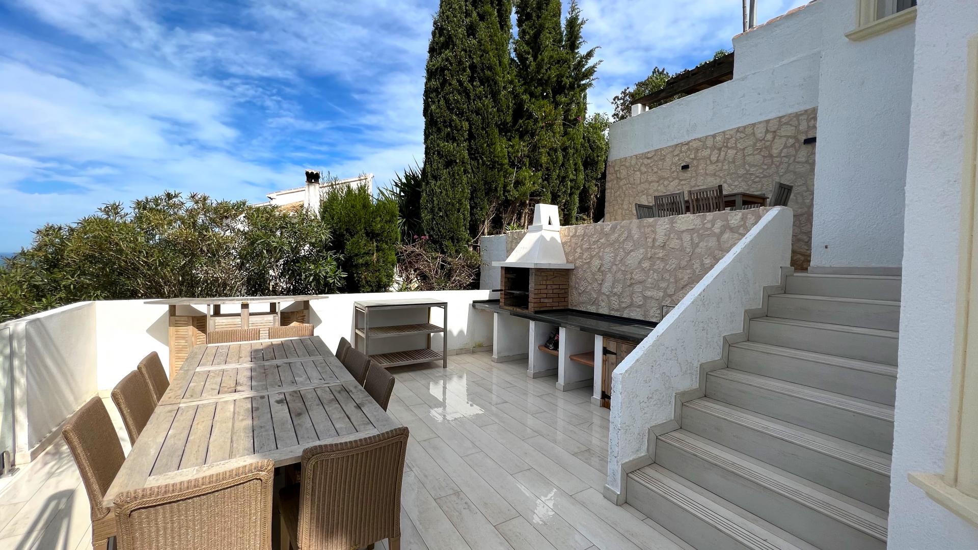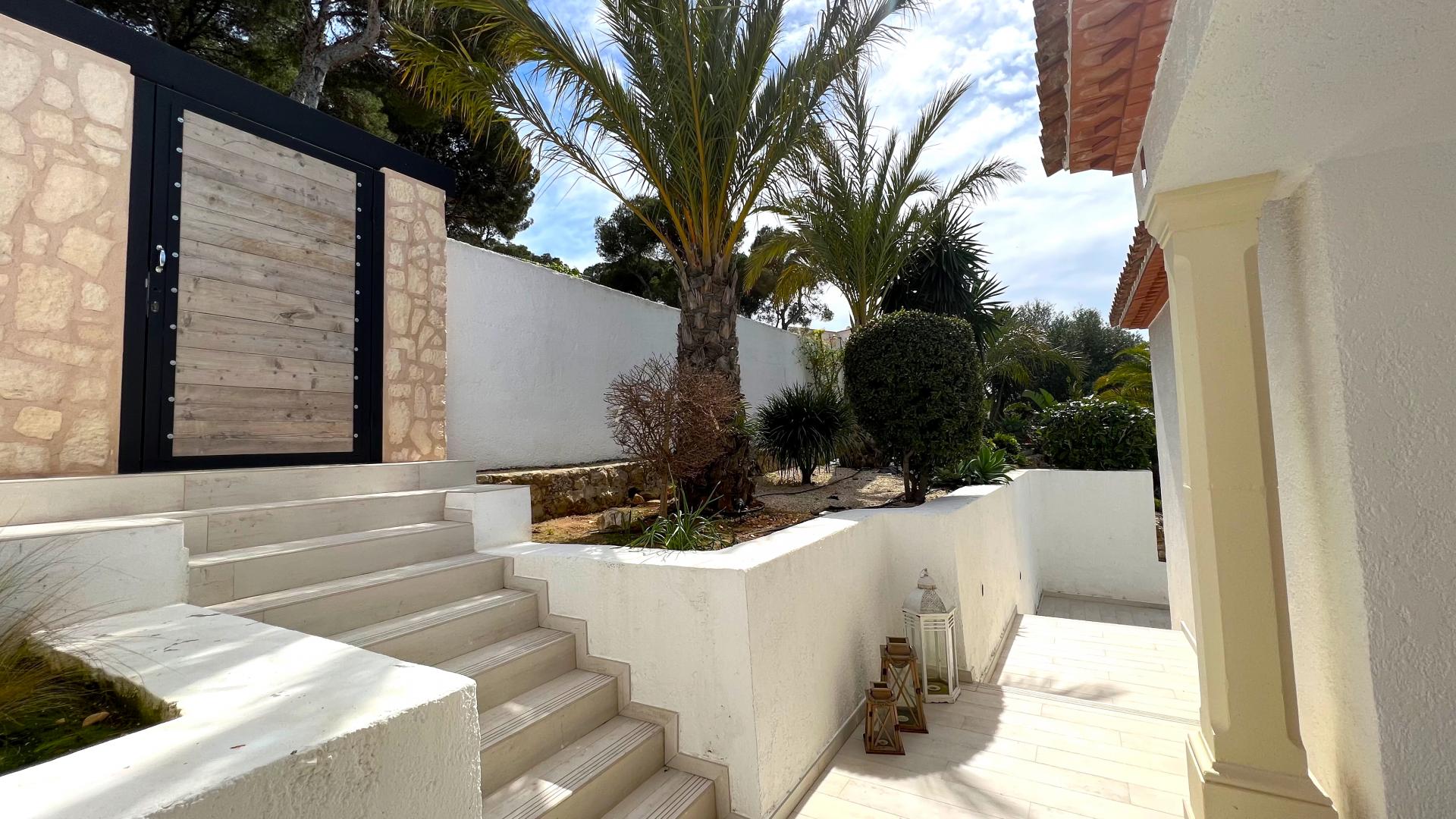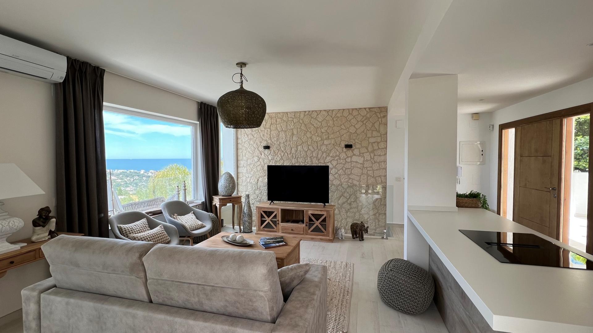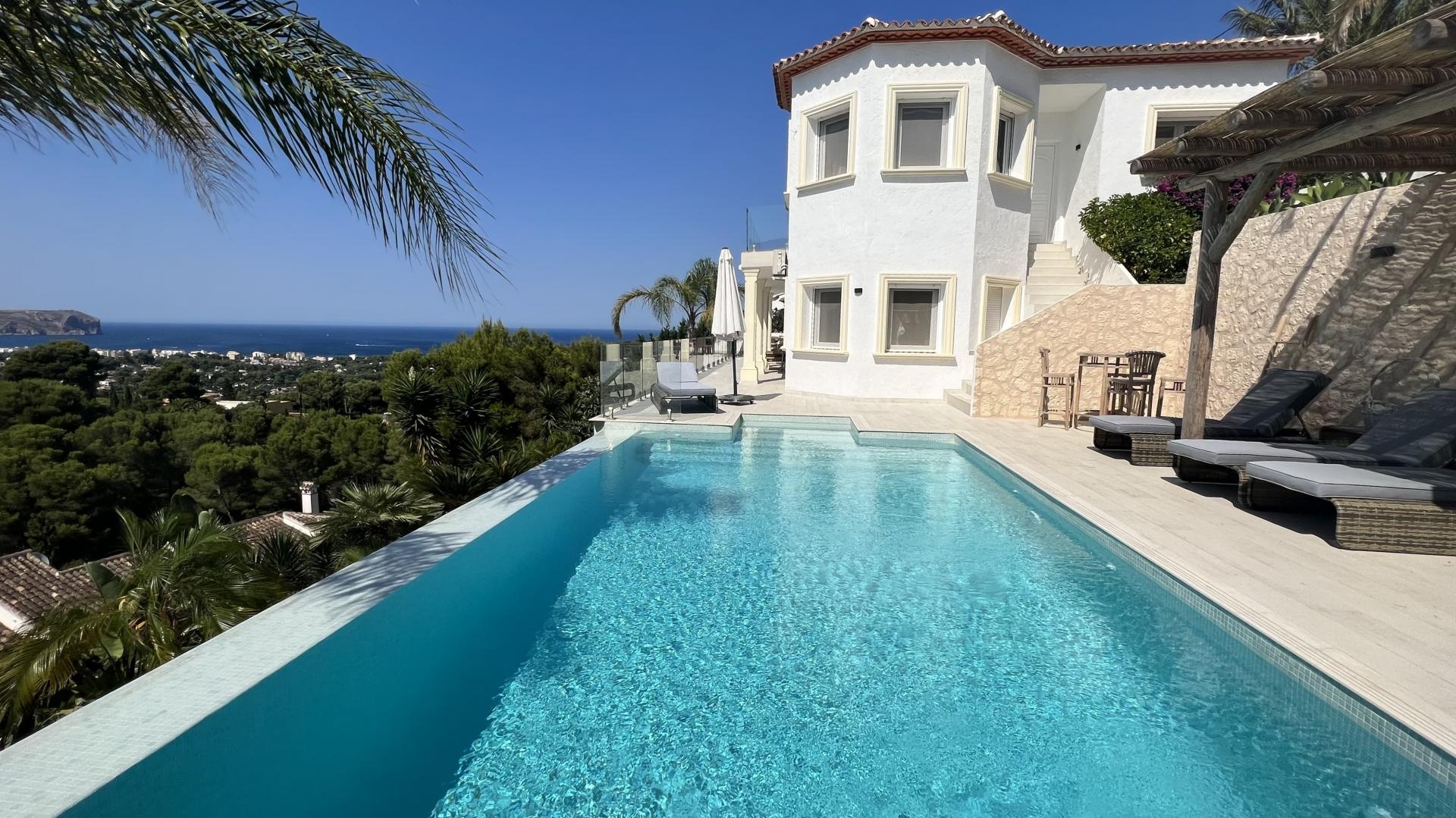 PROPERTY AT A GLANCE A stunning property that has just been completely renovated with high-end finishes into a modern villa with open plan living and an impeccable décor with natural stone features, neutral tones and an exterior with an Ibizan influence that includes a pergola chillout area and an infinity pool with a water feature and LED lighting which creates a fabulous ambience at night when entertaining and hosting pool parties, alfresco dining areas on different levels and a summer kitchen with built in BBQ, dining and bar all from which to enjoy the most amazing sea views.