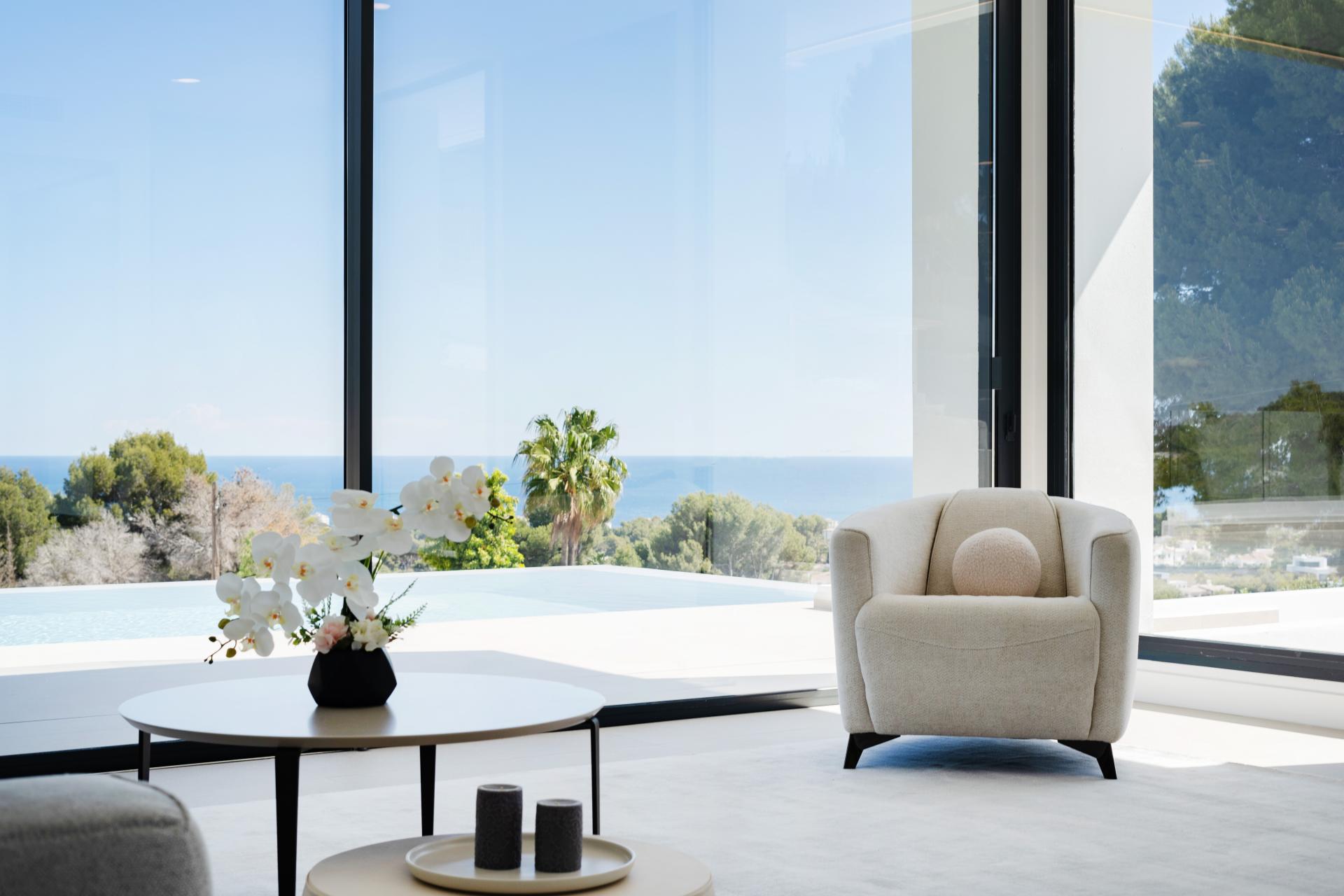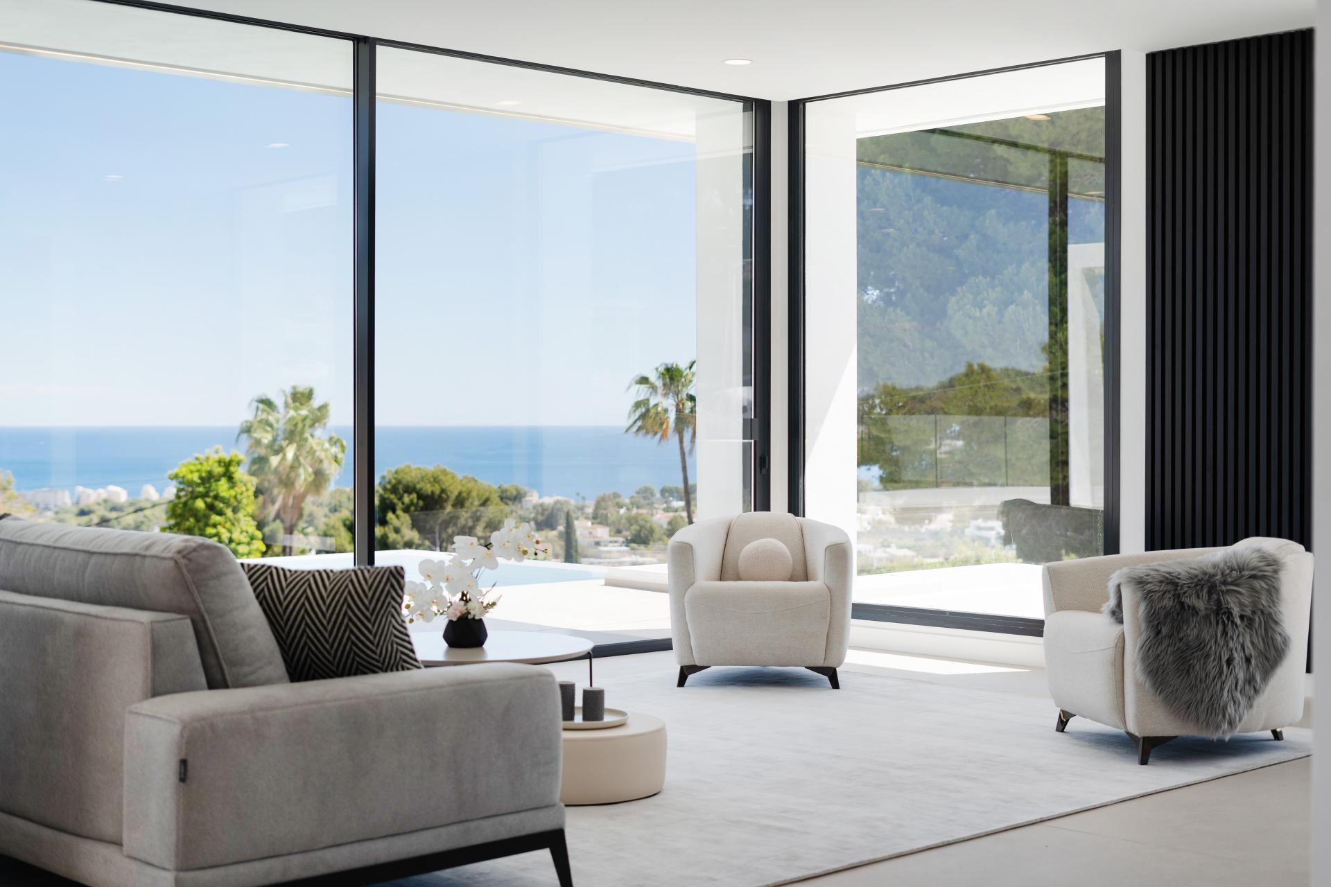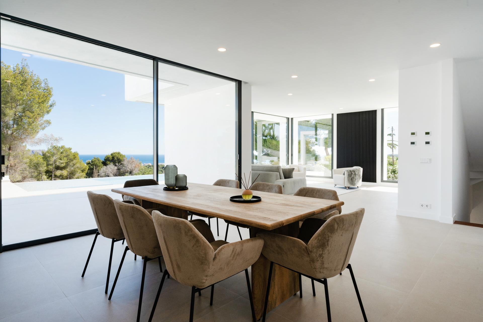 PROPERTY DETAILS This luxurious villa, completed in May 2024, offers an exceptional living experience just 5 minutes from Arenal beach in Jávea. Upon entering, you are welcomed by a spacious, light-filled living-dining area with a ceiling height of 2.90 meters, offering breath-taking panoramic views of the Mediterranean Sea. The open-plan kitchen is fully equipped, perfect for entertaining while enjoying the stunning scenery.