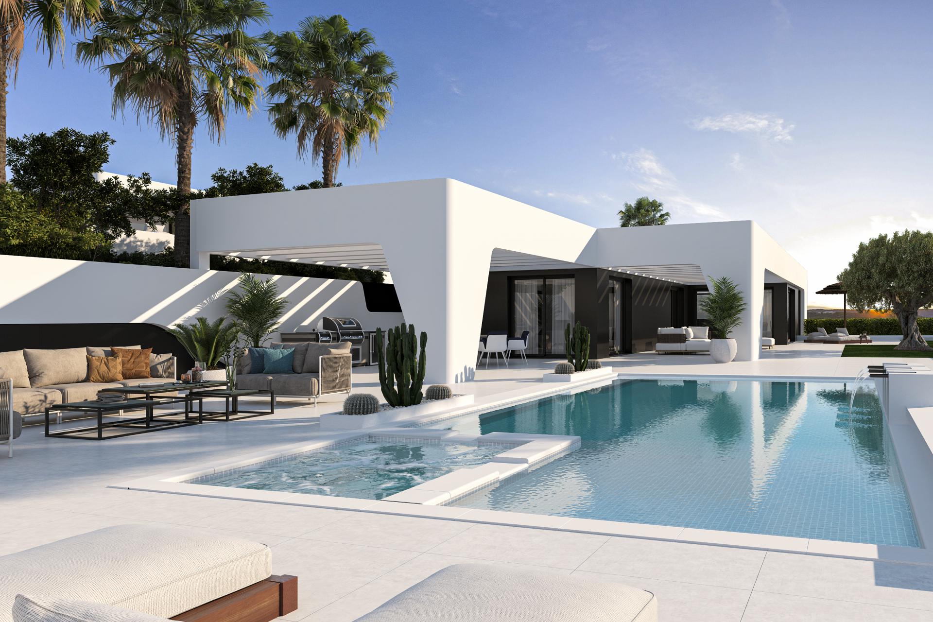 PROPERTY AT A GLANCE This modern new build project is situated on a south-facing plot of 1,037 square meters in a highly sought-after residential area, known for its contemporary luxury villas and international homeowners. The neighborhood is primarily owner-occupied, making it rare to find holiday rentals here.