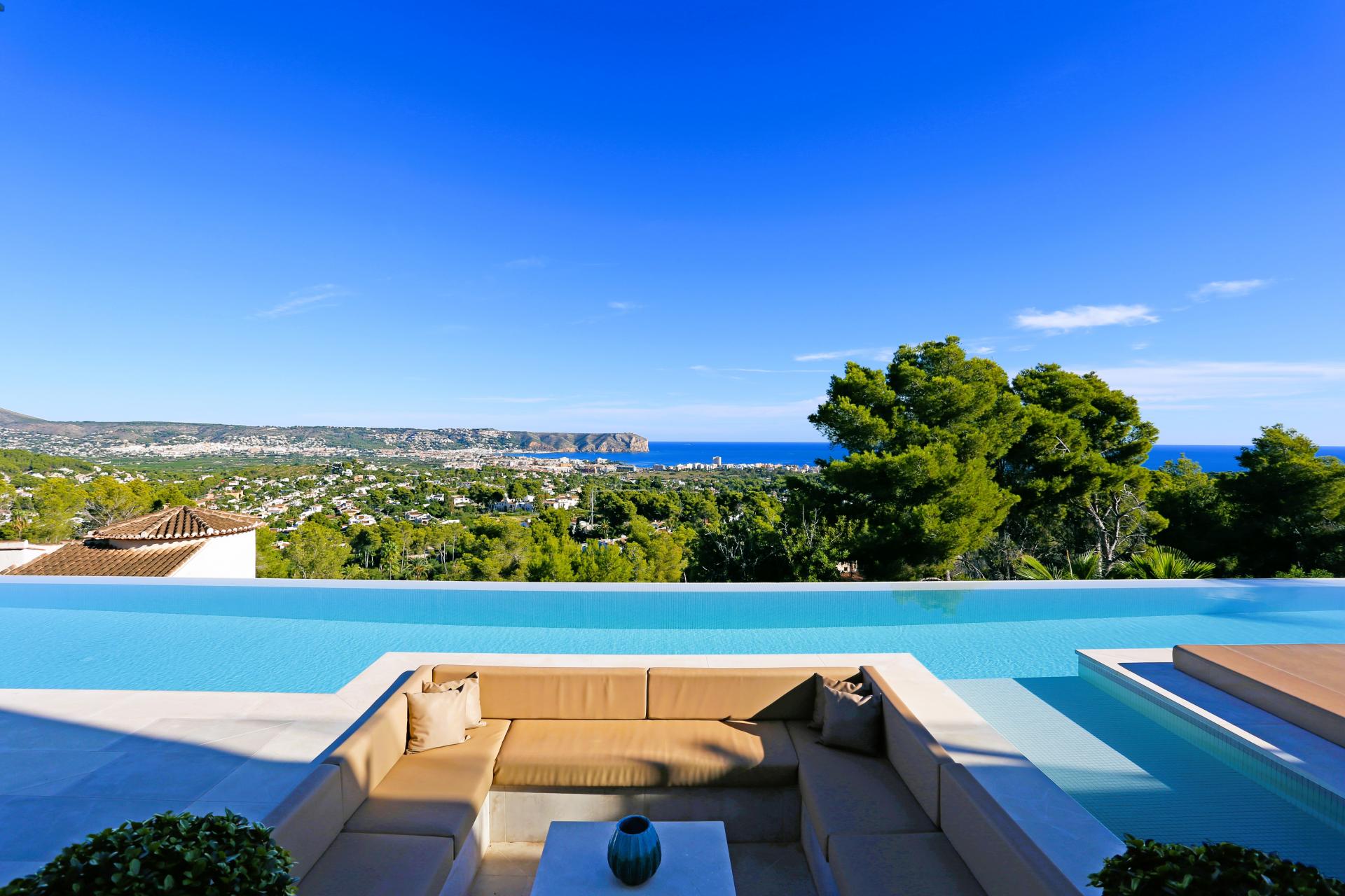 The open-plan layout ensures a seamless connection between the indoor and outdoor areas, with all rooms opening onto the exterior terraces, inviting in breath-taking views of the Mediterranean, the lush greenery, and the iconic Montgo Mountain.