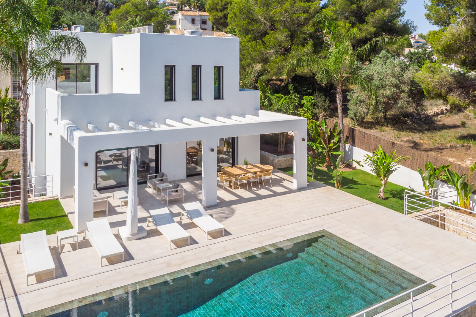 Property at a Glance Tucked away at the end of a tranquil cul-de-sac on the Costa Blanca, this exquisite modern villa is a haven of elegance, privacy, and natural beauty. Designed to blend seamlessly with its lush surroundings, the striking white façade stands in stunning contrast to the expansive tropical gardens. Featuring state-of-the-art energy efficiency and luxurious amenities, this contemporary retreat offers the ultimate in refined coastal living. With a magnificent saltwater pool crafted from Balinese volcanic green stone, high-end finishes, and seamless indoor-outdoor spaces, this villa is a sanctuary of sophistication and comfort.