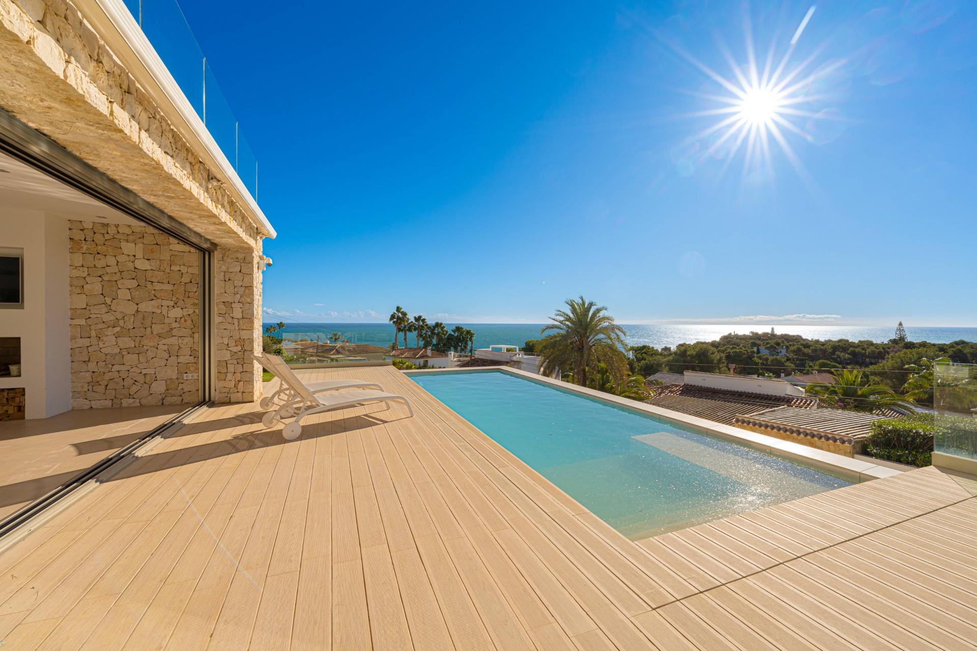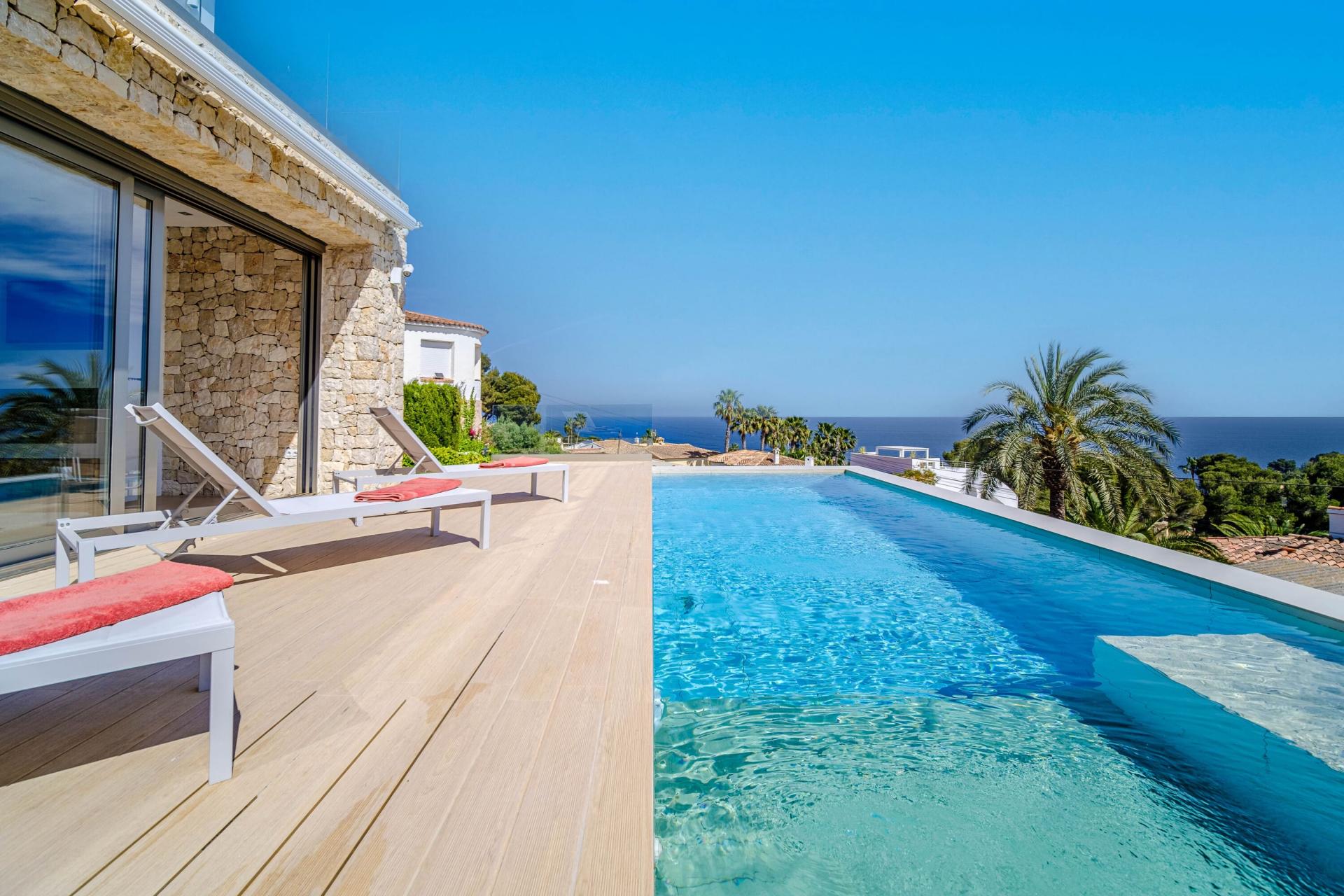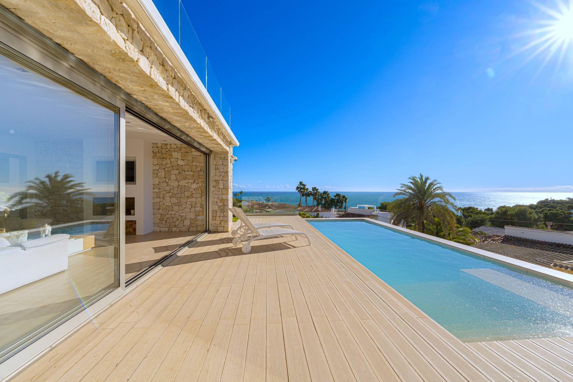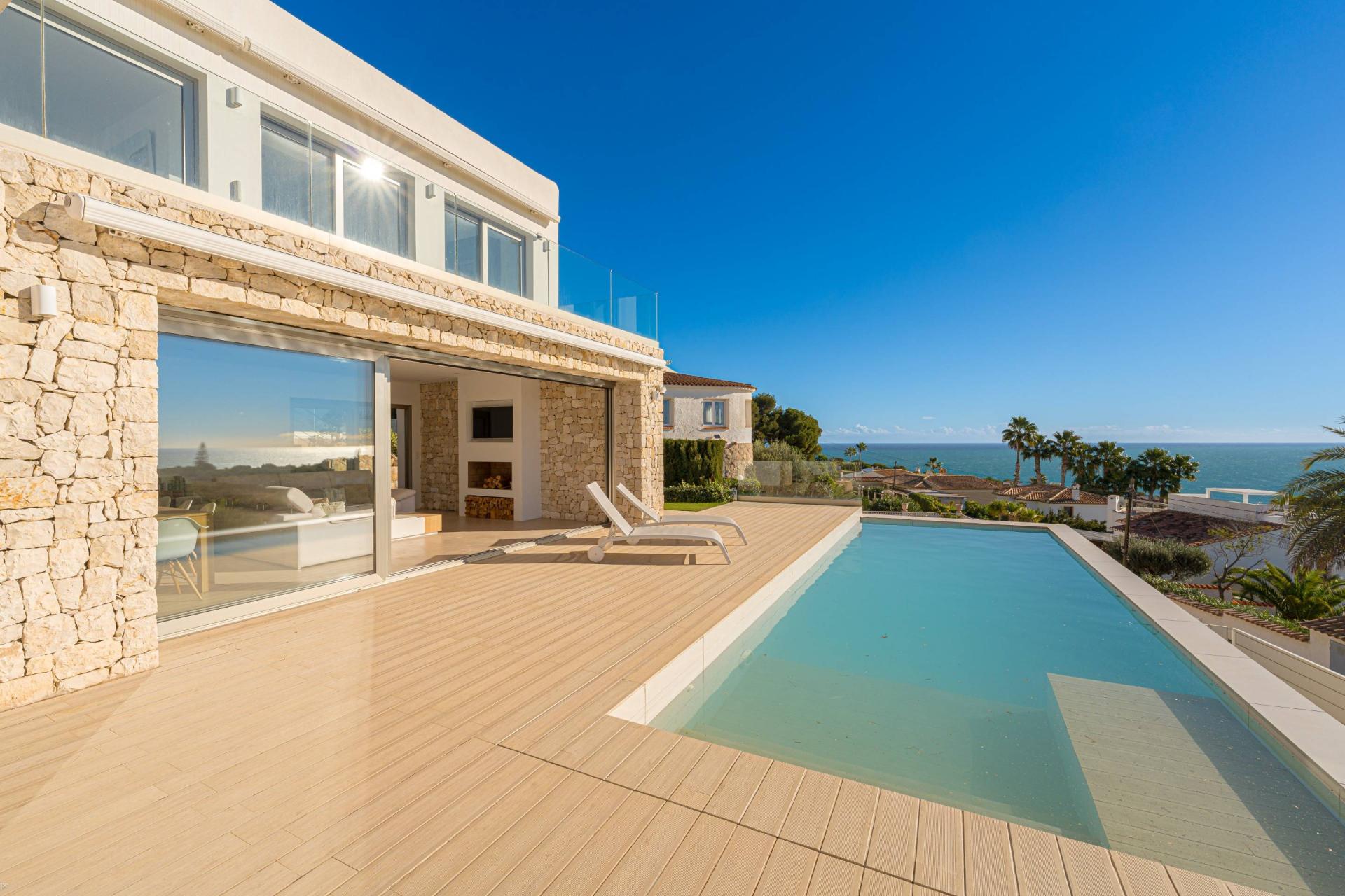 PROPERTY AT A GLANCE Perched in a coveted enclave in Jávea, this striking south-facing villa is a masterclass in modern Mediterranean living. With uninterrupted sea views from nearly every room and seamless indoor-outdoor flow, the home blends contemporary elegance with timeless natural elements. Clean architectural lines meet warm stone walls and expansive glass, creating an atmosphere of refined tranquillity. Thoughtfully designed across multiple levels, each space offers privacy, comfort, and connection to the villa’s spectacular coastal setting. Whether dining al fresco, relaxing by the infinity pool, or unwinding in the luxurious master suite, every detail is curated for the ultimate lifestyle experience.