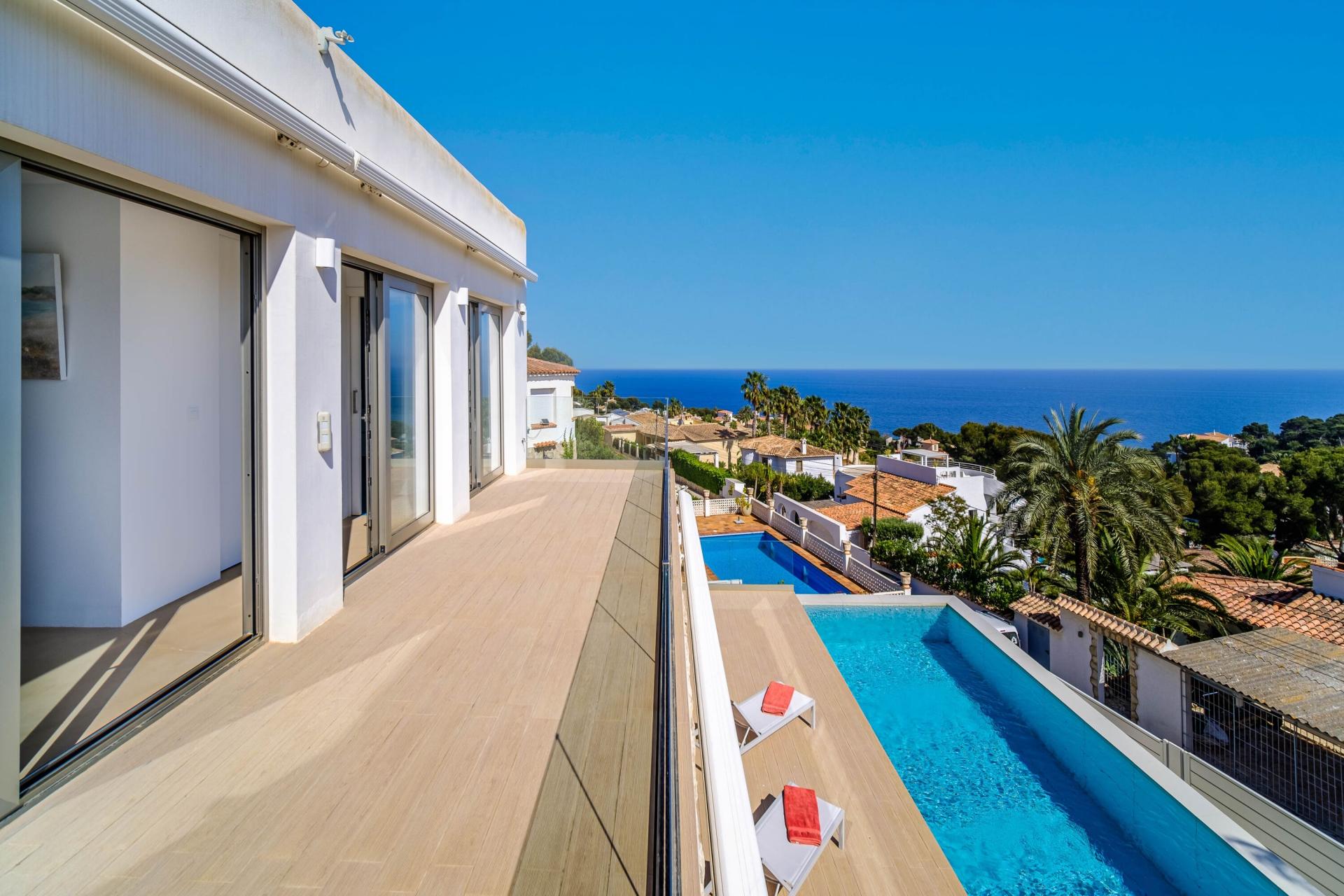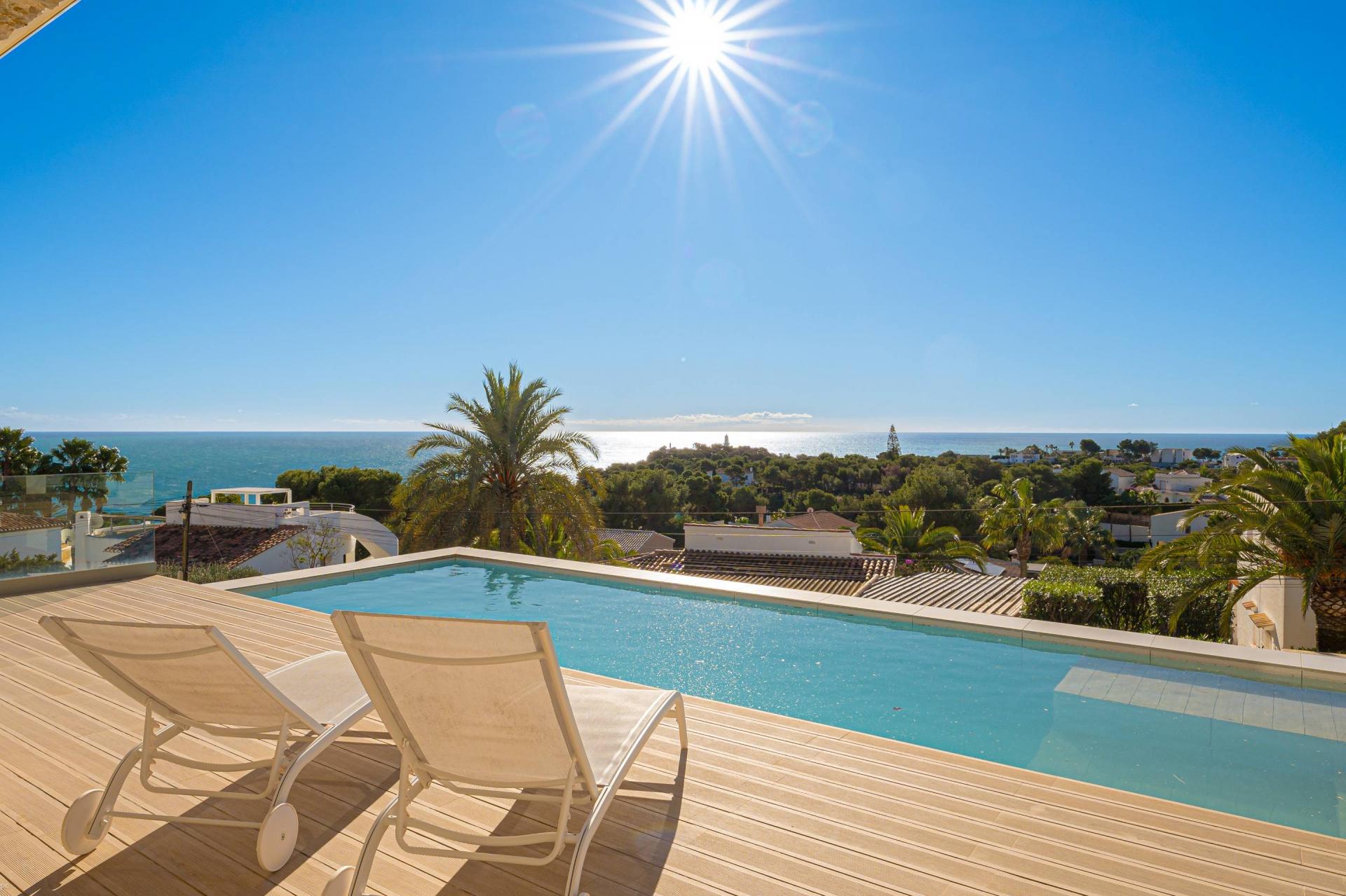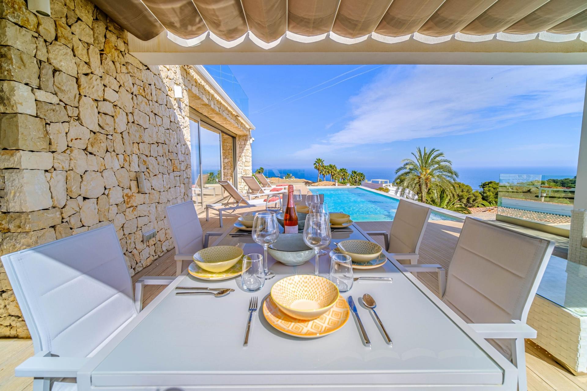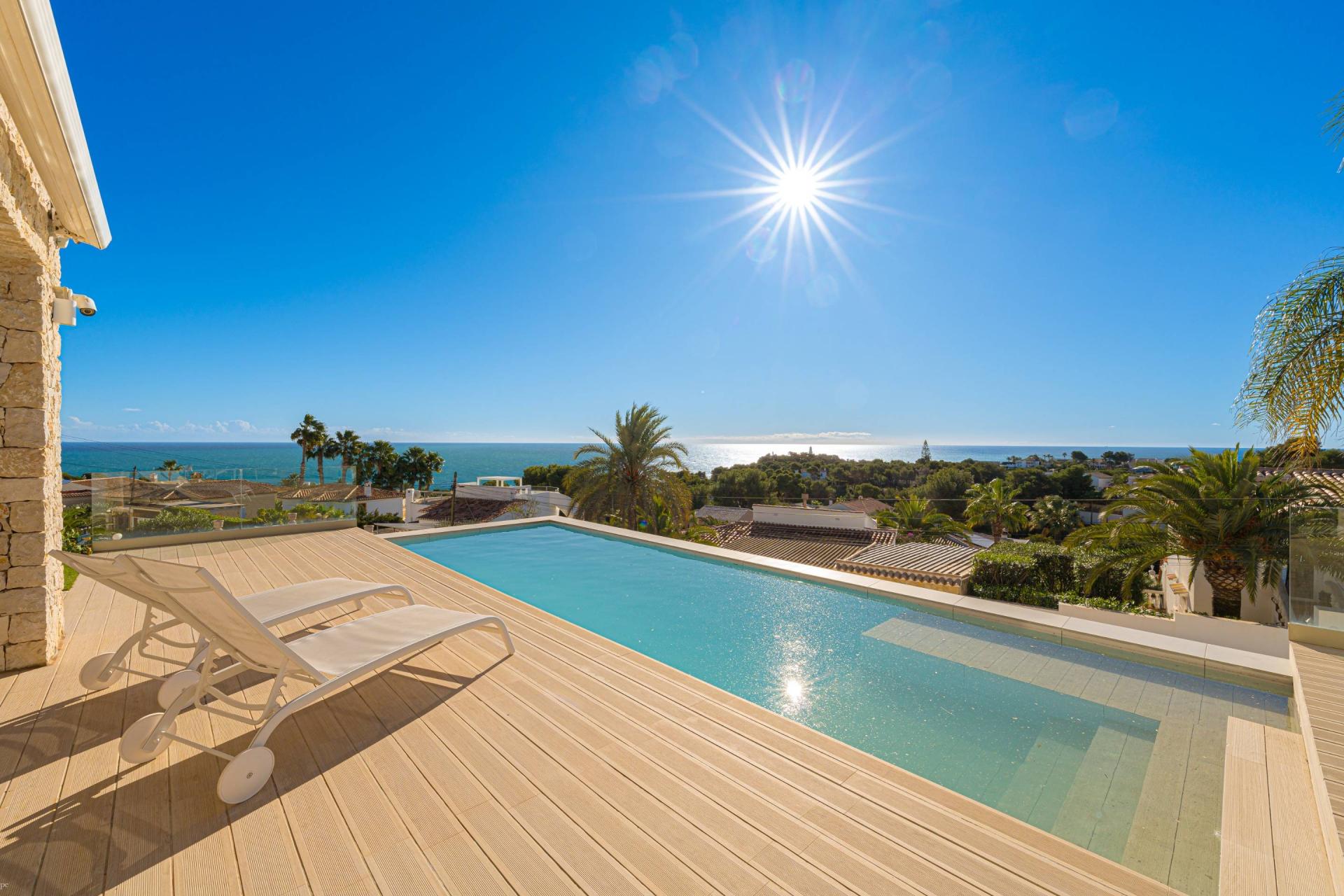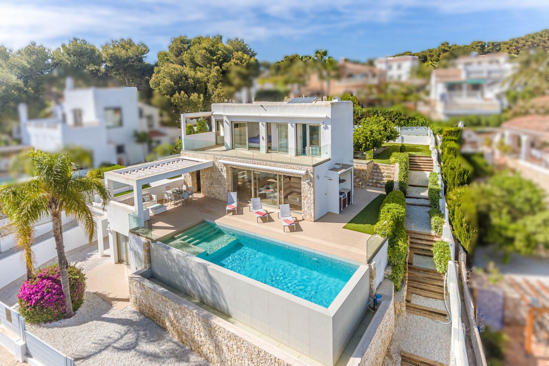 PROPERTY AT A GLANCE Perched in a coveted enclave in Jávea, this striking south-facing villa is a masterclass in modern Mediterranean living. With uninterrupted sea views from nearly every room and seamless indoor-outdoor flow, the home blends contemporary elegance with timeless natural elements. Clean architectural lines meet warm stone walls and expansive glass, creating an atmosphere of refined tranquillity. Thoughtfully designed across multiple levels, each space offers privacy, comfort, and connection to the villa’s spectacular coastal setting. Whether dining al fresco, relaxing by the infinity pool, or unwinding in the luxurious master suite, every detail is curated for the ultimate lifestyle experience.