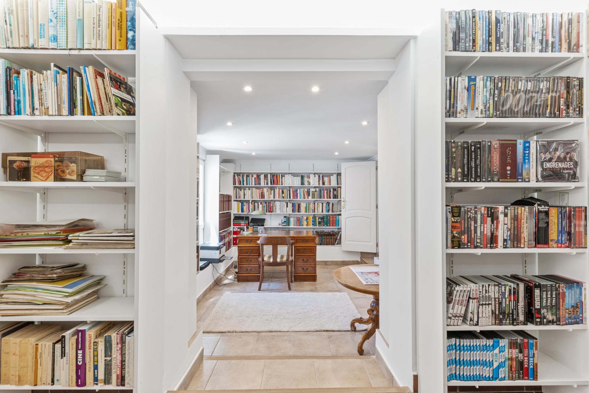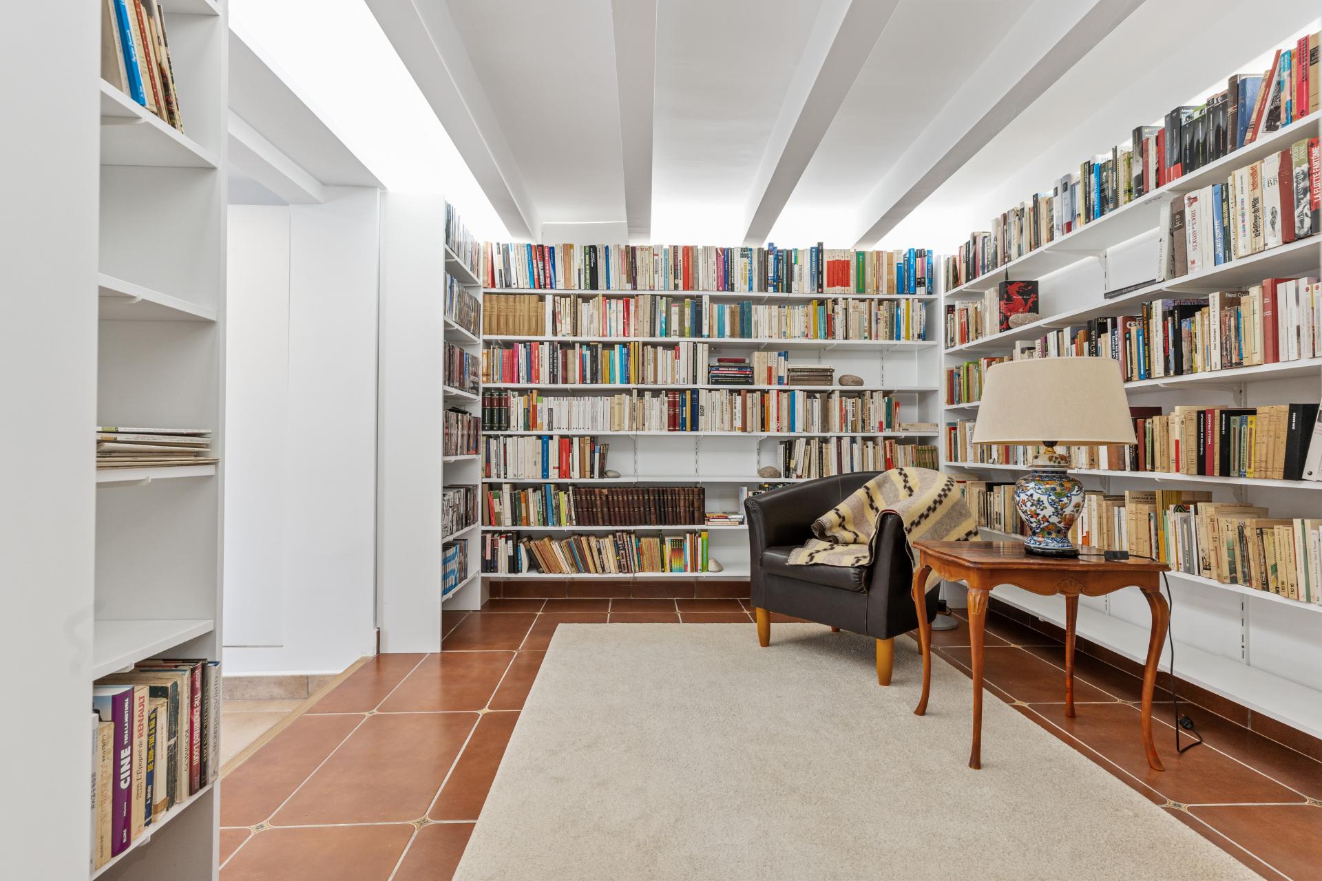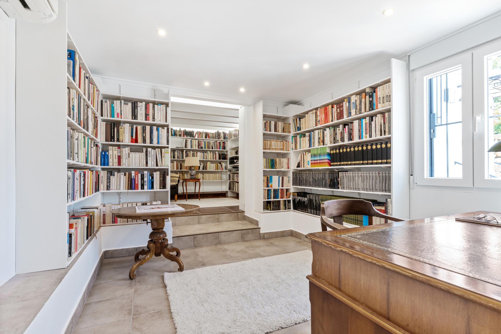 Luxury Amenities The home is fitted with a complete suite of luxury features including radiant underfloor heating, ducted air conditioning with a heat pump, solar energy panels, and fibre-optic internet. A dedicated office and a large library with reading zones present ideal spaces for working from home or leisure. With double-glazed windows, high-quality solid wood doors, and a fully updated electrical installation, the villa offers both comfort and peace of mind. Its energy-efficient systems and EV charging station add modern functionality to its timeless style.