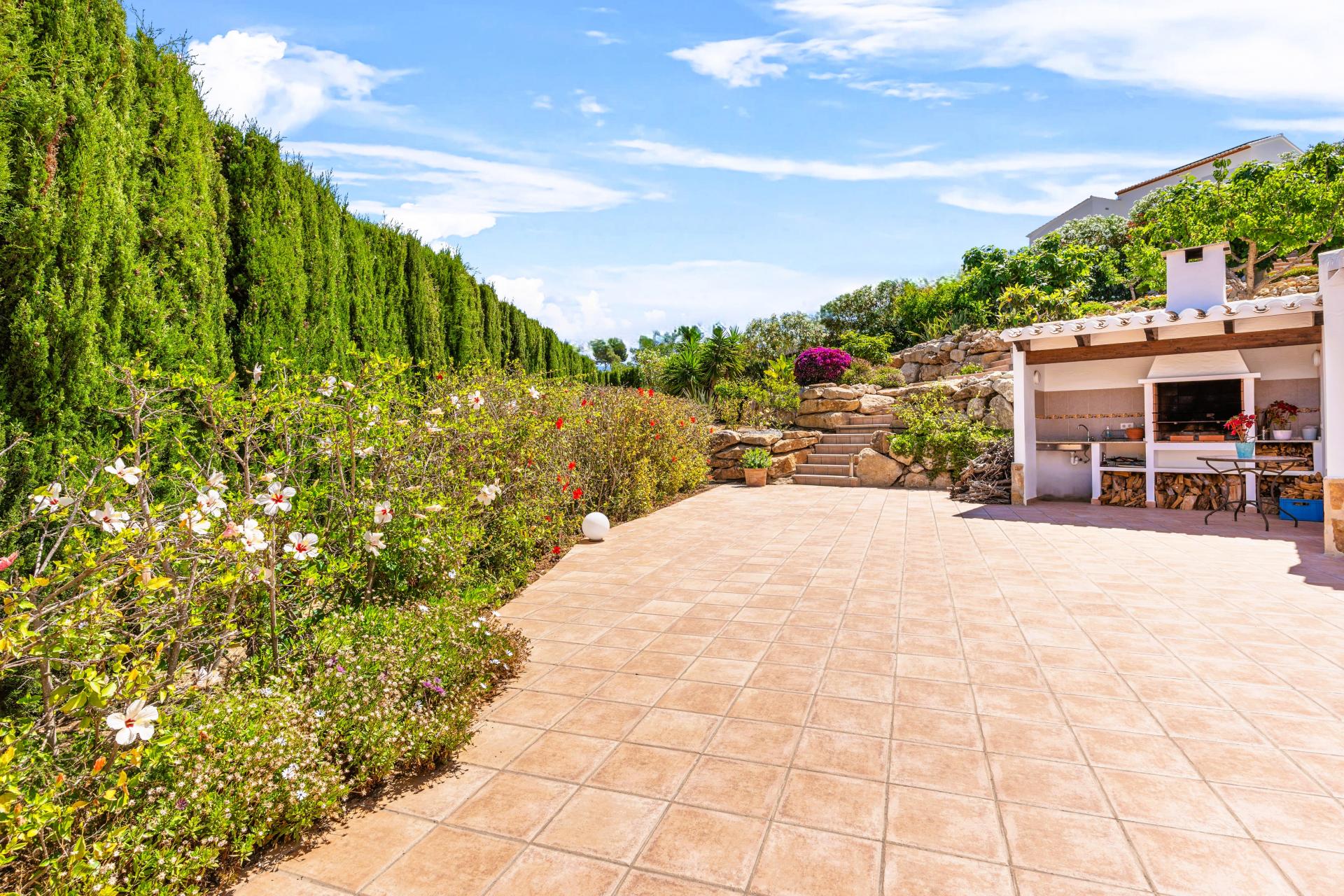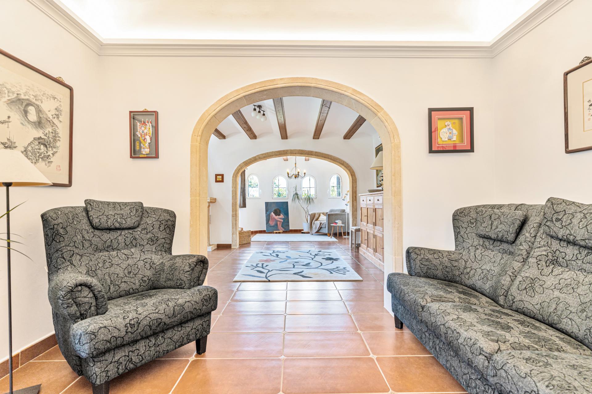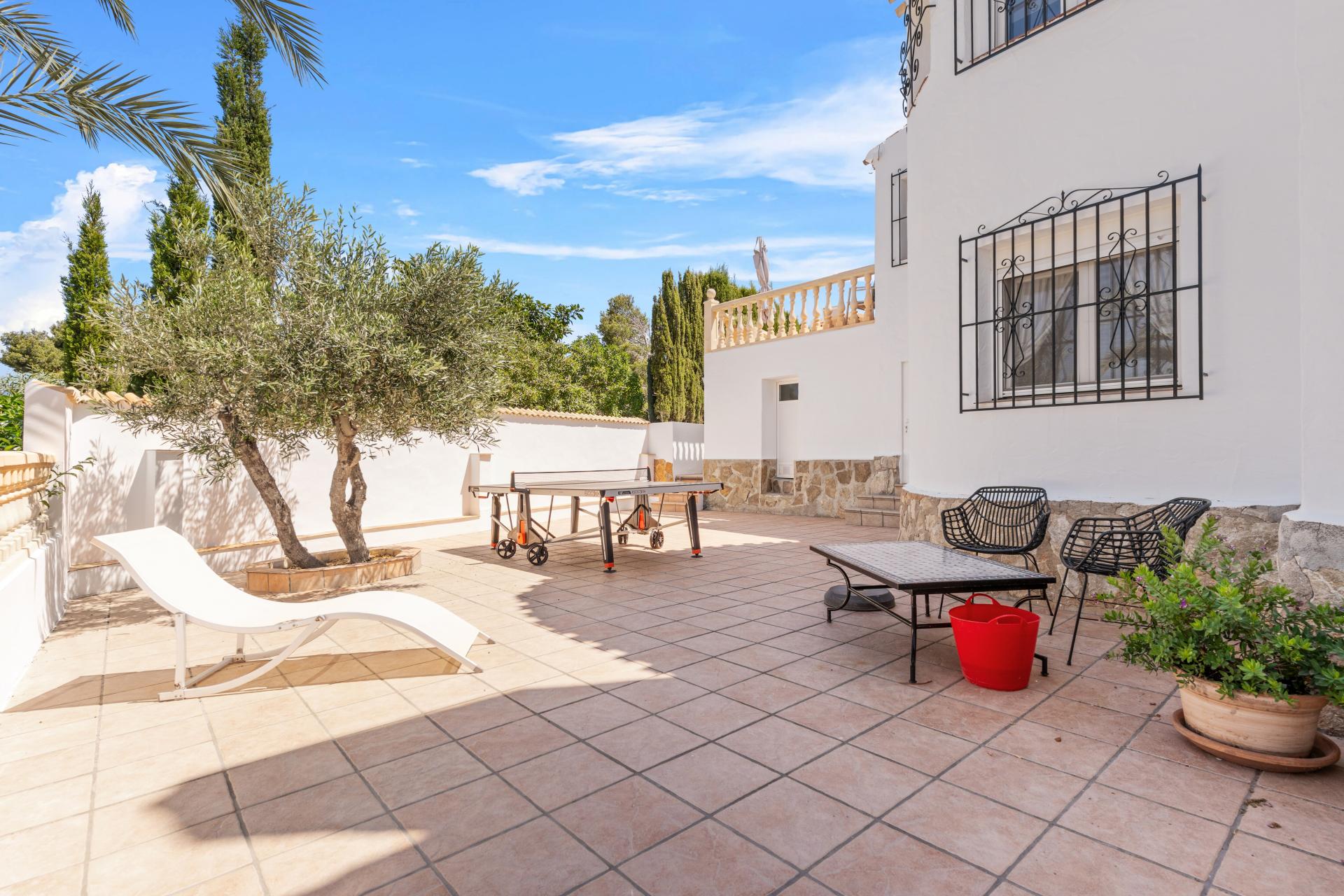 PROPERTY AT A GLANCE A recently renovated Mediterranean villa, this traditional residence offers timeless charm paired with modern comforts in one of Jávea’s most sought-after locations. Enjoying open southwest-facing views across the verdant valley to the iconic Montgó mountain, the home sits within a generous 2,075 m² plot with mature gardens, a brand-new pool, and multiple serene outdoor areas. Crafted with authentic materials such as tosca stone, terracotta tiles, and hand-laid dry stone walls, the property exudes classic Levantine character while benefitting from extensive upgrades including solar energy, underfloor heating, and Miele appliances.