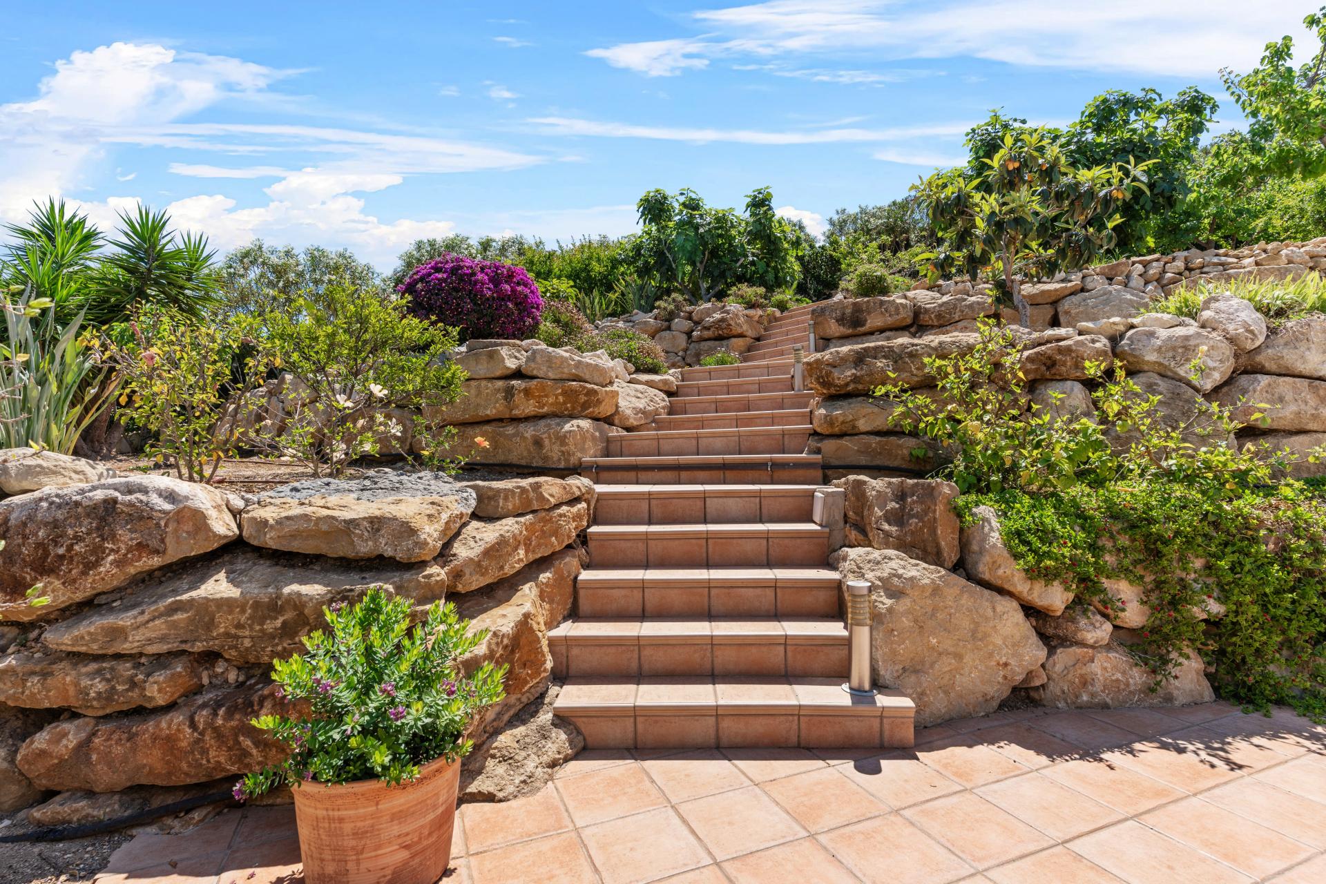 PROPERTY DETAILS Architecture & Design This villa captures the essence of Mediterranean tradition with its terracotta-tiled roof, white stucco facade, and timeless wrought iron rejas. Authentic elements such as arched doorways, tosca stone surrounds, and flagstone-style floors enhance its Levantine character. The hand-laid Piedra paving and natural dry-stone walling in the mature and very private garden evoke the rustic charm of the region, while the building’s structural updates and fresh paint in 2025 ensure a seamless blend of heritage and contemporary care.