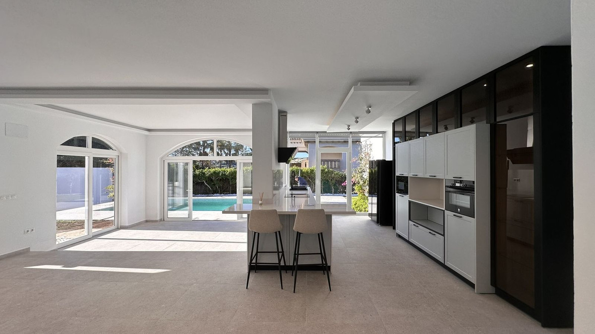 Sustainability meets style with a fully integrated solar panel system, eco-friendly boiler, and energy-efficient upgrades throughout. Inside, the home has been thoughtfully modernised, delivering a sleek, open-plan layout that flows effortlessly while still honouring its Andalucian roots. Large windows and high ceilings create a bright, airy atmosphere, balancing classic design with contemporary finishes. Set in an exclusive, established neighbourhood renowned for its sweeping sea views, peaceful ambiance, and wide open parklands, this is your opportunity to live in natural luxury, moments from everything yet worlds away.